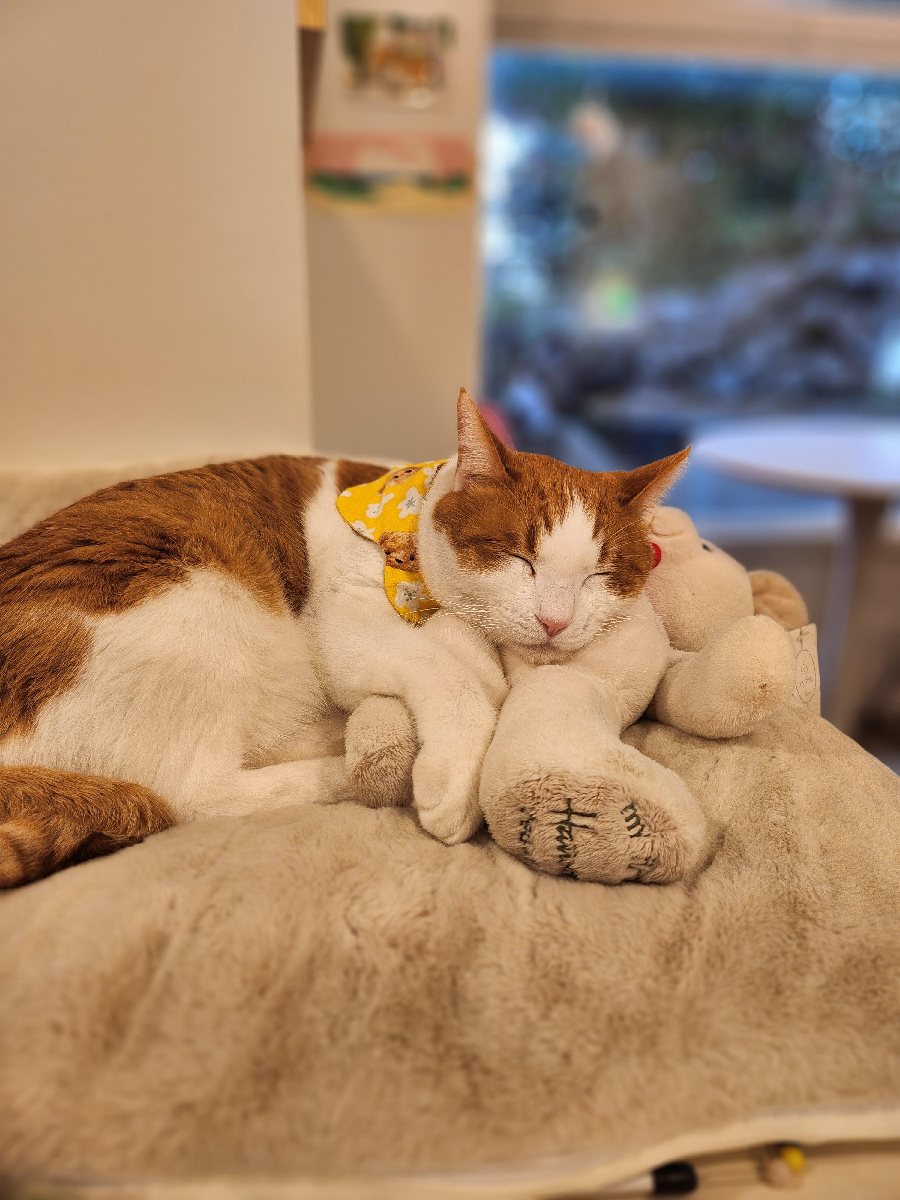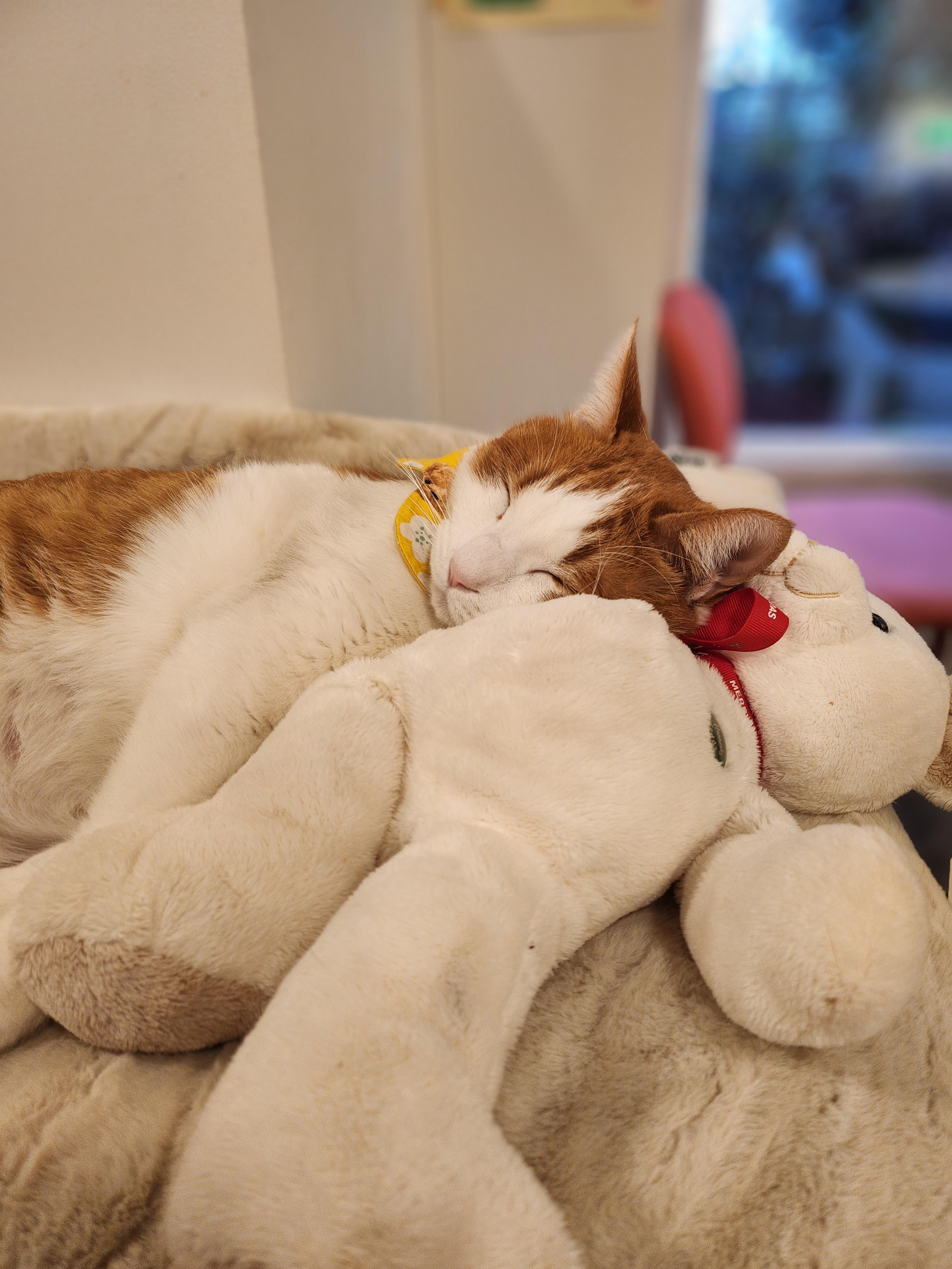 너무 커서 외로울까싶어 곰돌이 인형을 놓아주었더니 안고자기도하고 베고자기도하고 유용하게 활용중인 채영이.