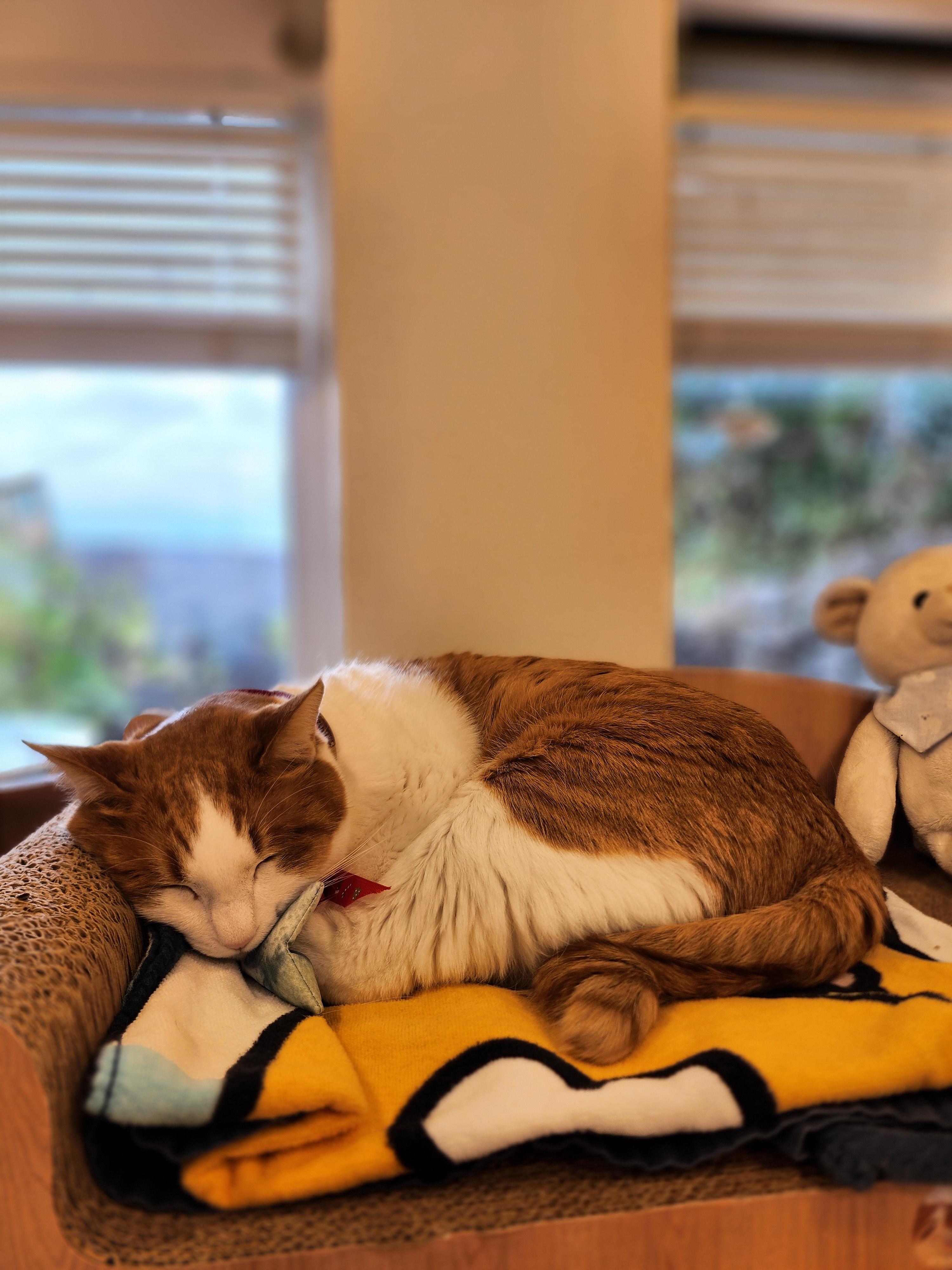 종이스크래처에 담요를 깔아줬었는데 이제 그만 보내줘야할 때가 되었다.