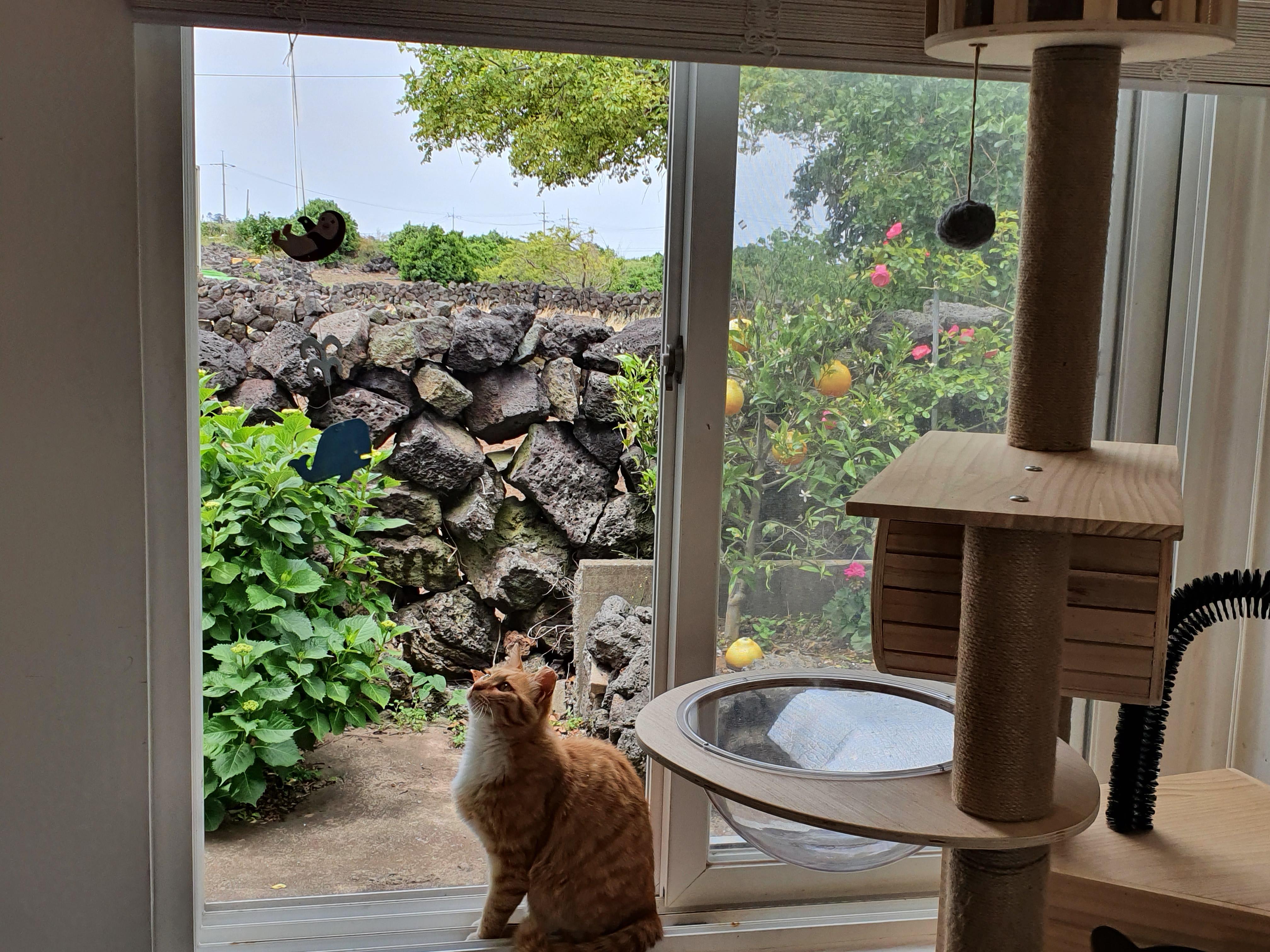 카페 마당에 마련된 고양이 집에서