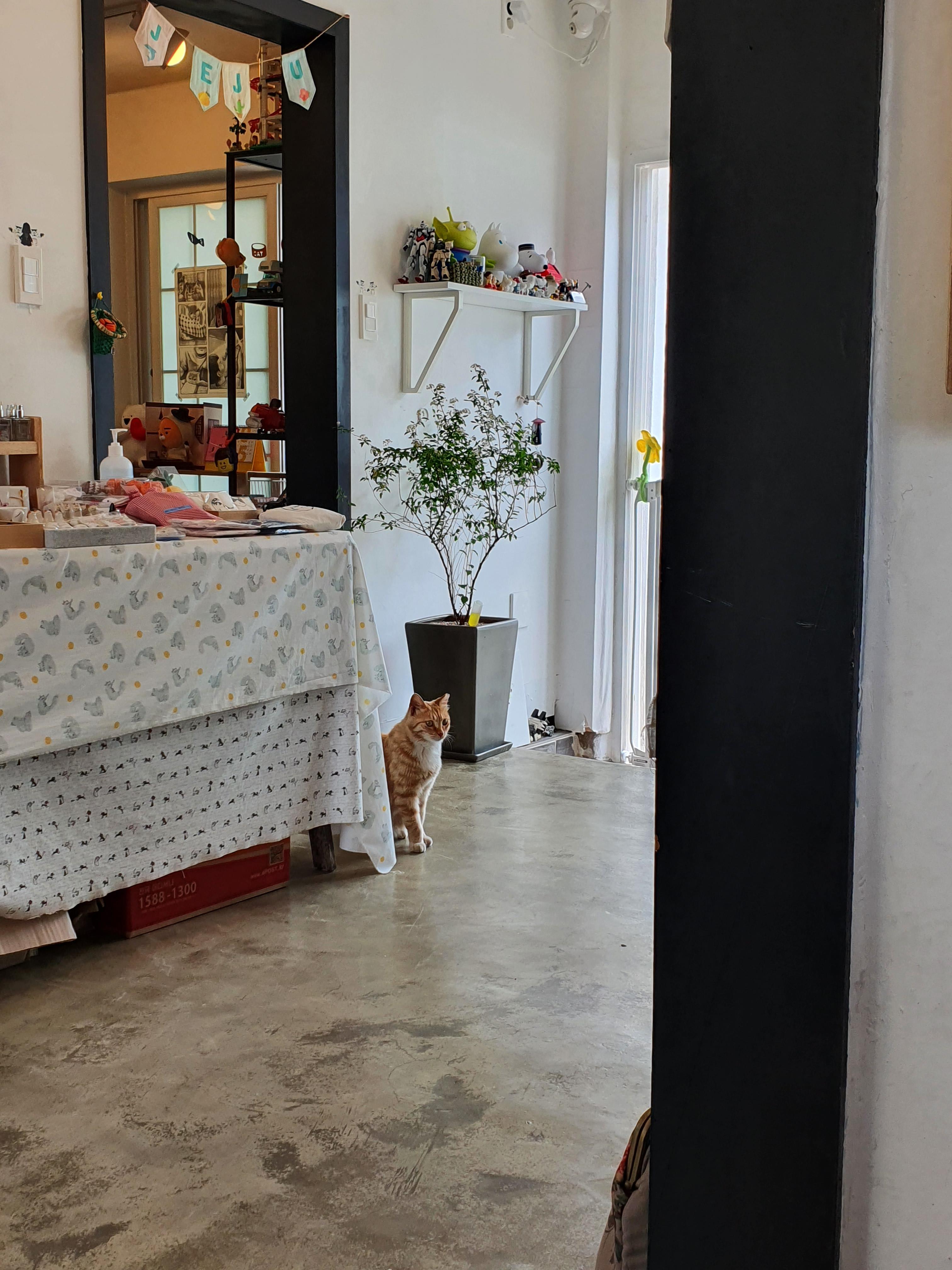 온통 노란색 고양이만 가득한 김녕치즈마을 속 유일하게 턱시도를 갖춰입은 고양이 바로 필통씨다 필통씨는 서 있기보다는 주로 누워있거나 기대있는 모습인데, 그 사진을 모아보았다. 전날 한