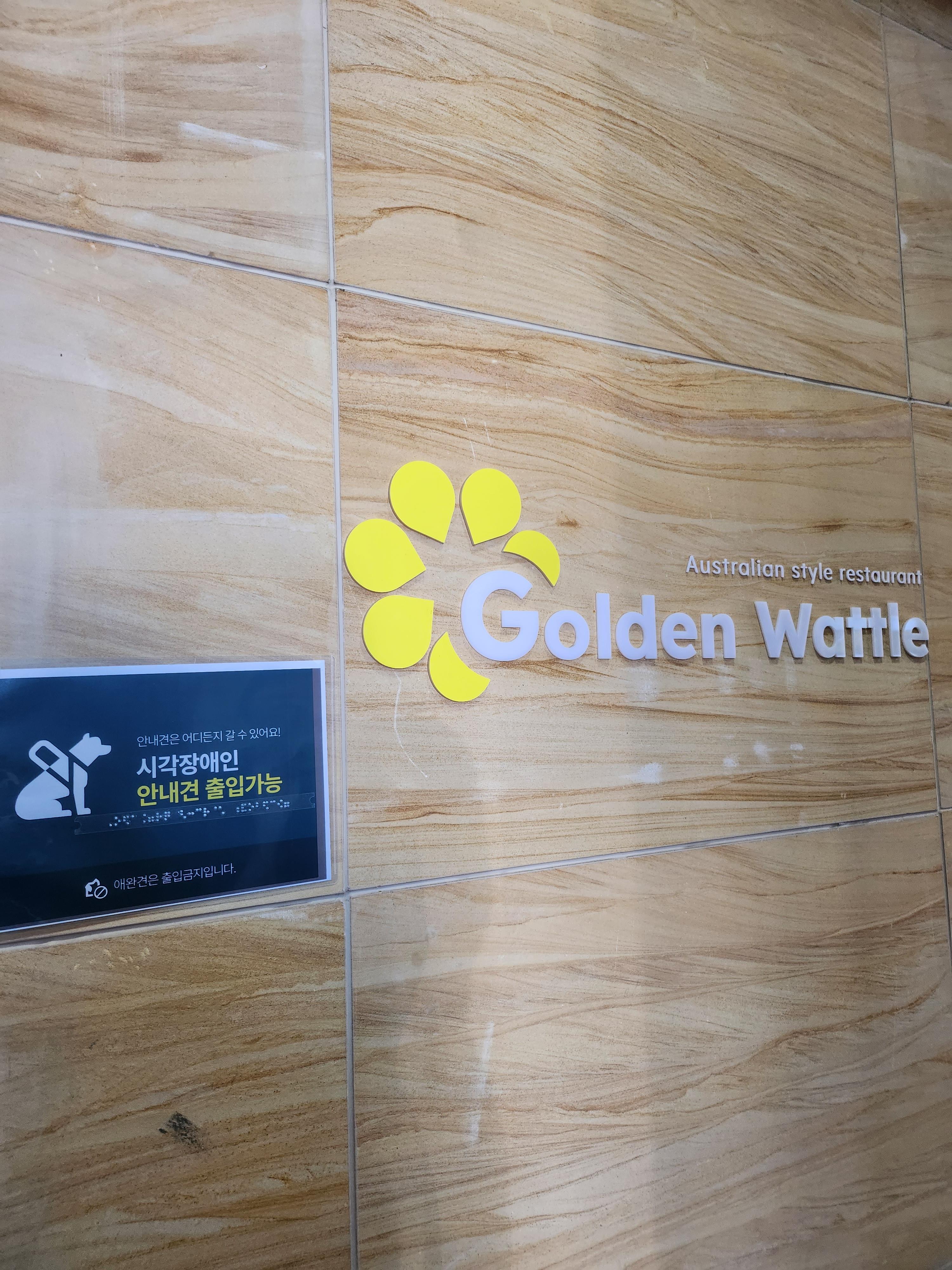 골든와틀의 입구에서 시각장애인 안내견 출입이 가능하다는 안내문이 눈에 띄었어요. 사실 안내문을 붙여놓지 않아도 시각장애인 안내견은 어디든 갈 수 있지만 일부 몰지각한 사람들이 안내견의 출입을 방해해서 문제가 되는 경우를 심심치 않게 보았었는데, 입구에 이렇게 명시되어 있으니 동물을 사랑하는 사람으로써 너무 기분이 좋더라고요.