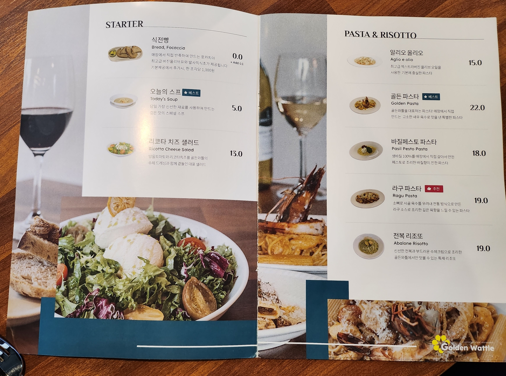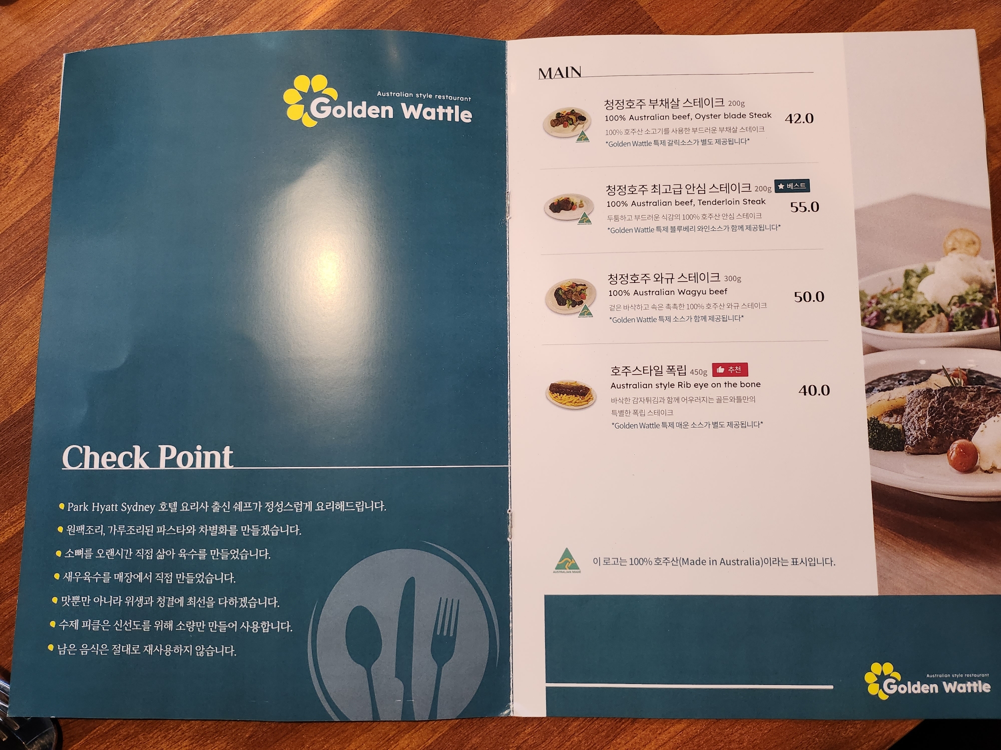 골든 와틀의 쉐프님이 파크 하얏트 시드니와 시드니 오페라하우스에서 근무한 이력이 있는 분이라 호주의 것을 가지고 왔나봐요!