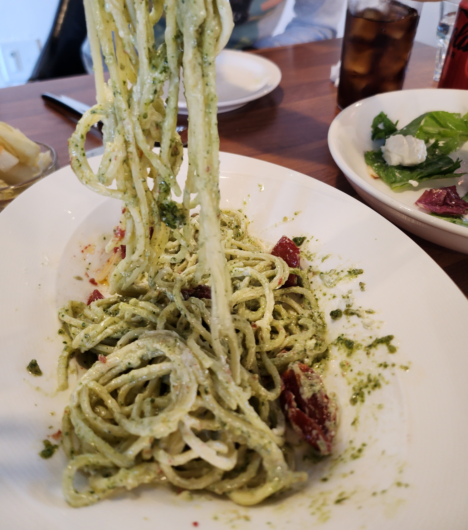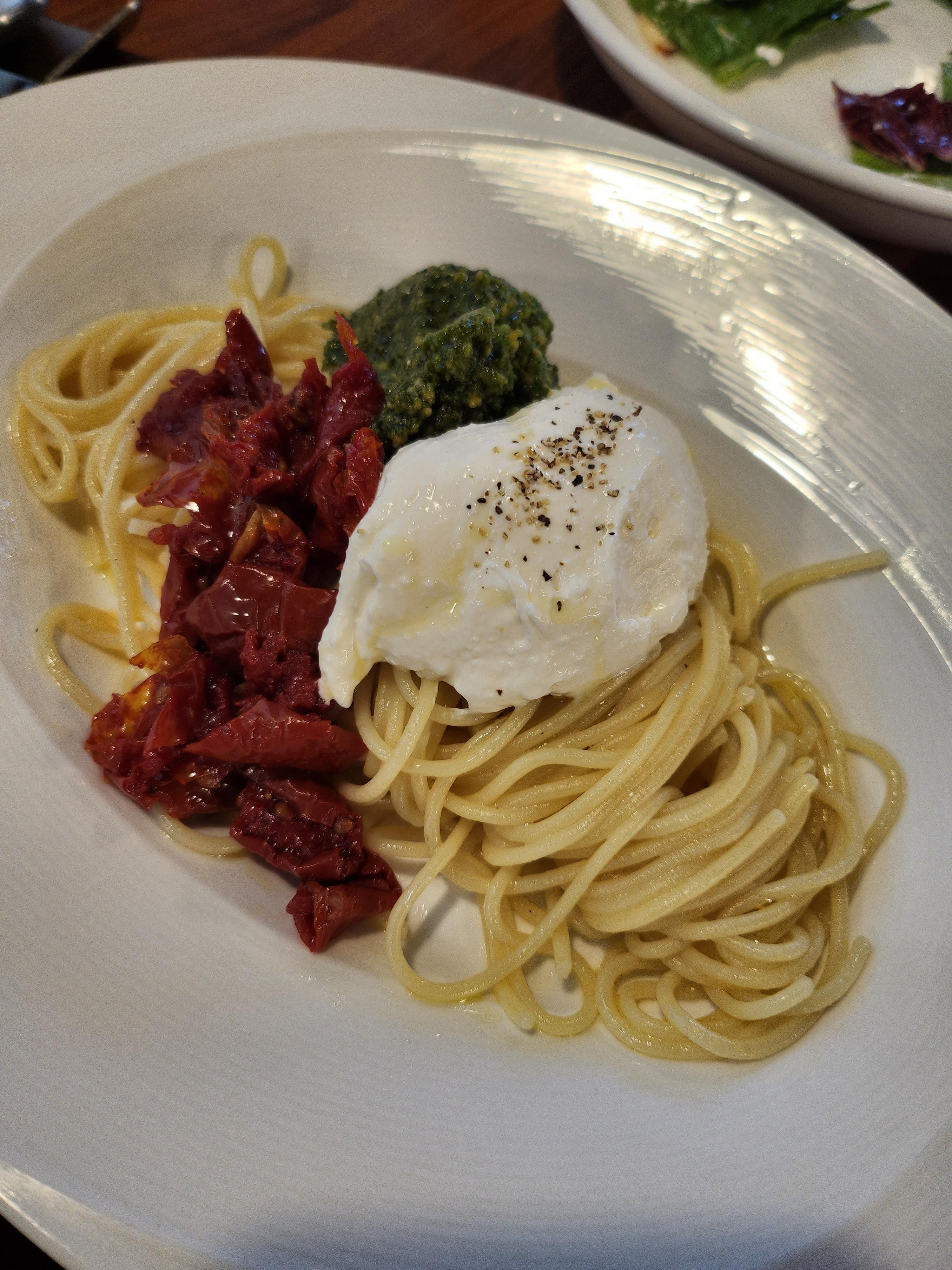 등장하자마자 시선을 매우 사로잡는 메뉴였어요. 크림치즈와 바질페스토, 그리고 면을 잘 섞어서 먹으라고 하시더라고요.