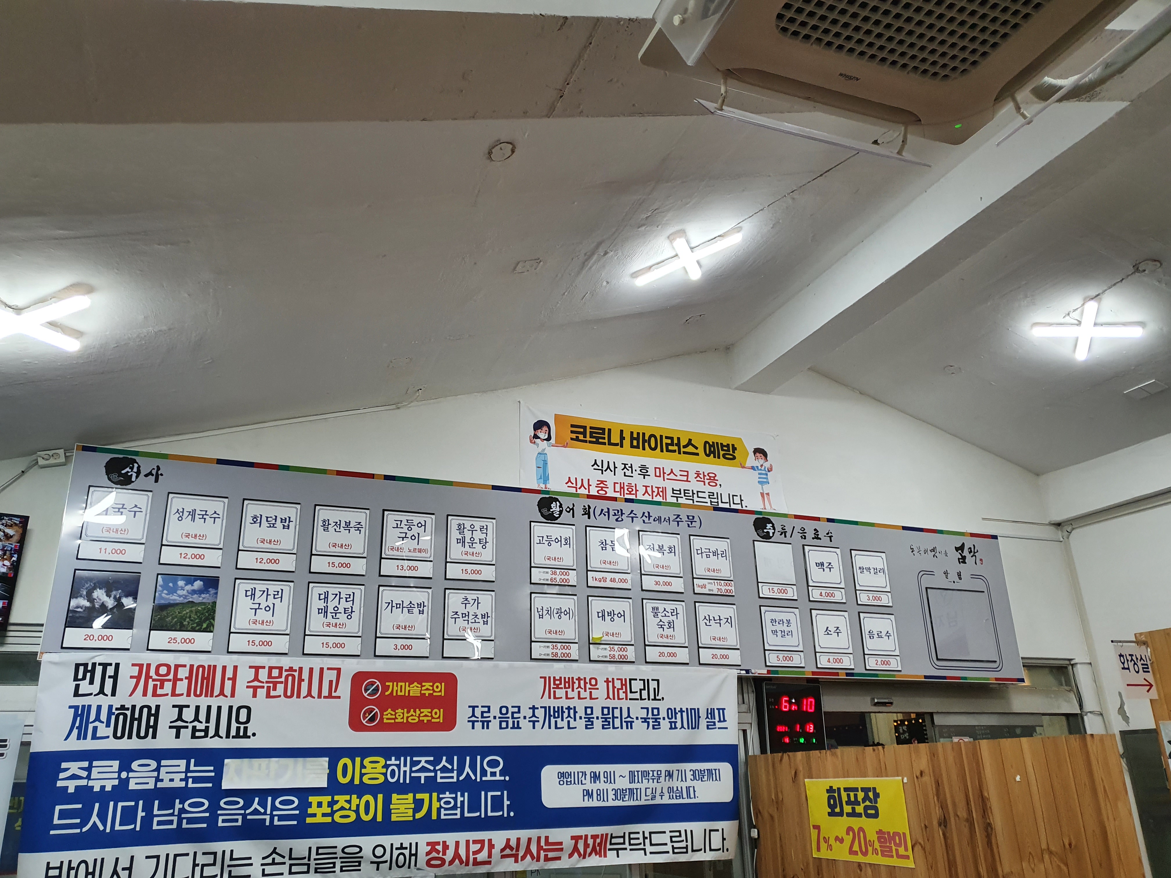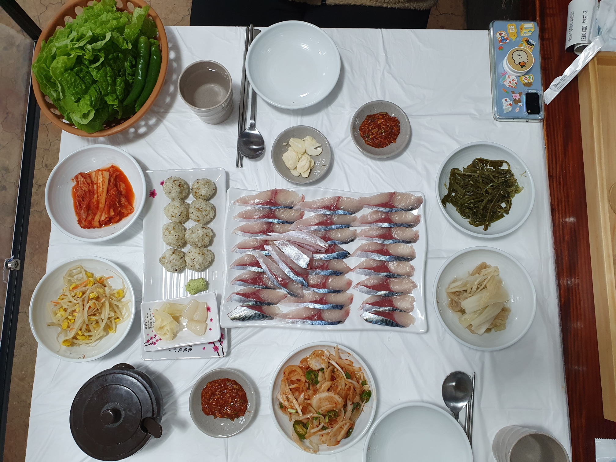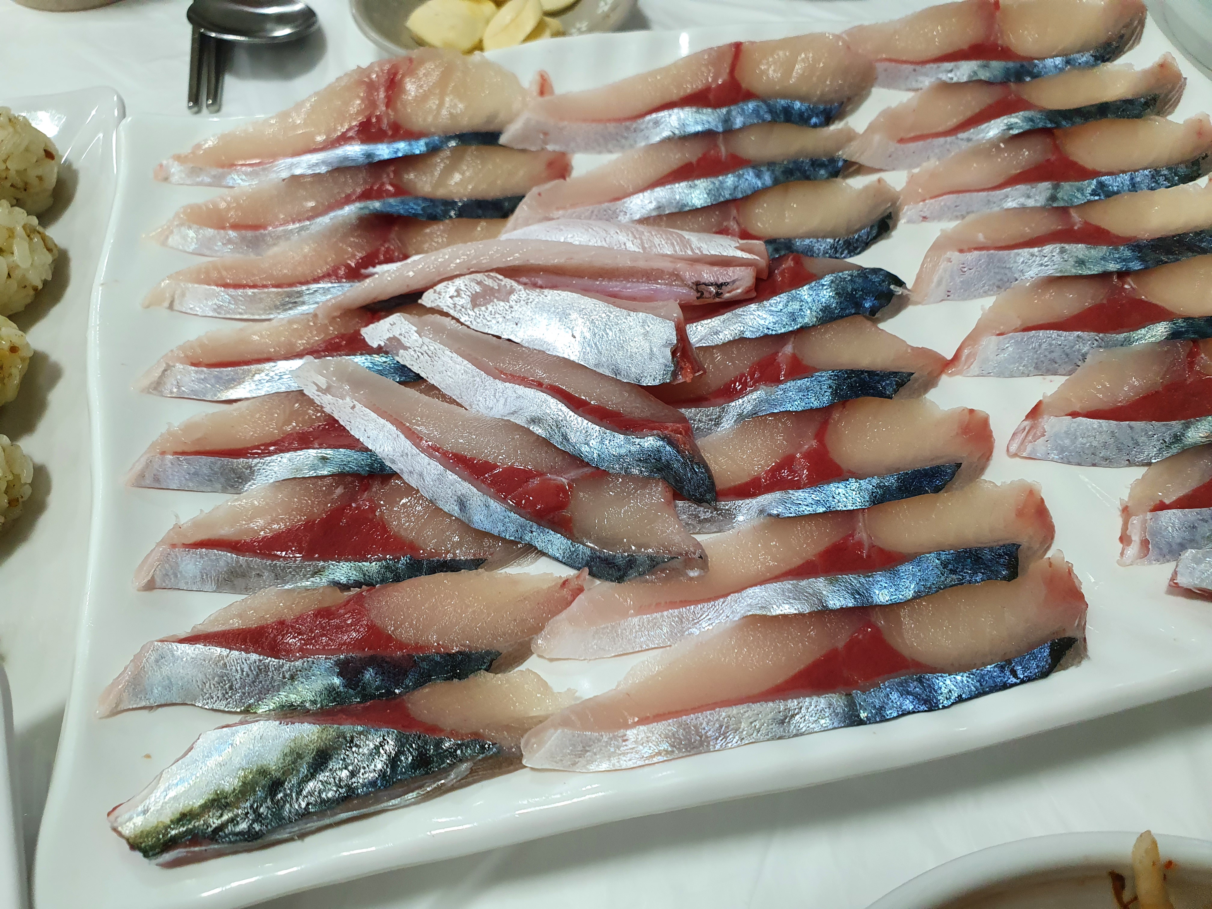 둘이 방문해서 고등어회(소), 성게국수 주문
