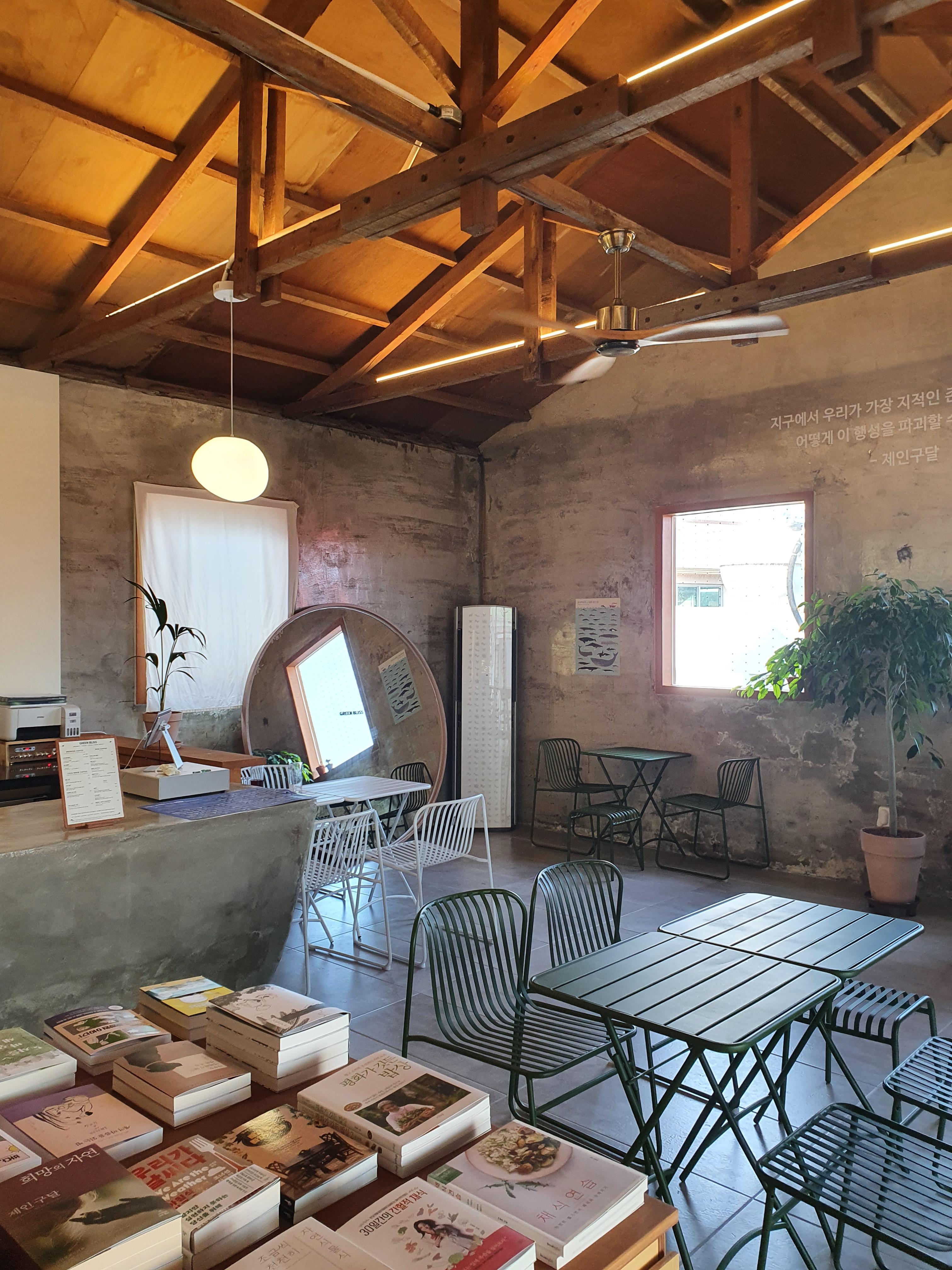 정면에 보이는 건물은 카페&서점