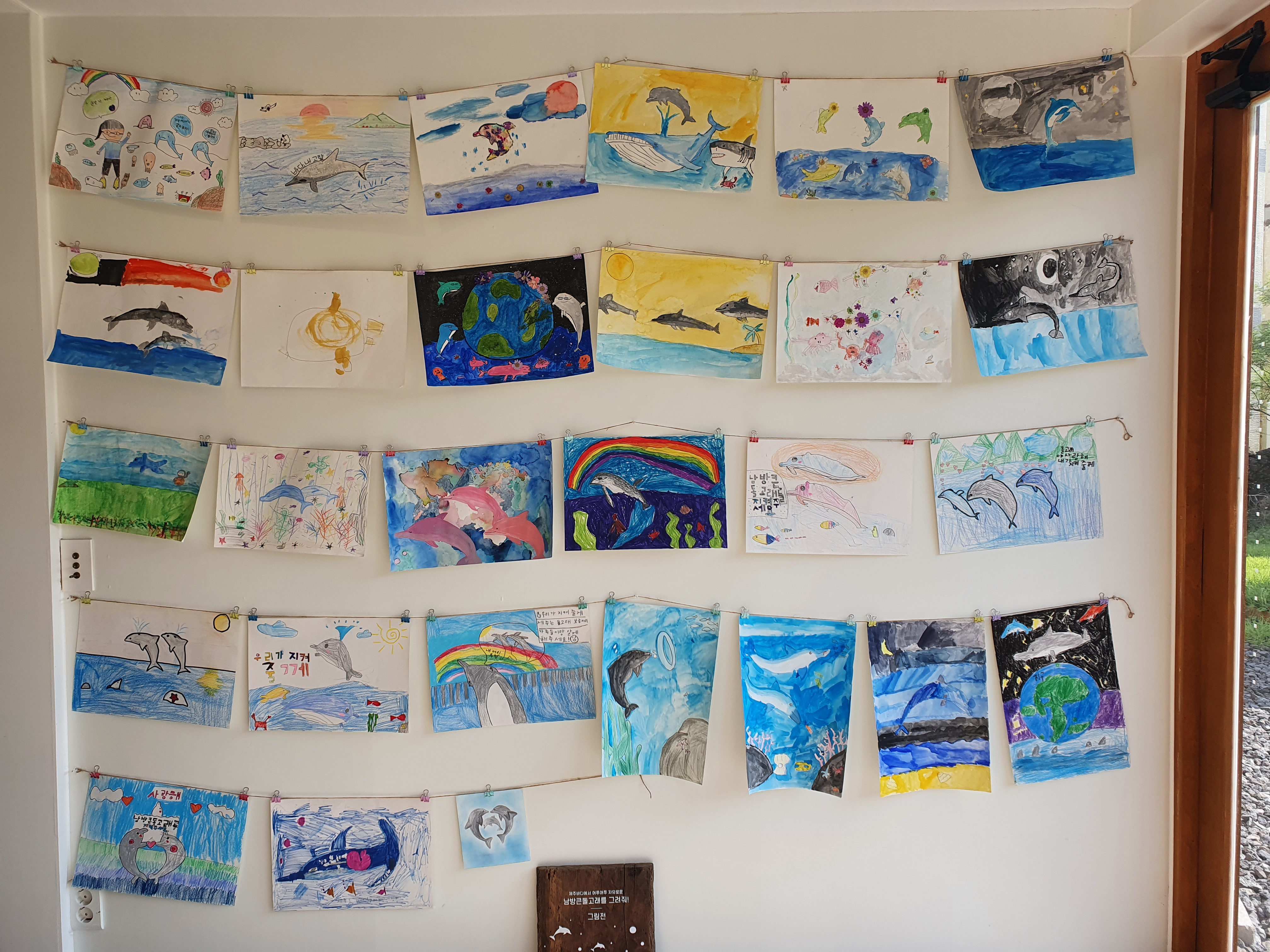 한쪽 벽면에는 돌고래 그림 전시가