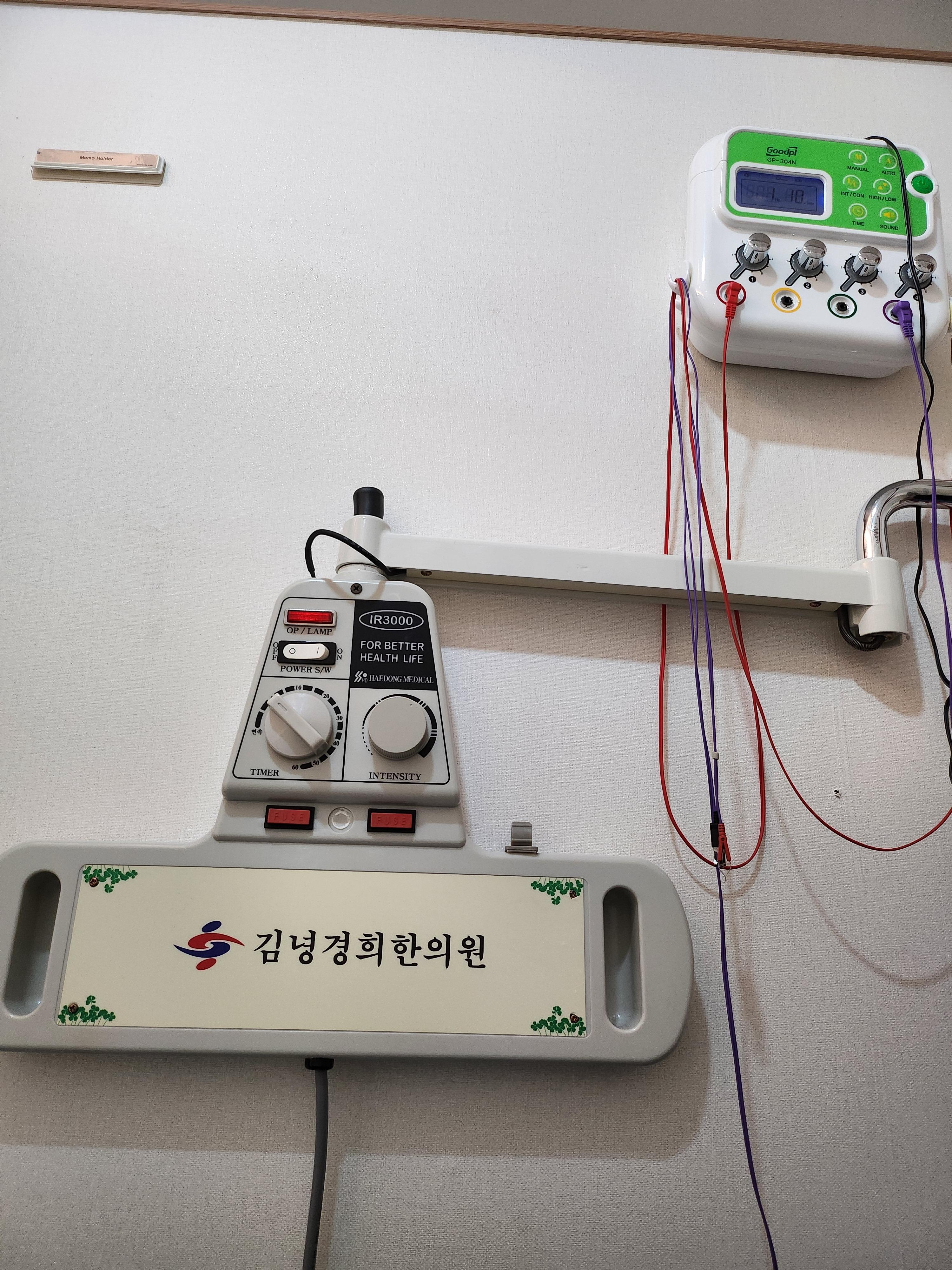 뜨끈하게 찜질하고, 저주파 치료를 받고 있으니
