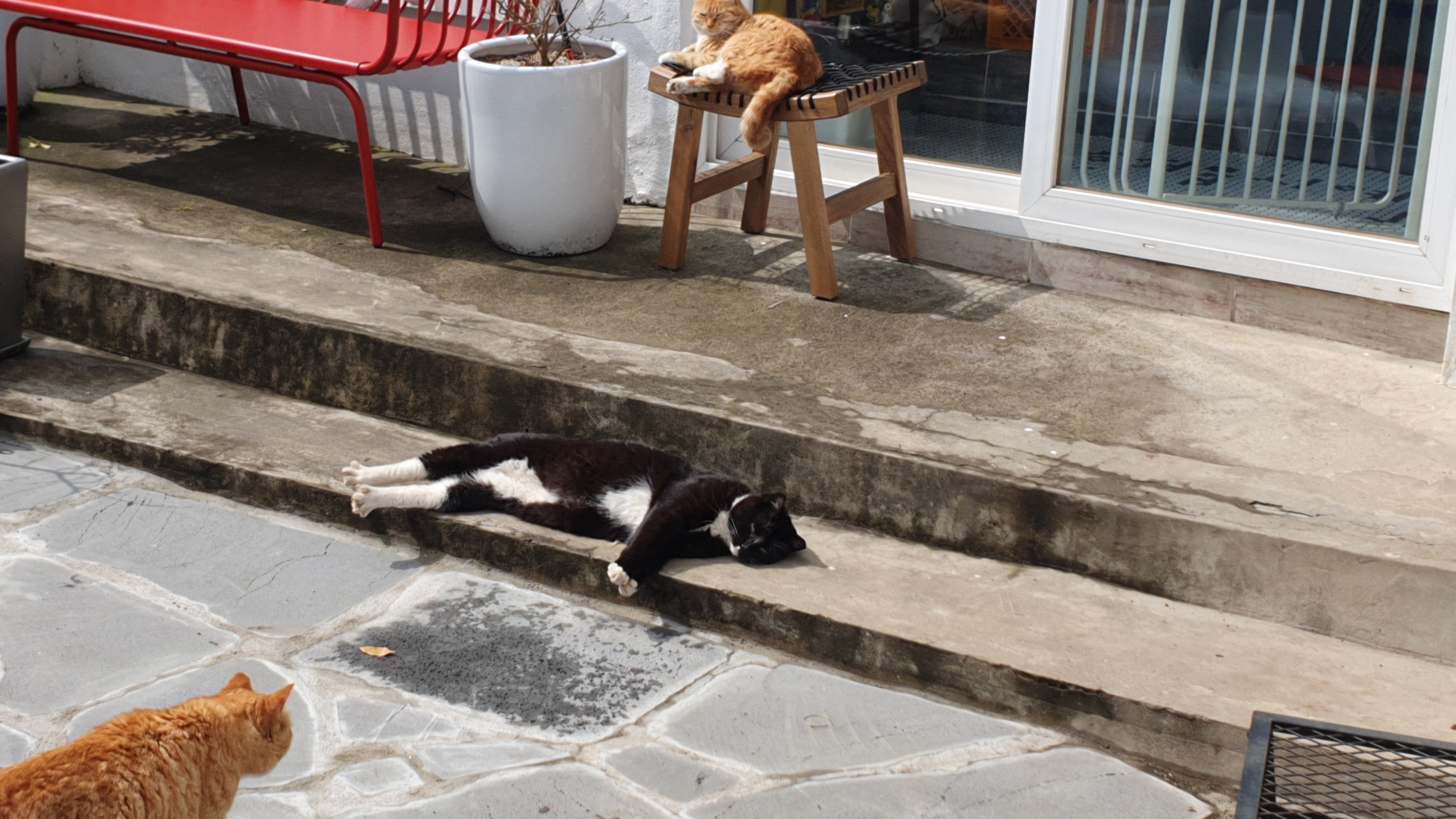 돌담 위로는 고양이가 기지개를 쭉쭉