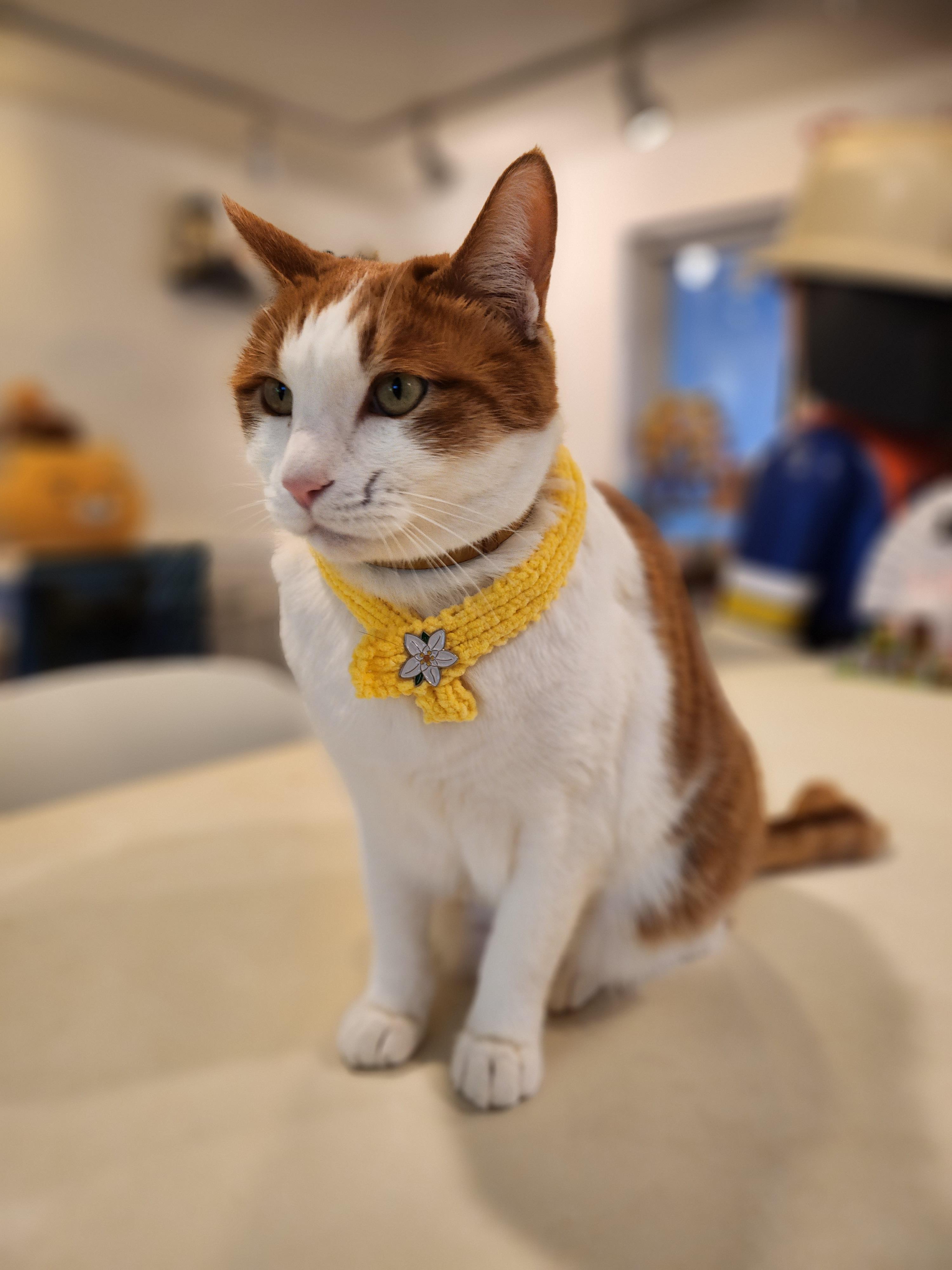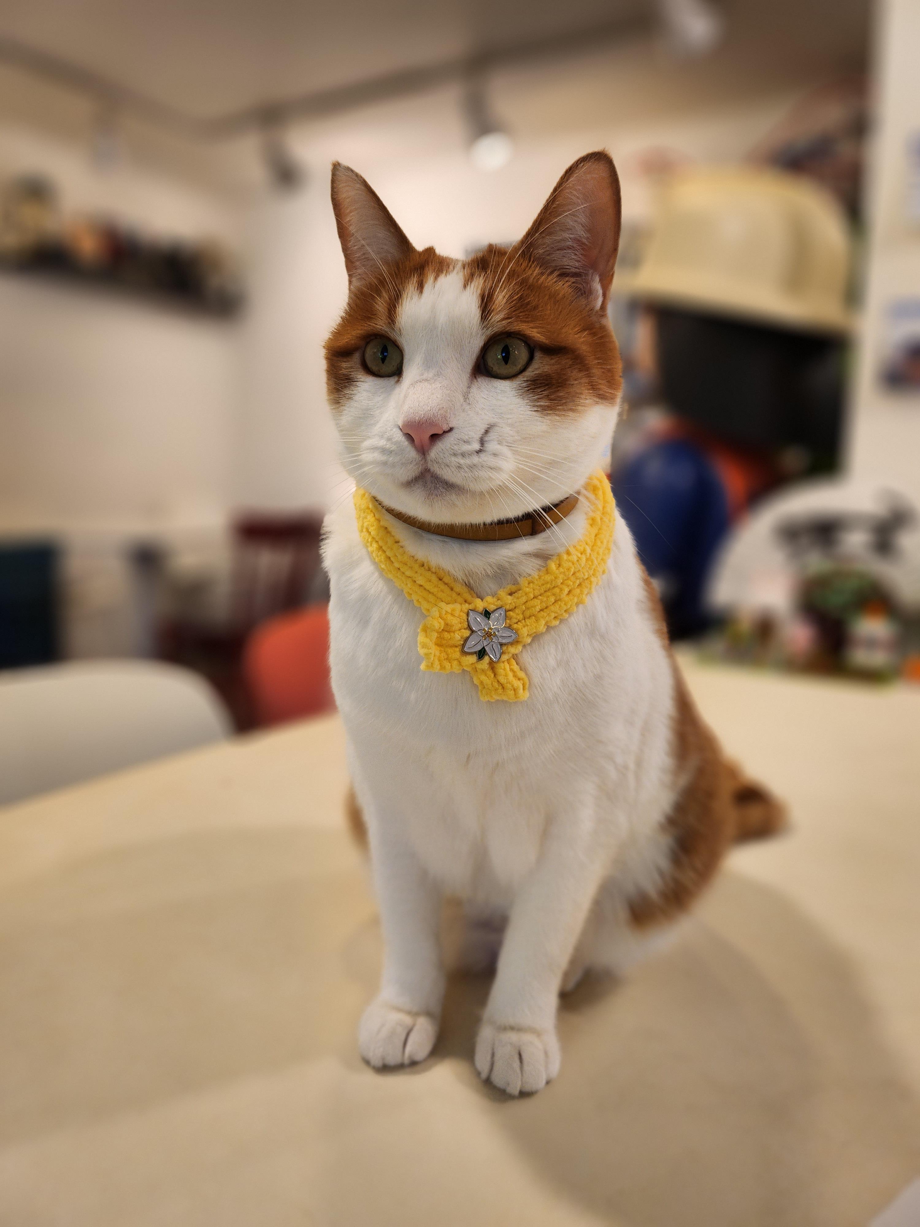 고양이들이 몸에 뭘 두르거나 착용하는걸 싫어하는 반면, 채영이는 어릴적부터 스카프와 이름표, 하네스까지 해주면 해주는대로 적응을 잘하는 고양이였다.