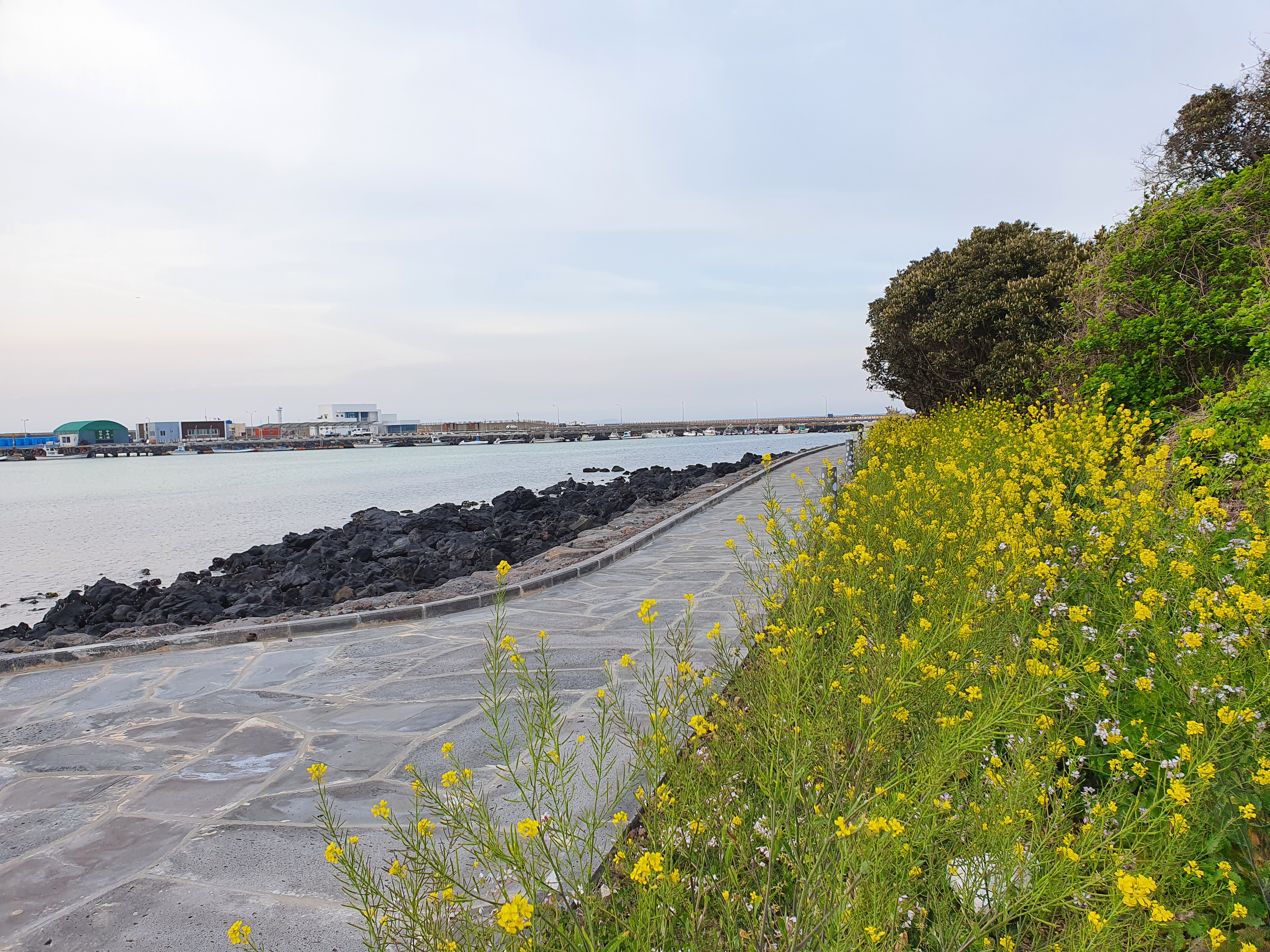 드넓은 유채꽃 밭과 그와 어우러진 바다의 절경이