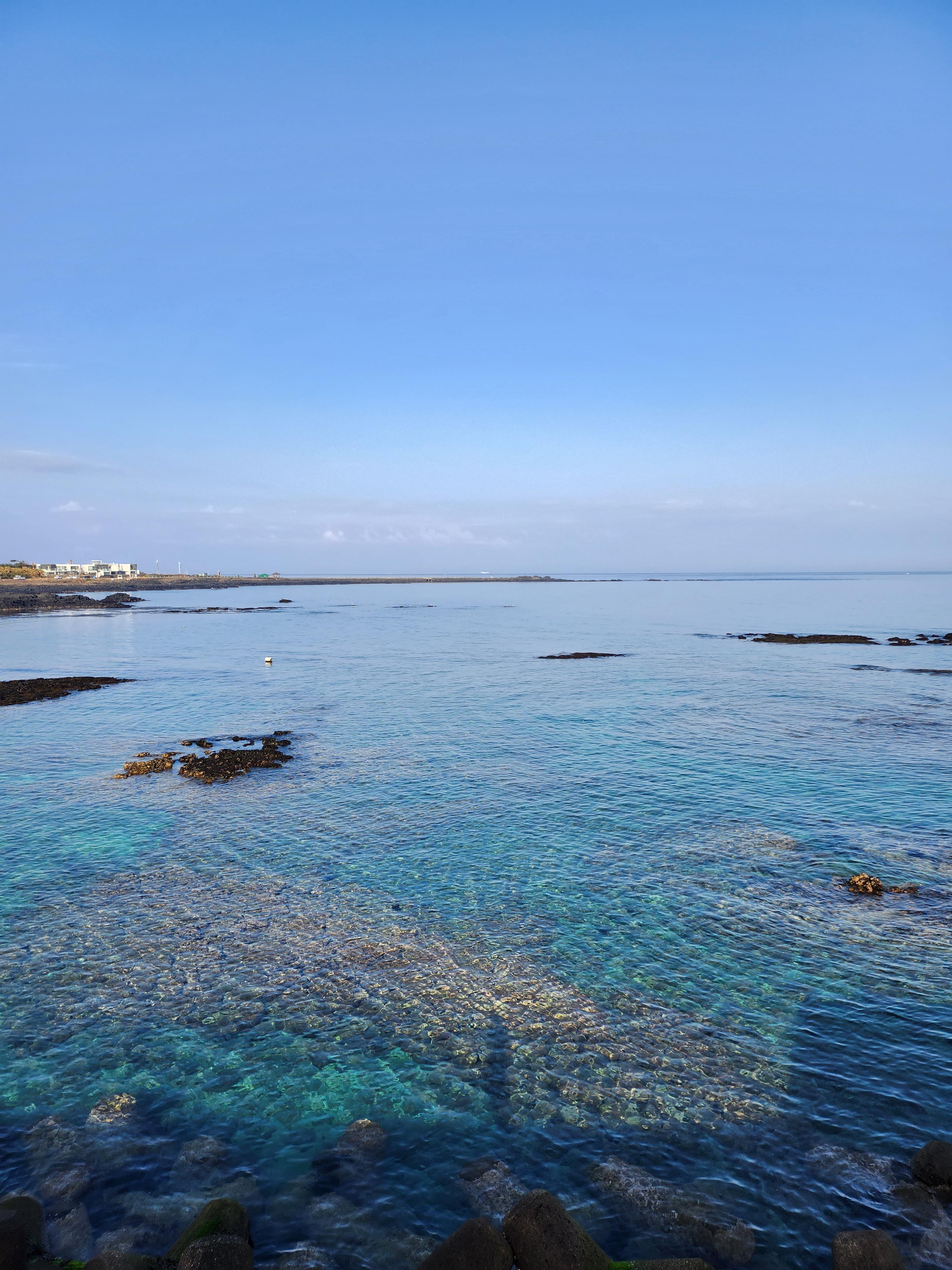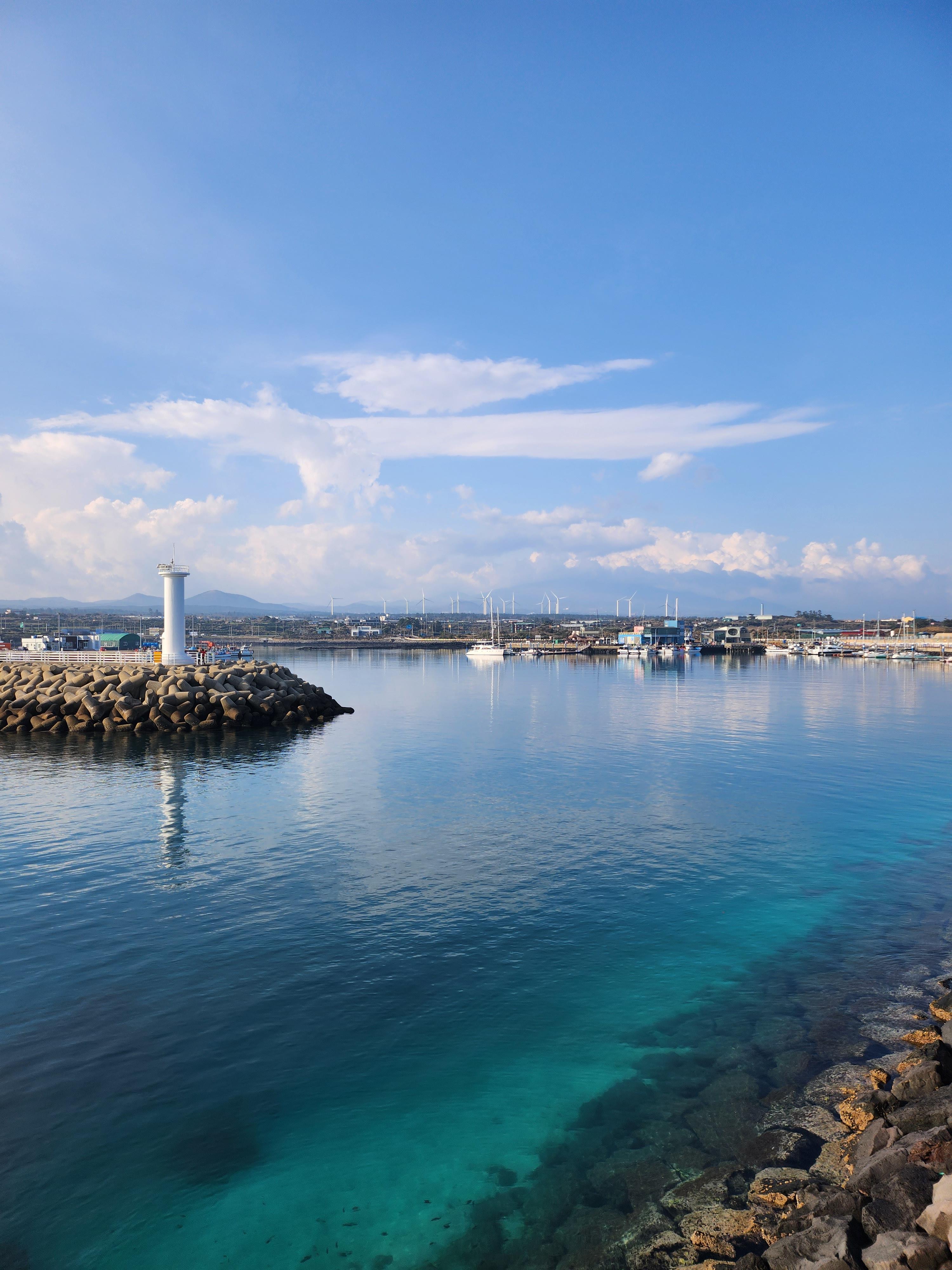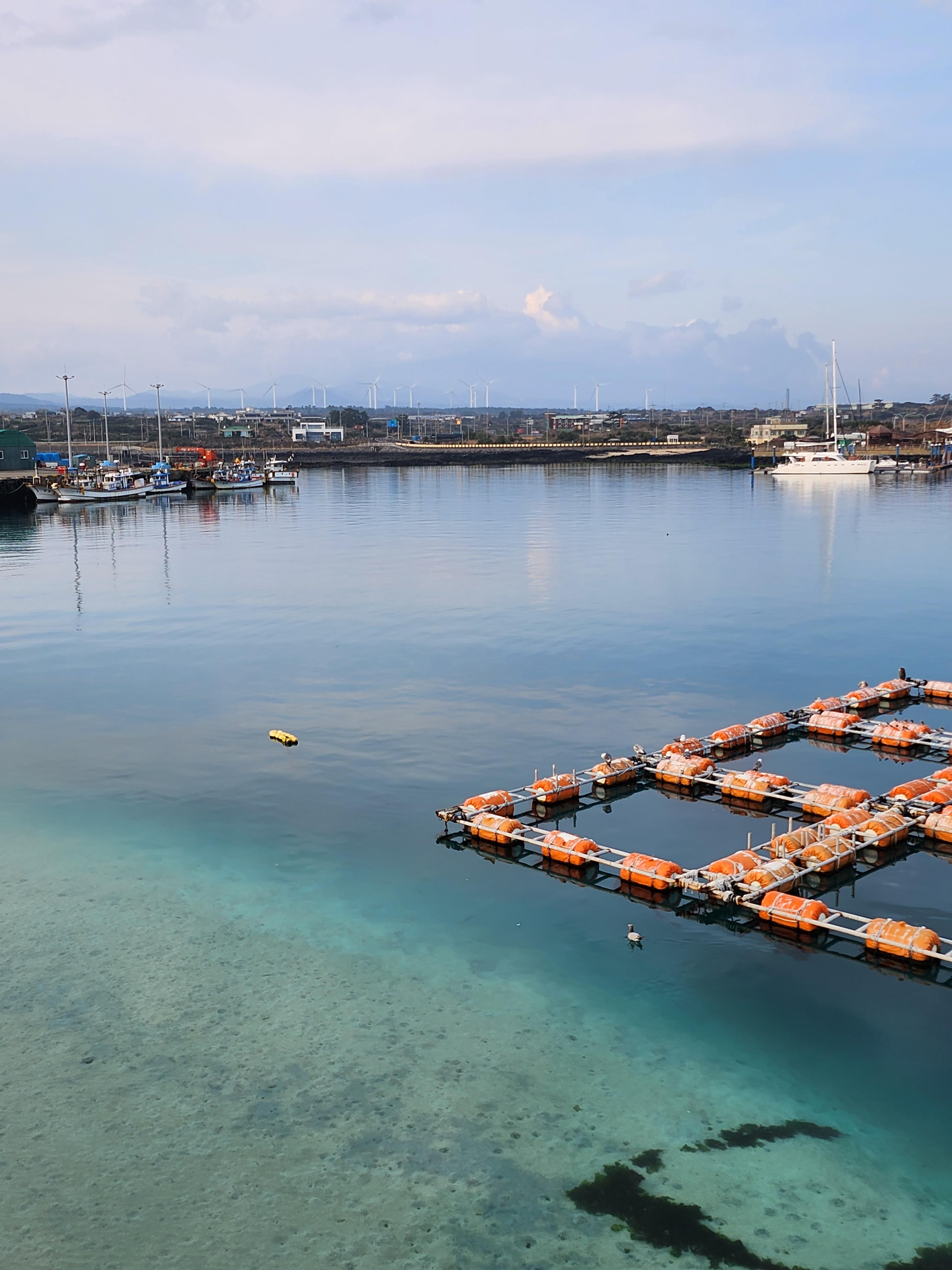 배가 정박되어 있는 곳인데도 물이 맑은 편이다. 제주도에서 예쁘다고 하는 바다를 많이 봤지만 김녕항의 물빛 만큼 맑고 영롱한 곳은 본적이 없는 것 같다.