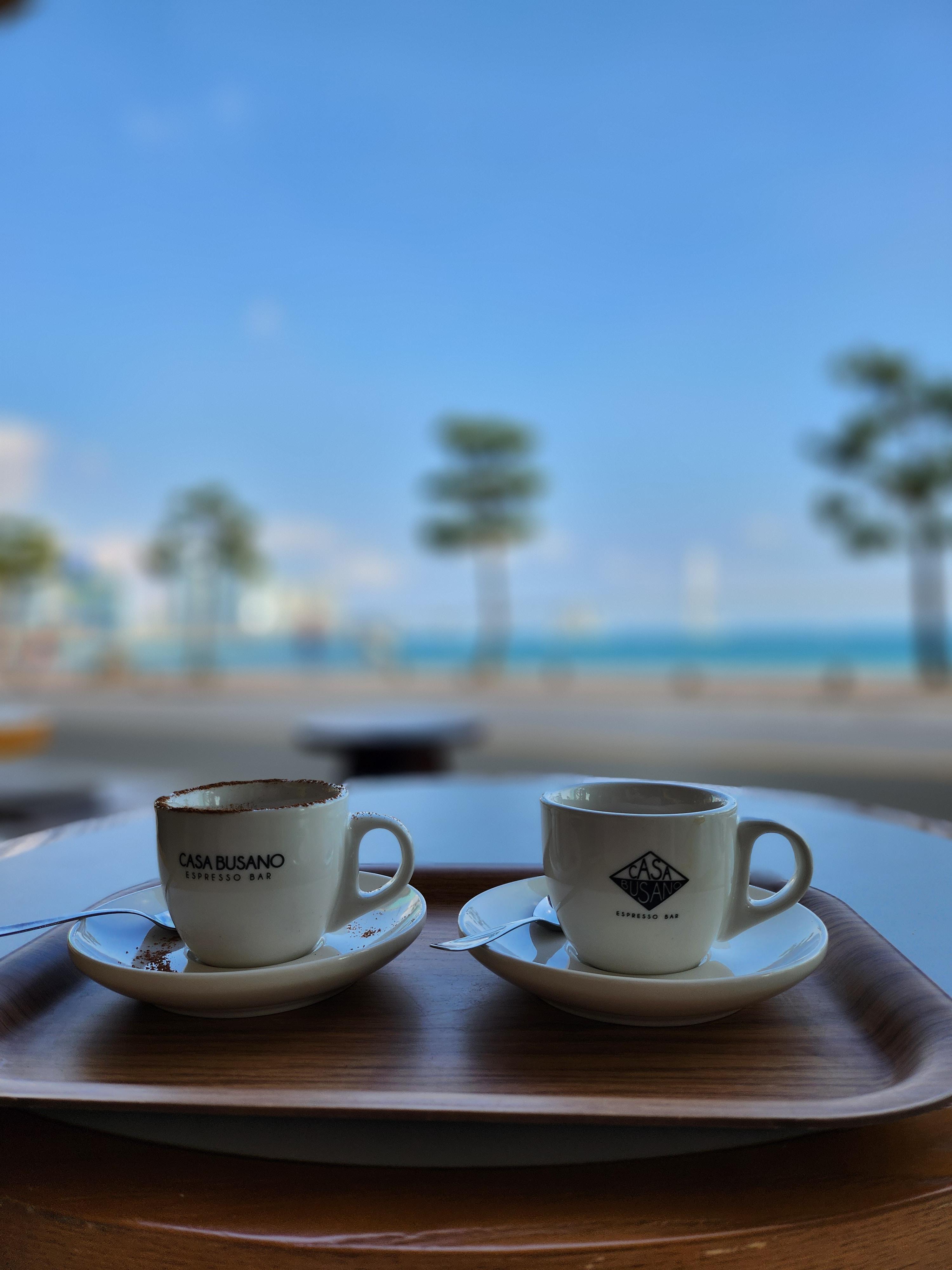 바다를 보며 마시는 에스프레소 한잔. 요즘 에스프레소 바가 많아지면서 맛있는 에스프레소를 마실 수 있어서 너무 좋다. 아메리카노나 라떼는 어떨때는 좀 무거운 느낌이 있는데, 에스프레소는 가볍게 즐길 수 있어서 좋다.