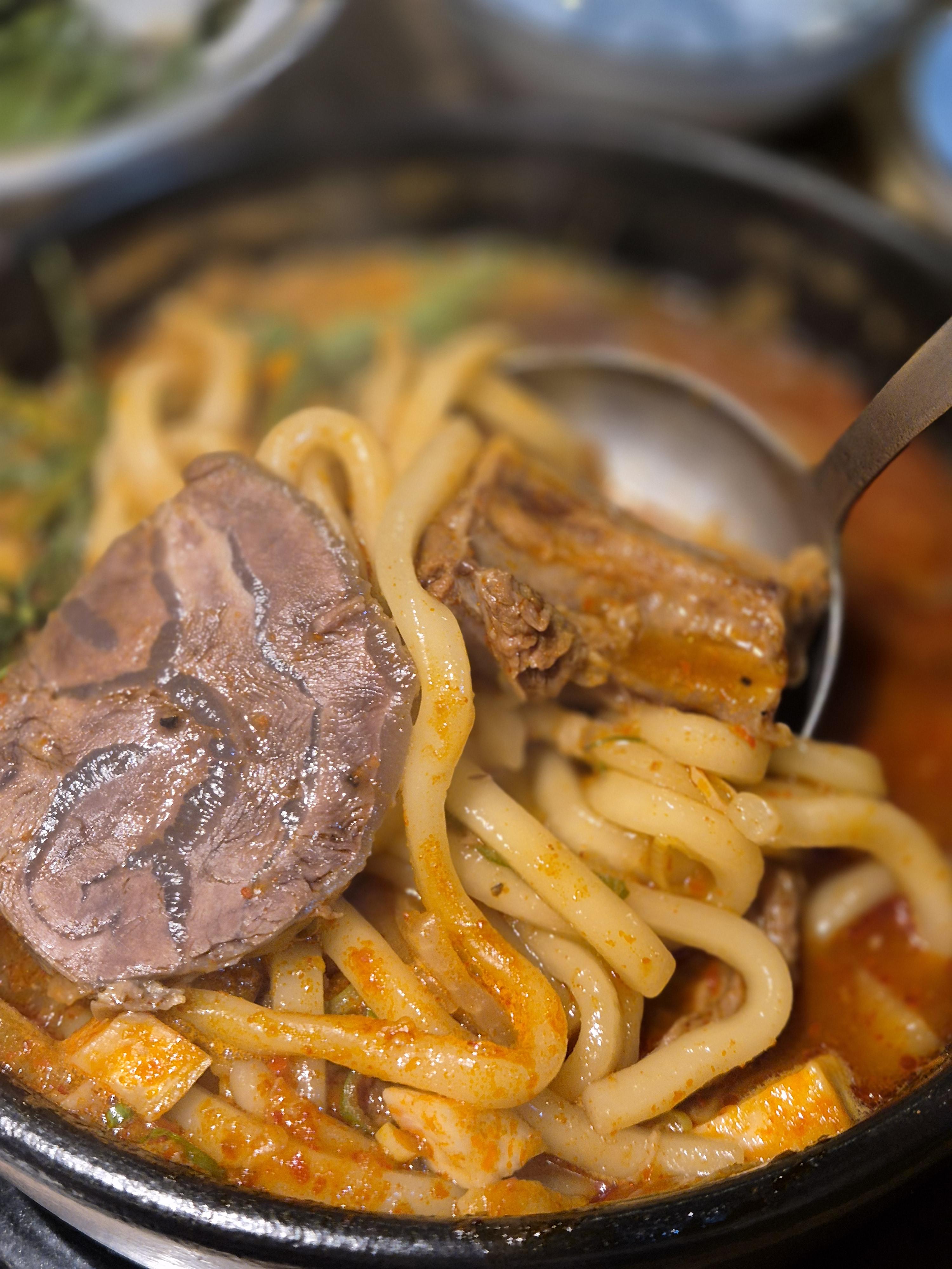 고기 양이 말도 못하게 많이 들어있고, 이렇게 뜨거운 뚝배기에 들어있는 우동인데 면발이 탱글탱글하다.