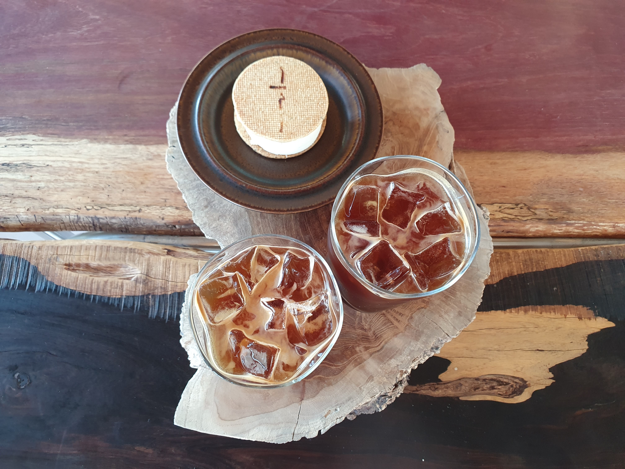 주문한 음료도 묵직한 나무 트레이에 얹어