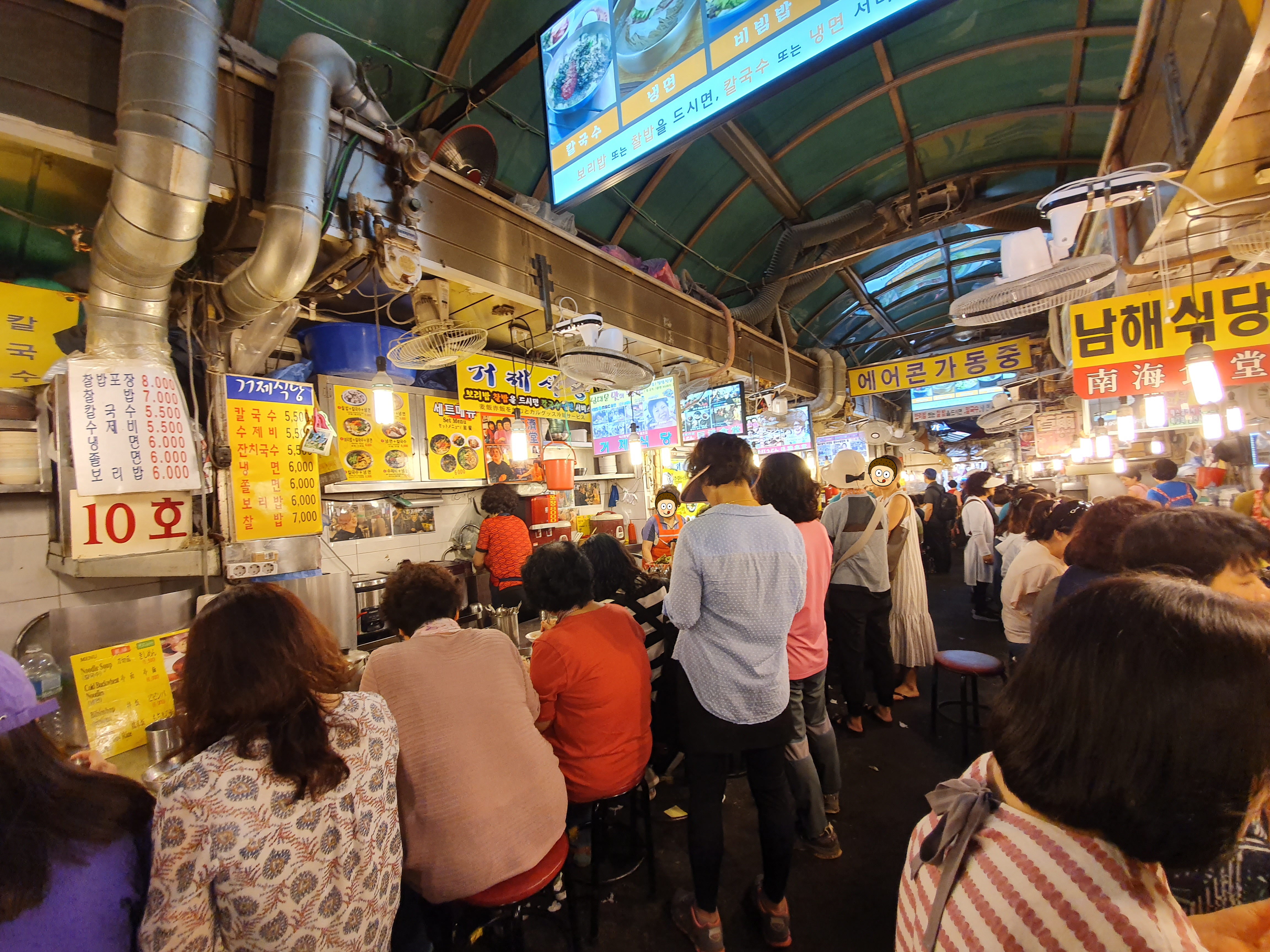 식당가 끝에 다다를때까지 자리가 없어서