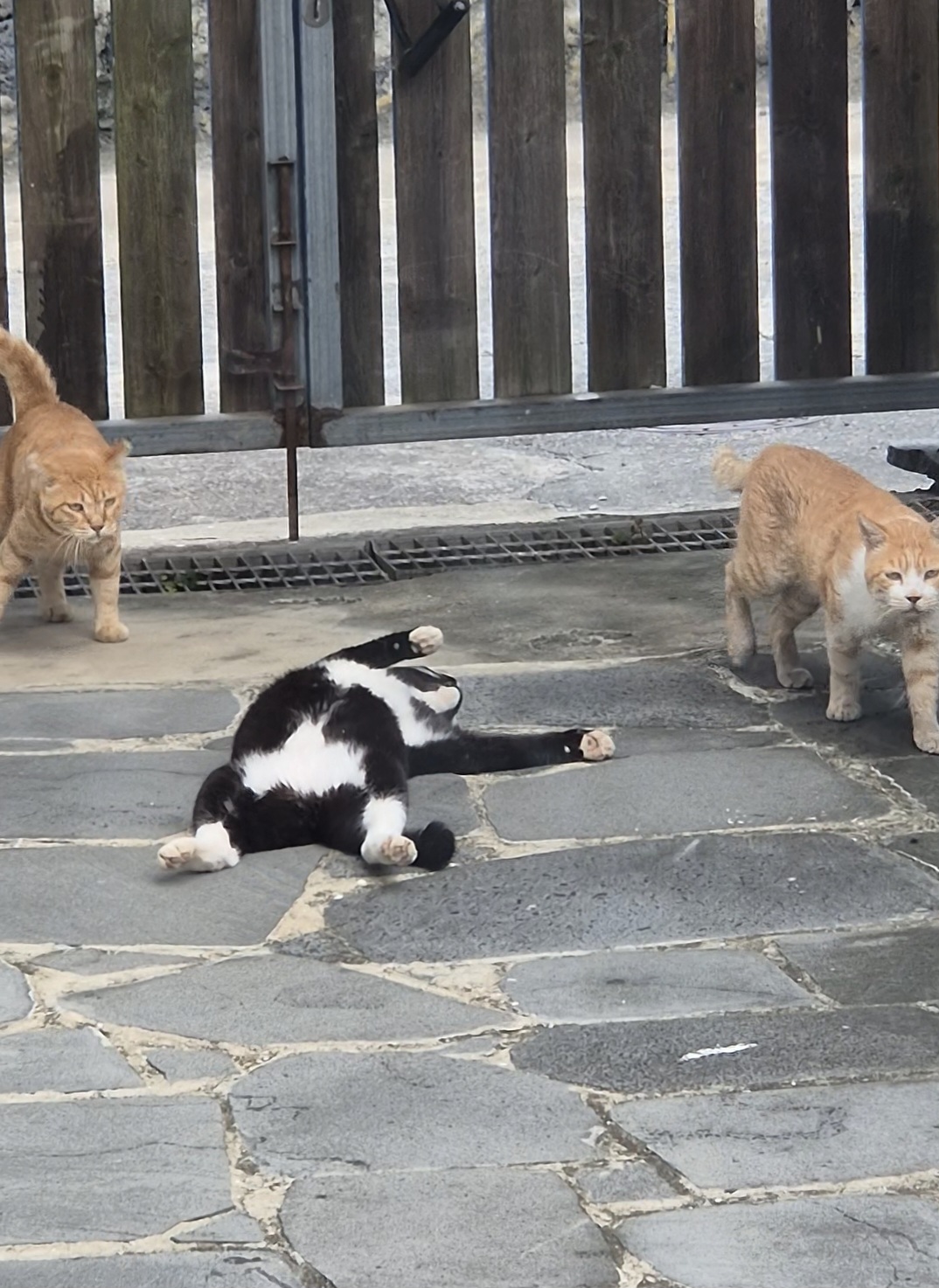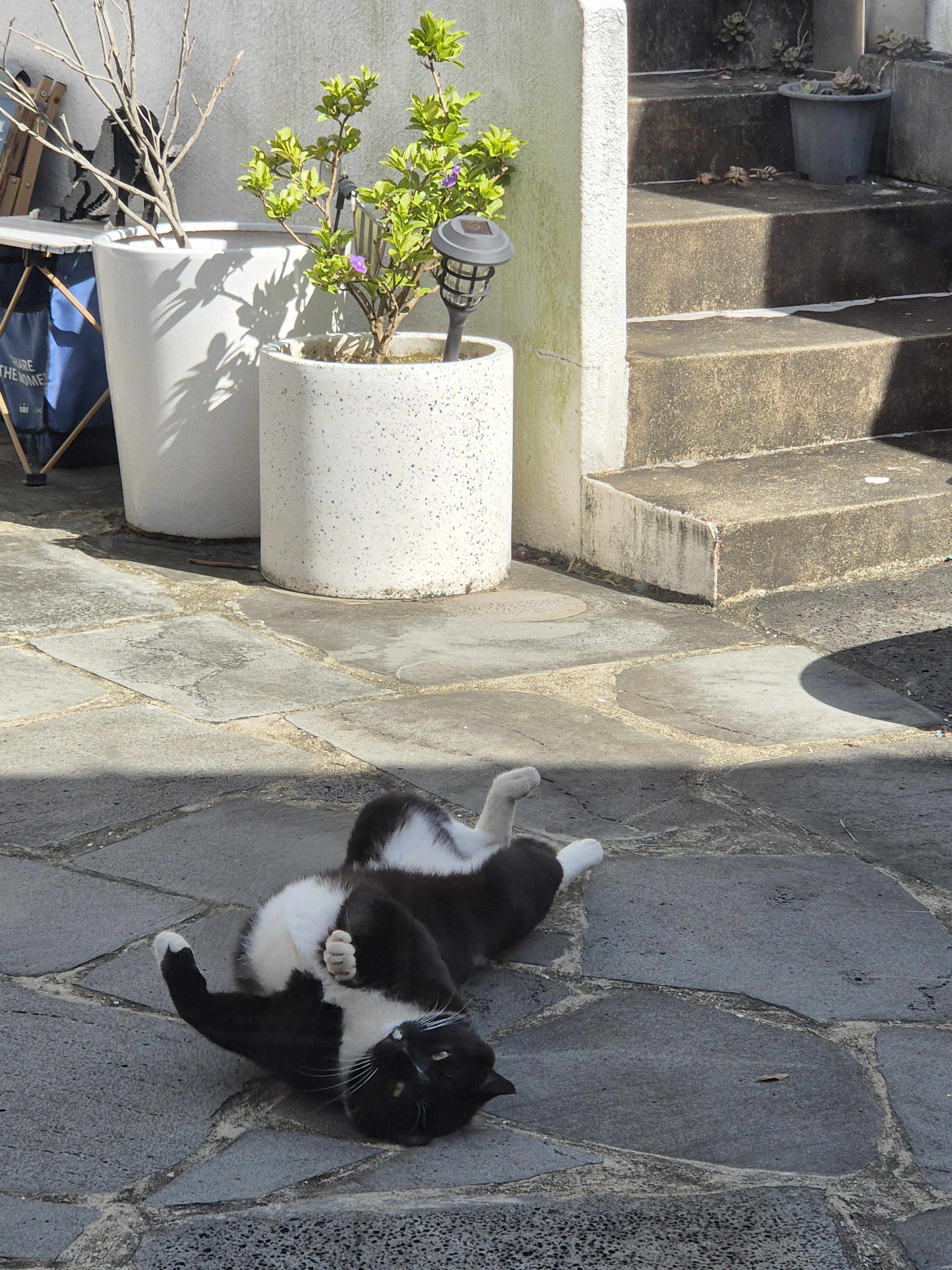 어느 날은 고양이들이 카페 맞은편으로 가더니 하나둘씩 픽픽 쓰러져서는 뒹굴뒹굴 거리는게 신기해서 사진과 영상을 찍었다.