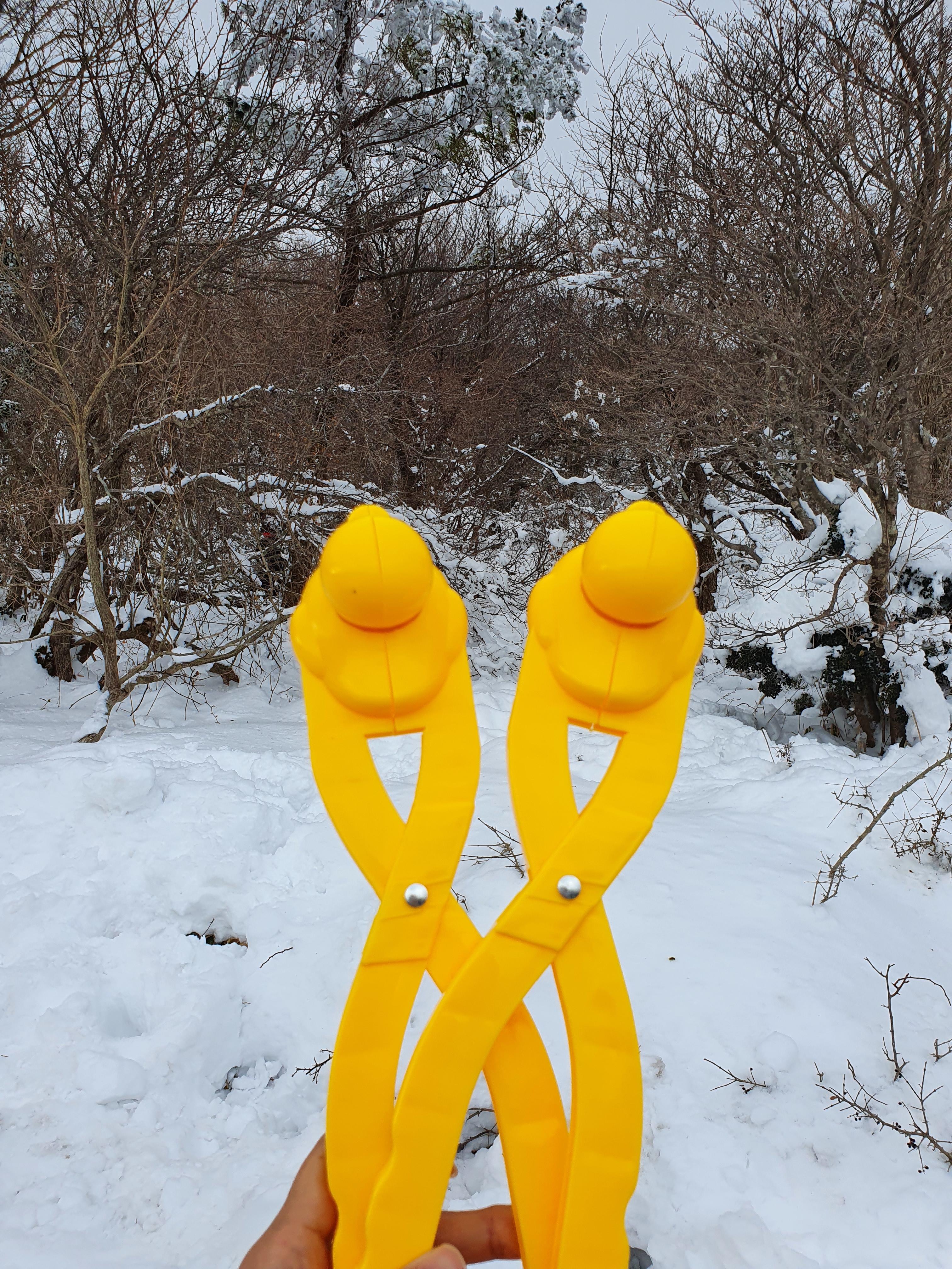 널려있는 눈오리 집게를 들고