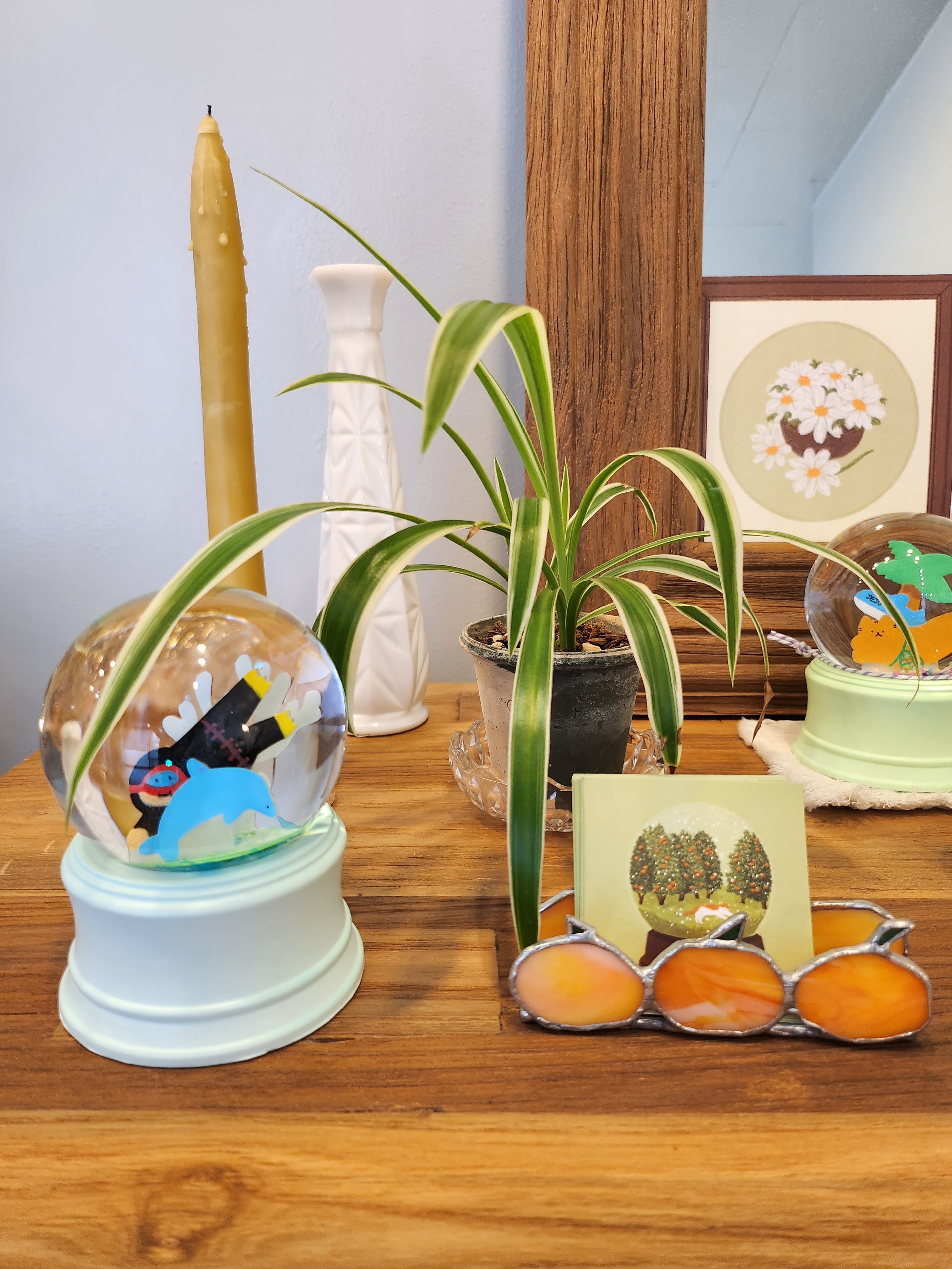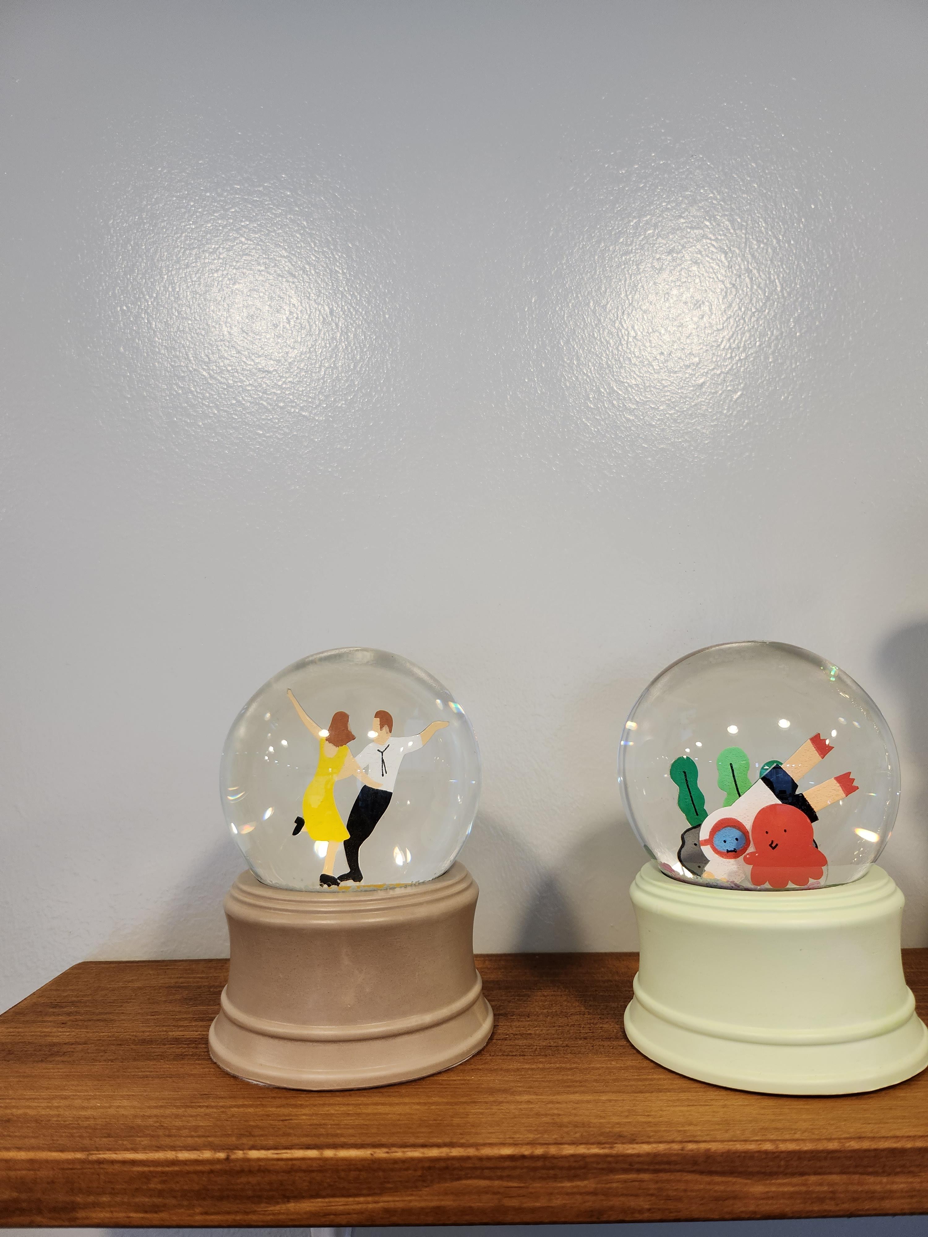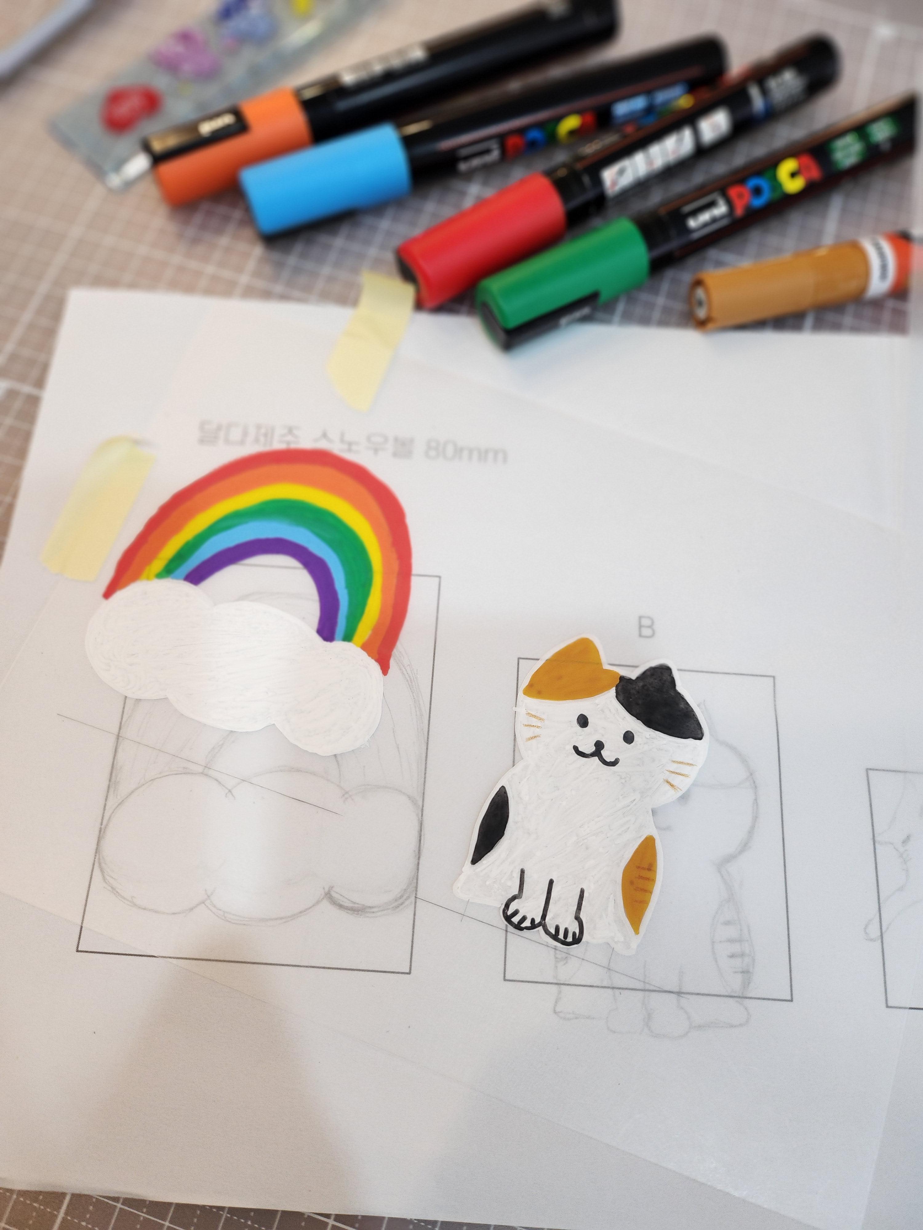 직접 그리고 만든 귀여운 스노우볼을 보며