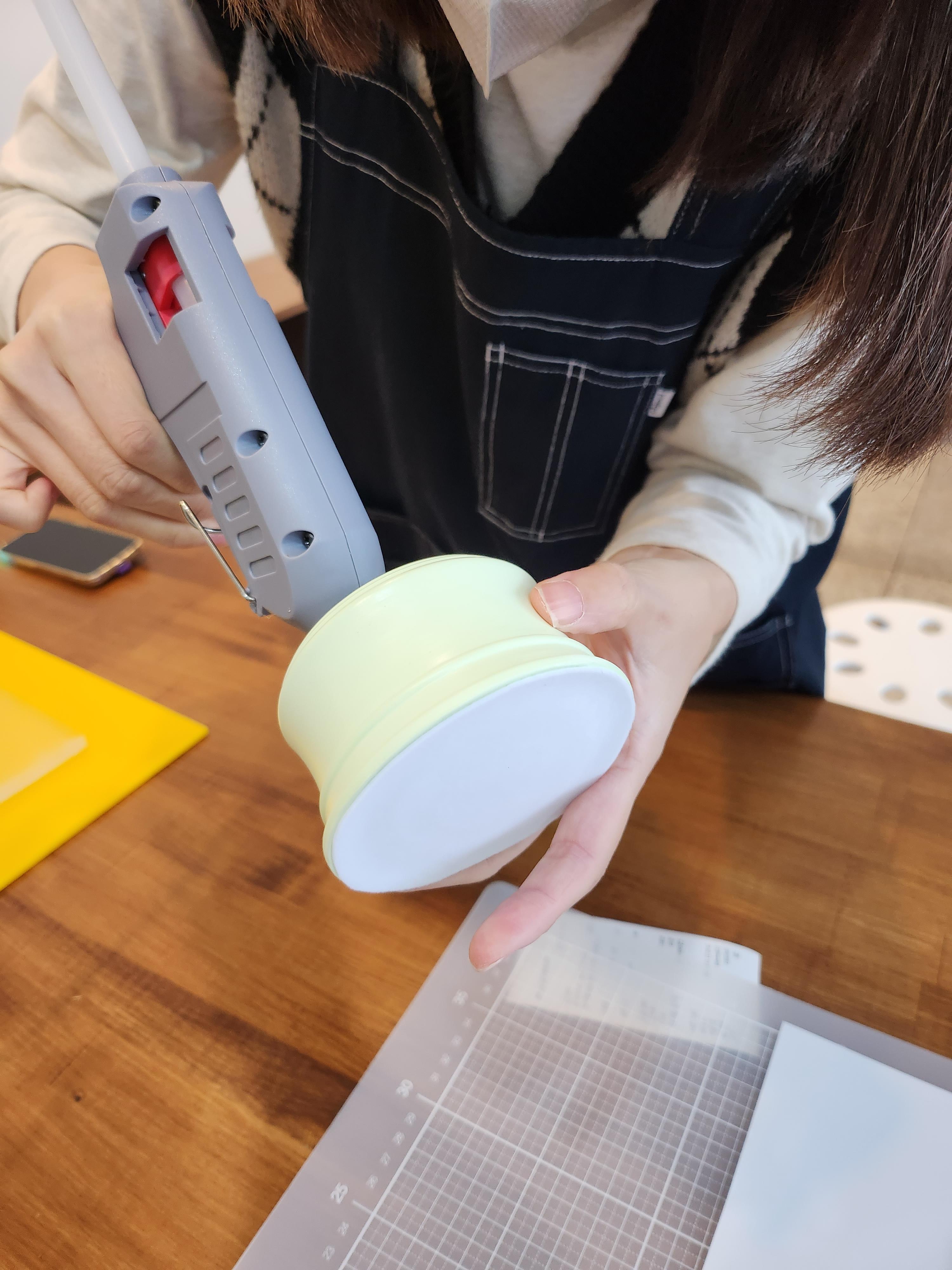글루건을 쏘는 작업이 힘이 많이 들어가서