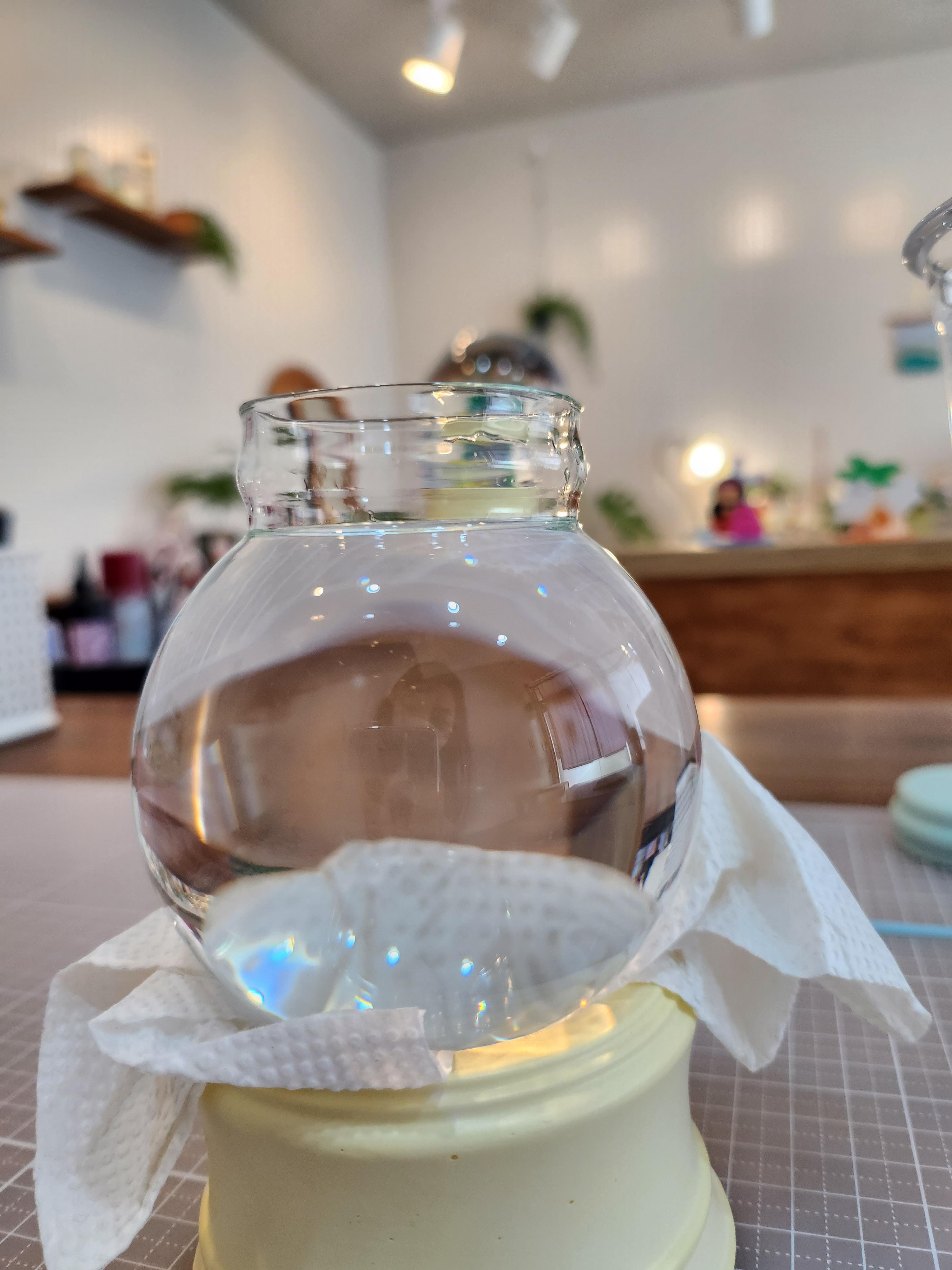우선 스노우볼 안에 들어갈 용액을 붓고