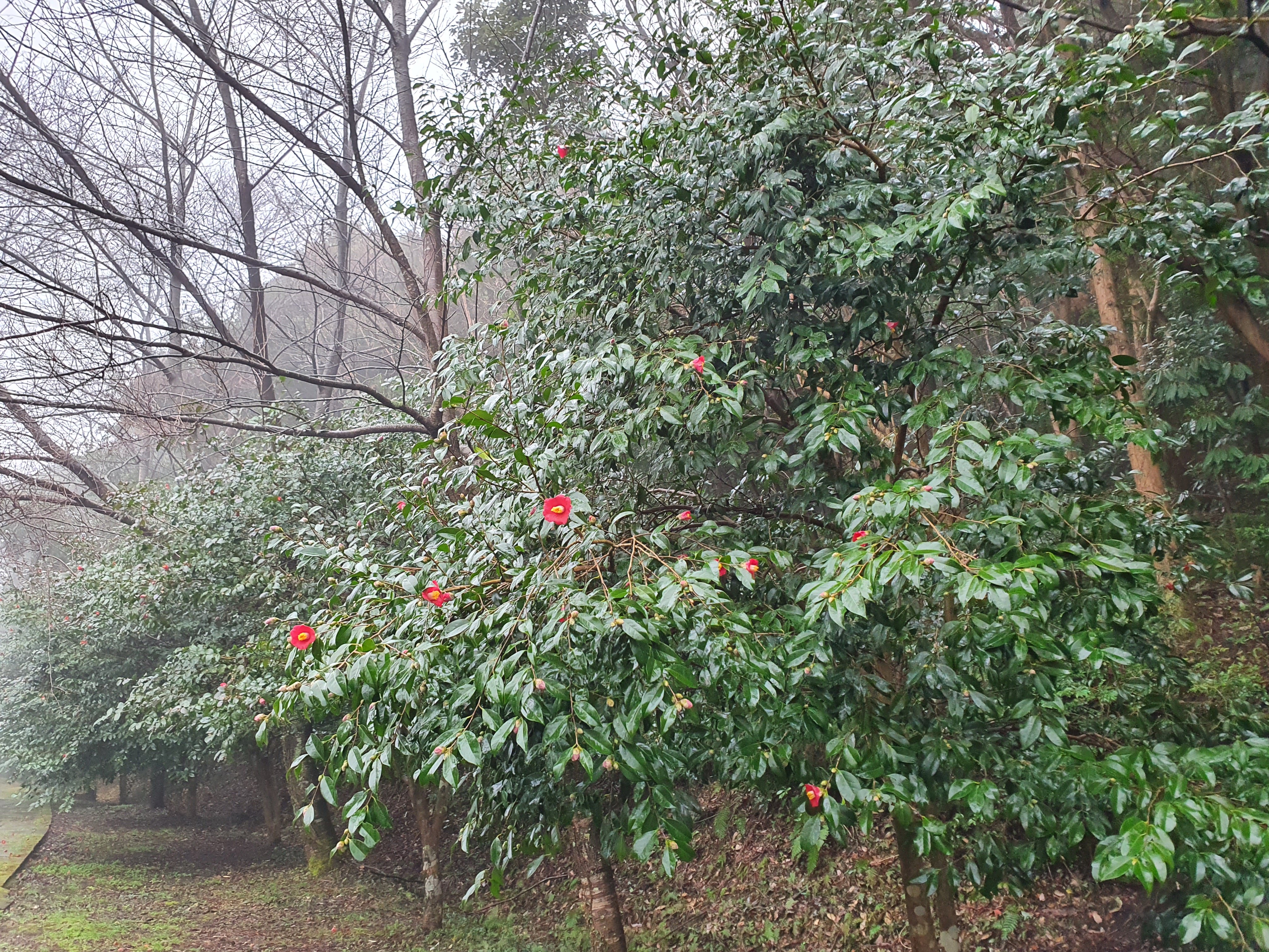 제주 토종 동백나무가 쪼로록 피어있는 풍경