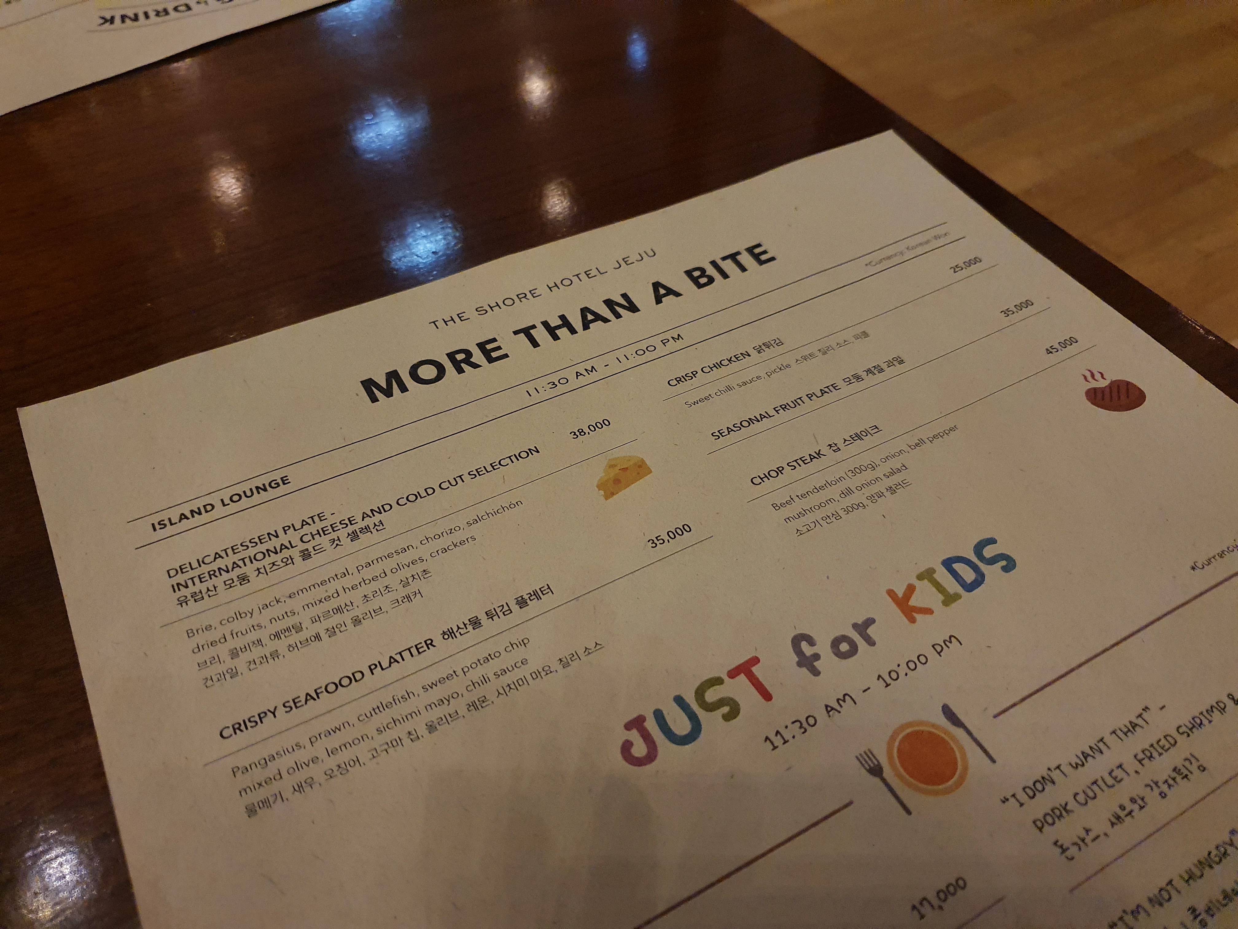 더 쇼어호텔 아일랜드 라운지의 메뉴