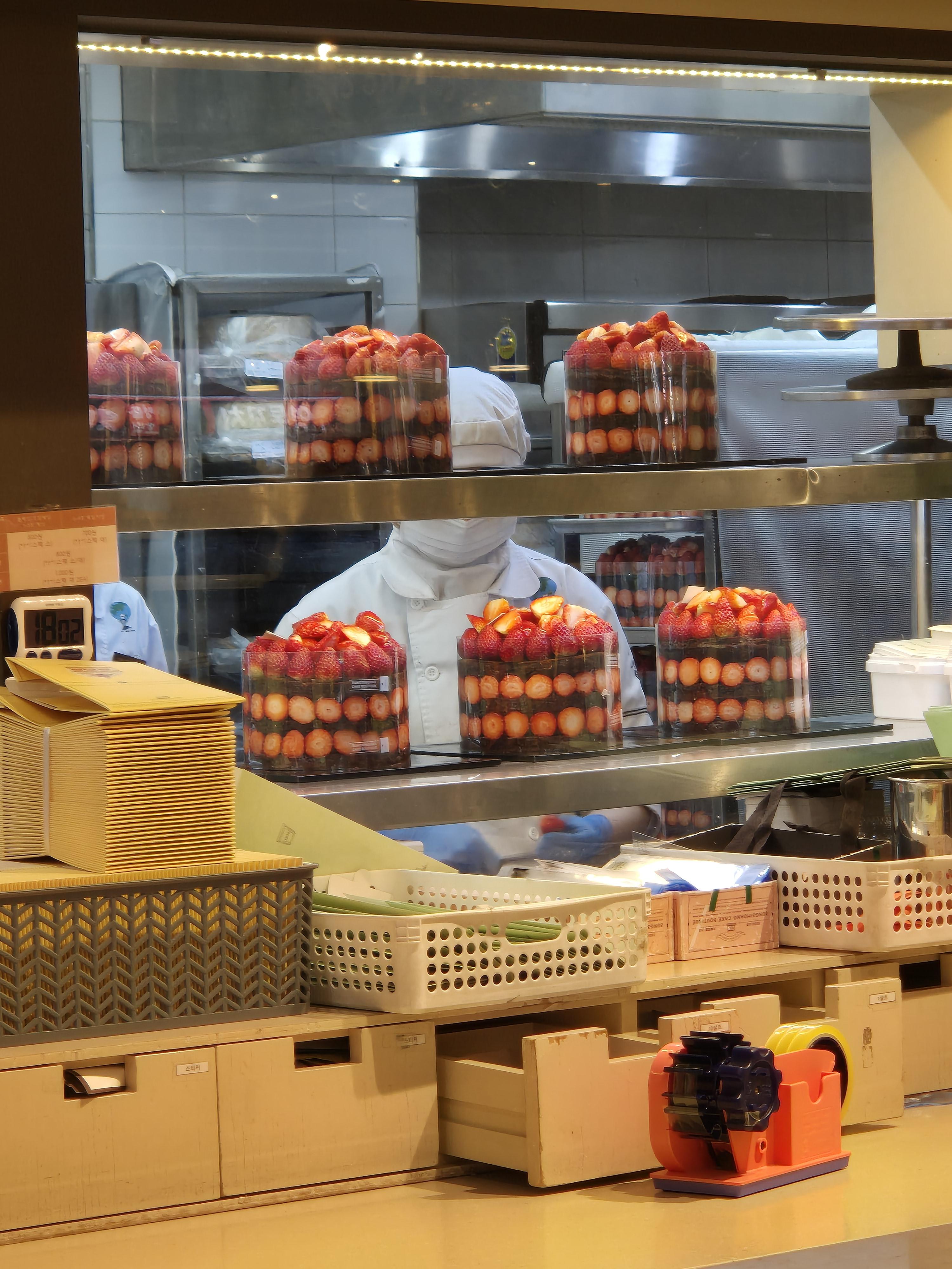 엉겁결에 딸기시루 케이크 구매에 성공해버리고 나니 그제야 주변이 눈에 들어오더라고요. 성심당 케익부띠끄 본점에서는 계속해서 딸기시루를 만들어내고 있었습니다. 주방은 마치 딸기시루 공장...