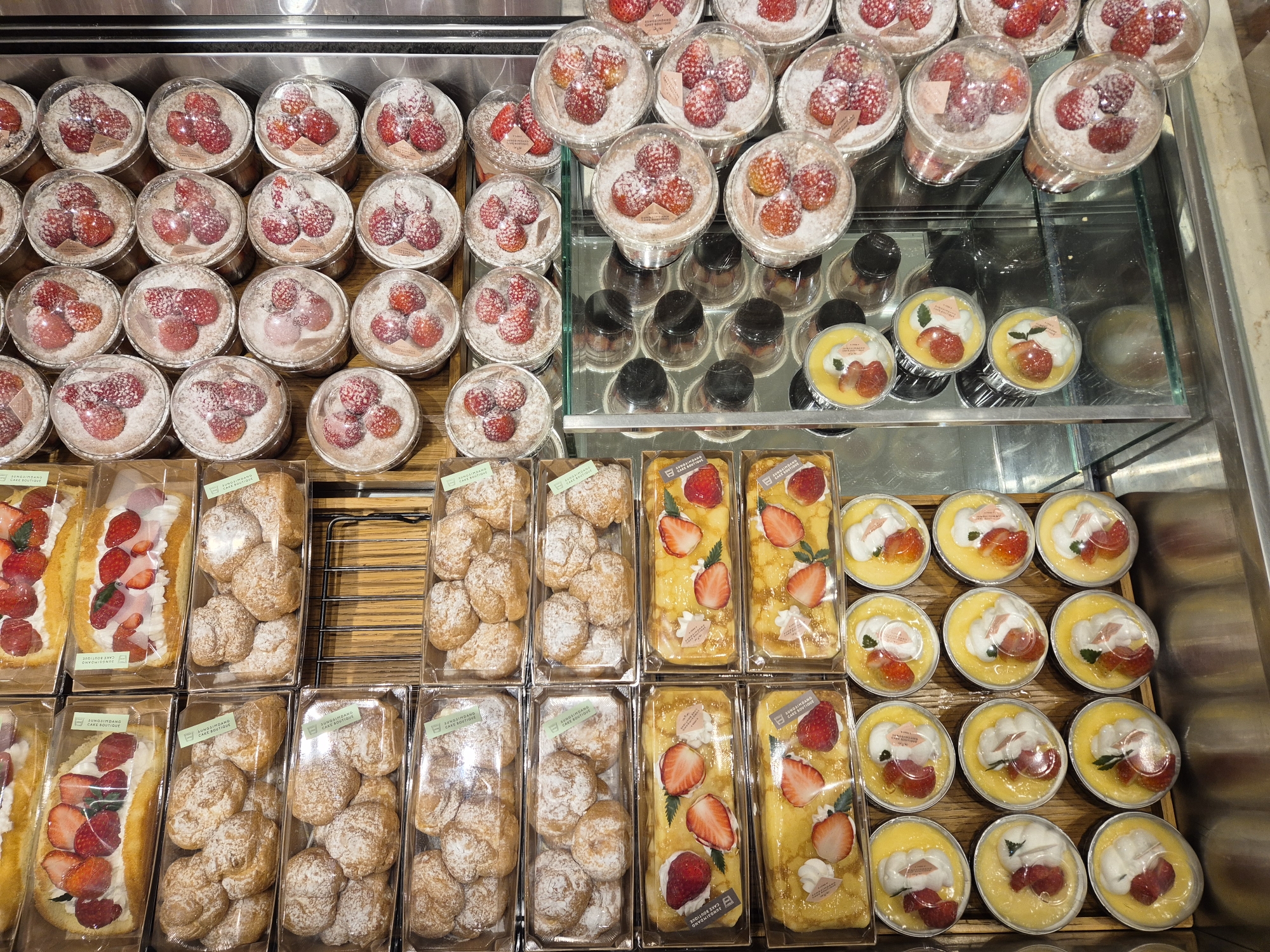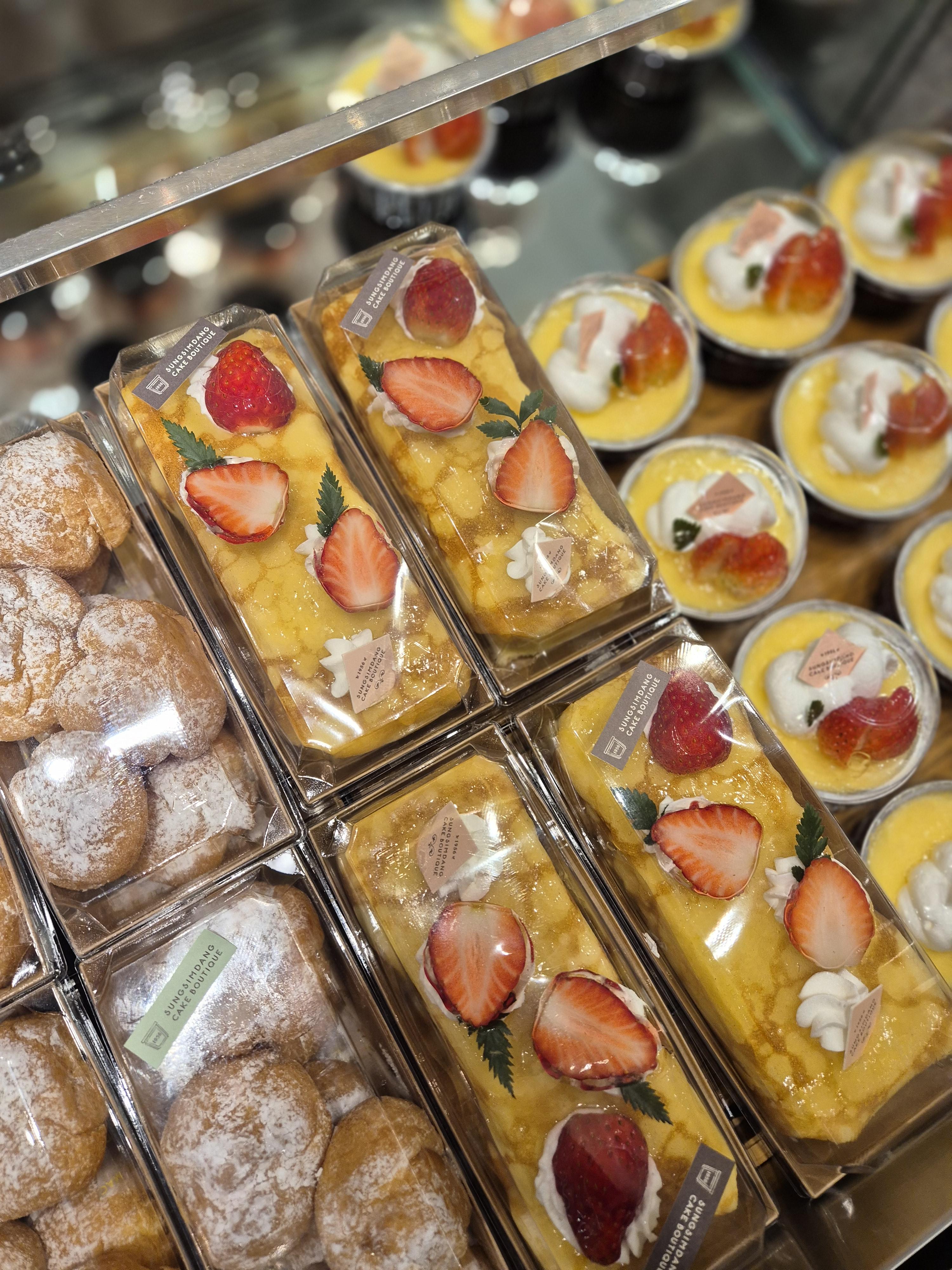제가 방문한 날은 평일 수요일이었고, 시간대는 오후 2시쯤? 성심당 본점에는 사람이 많았지만 부띠끄 매장은 조금 한산한 편이었어요. 케익 진열장에 딸기시루가 아름답게 전시되어있었지만, 케익 진열장 앞으로 사람들이 줄을 서있어서 아.. 역시 딸기시루는 못 사겠군..이라고 생각하고 혹시나 하는 마음에 직원분께