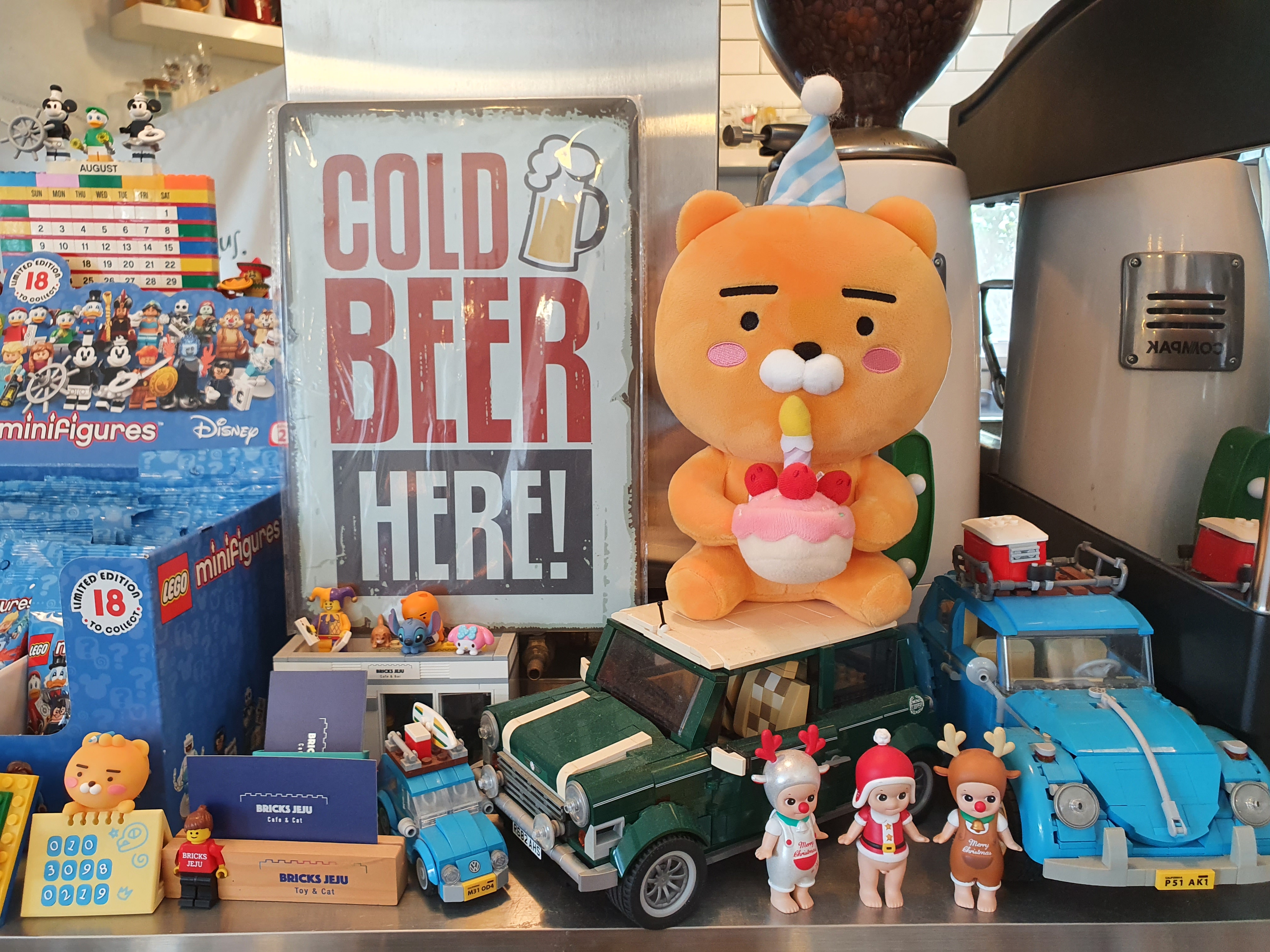 카페에서 잘 보이는 카운터에 인형을 놓아두고