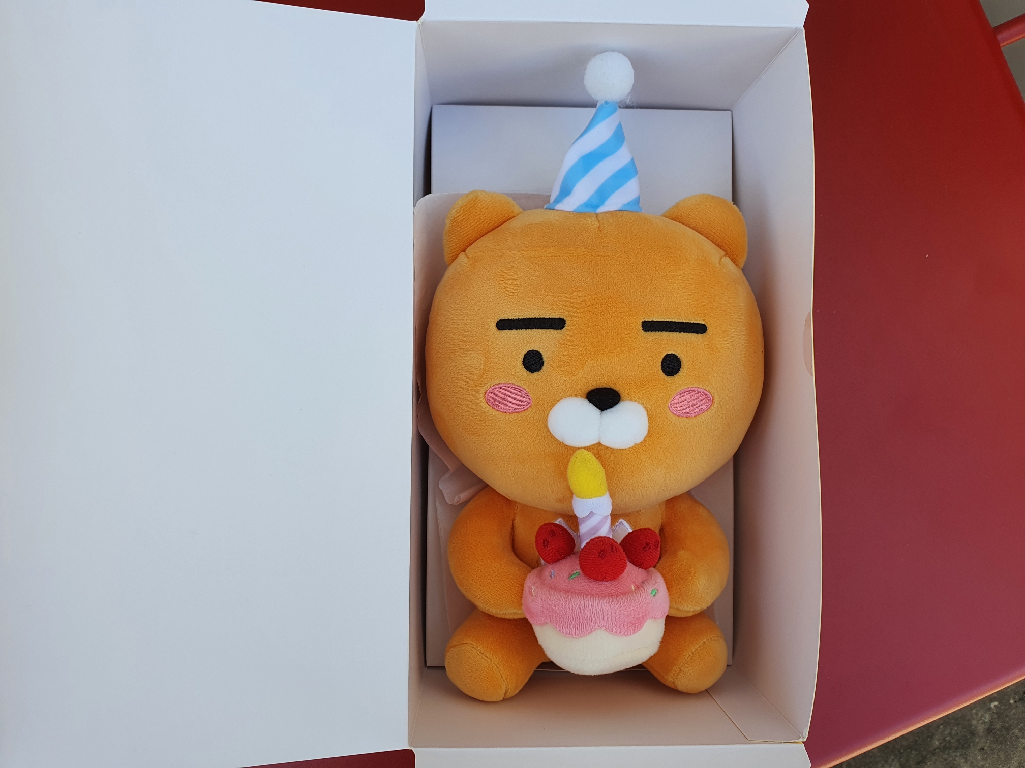 노란 상자 안에 케익을 들고 귀엽게 들어가있는