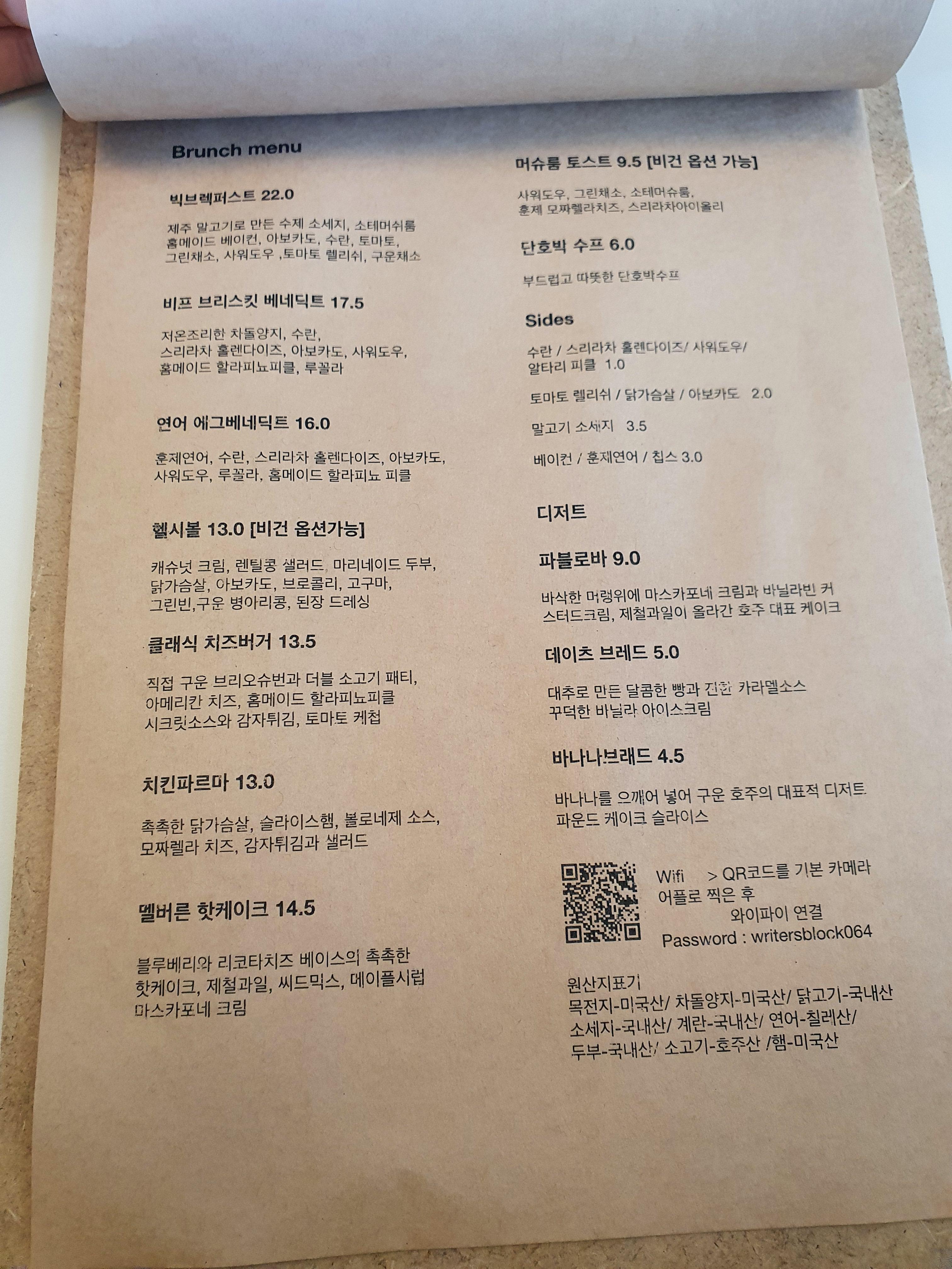 라이터스 블럭 메뉴판