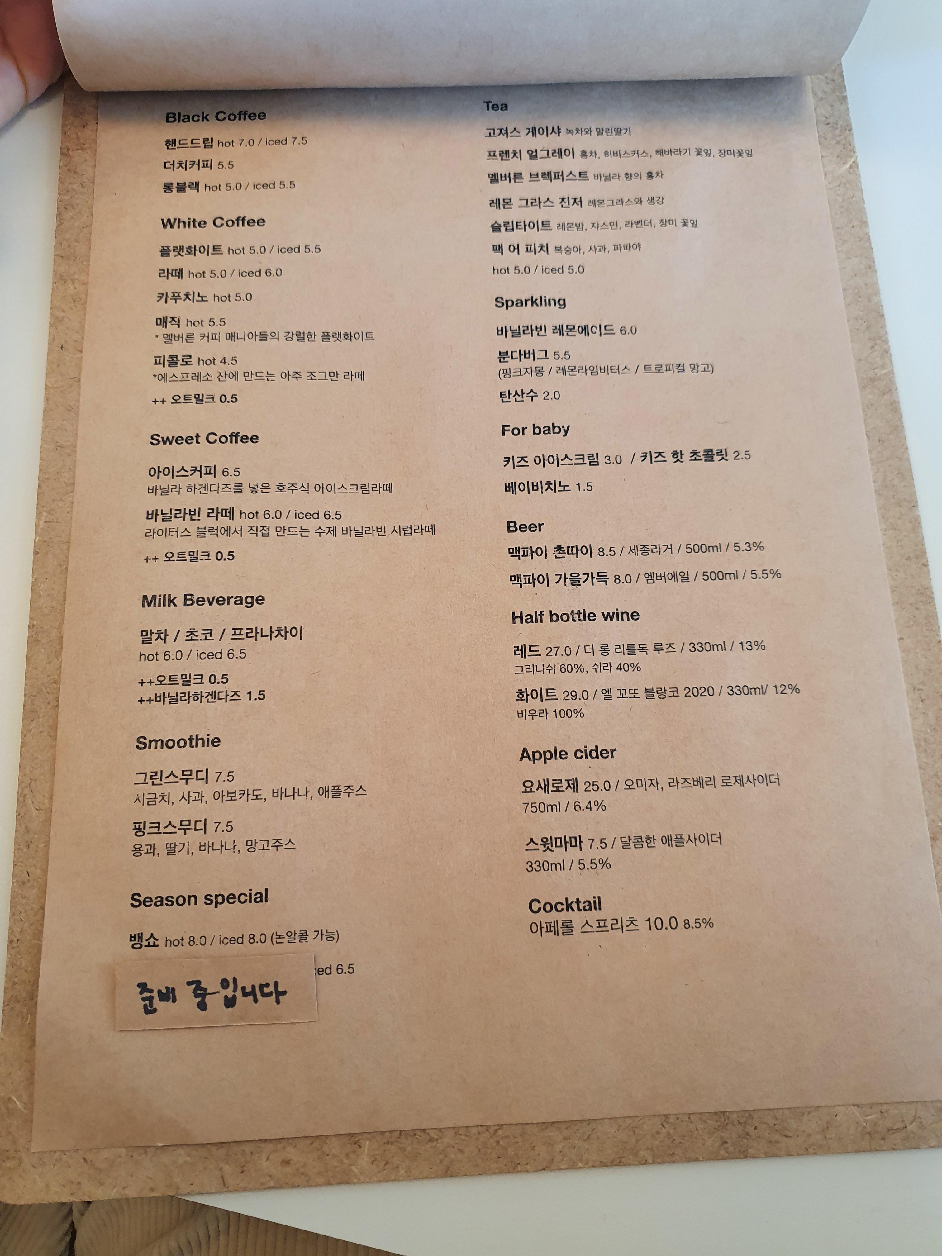 카페 메뉴도 제법 많아서