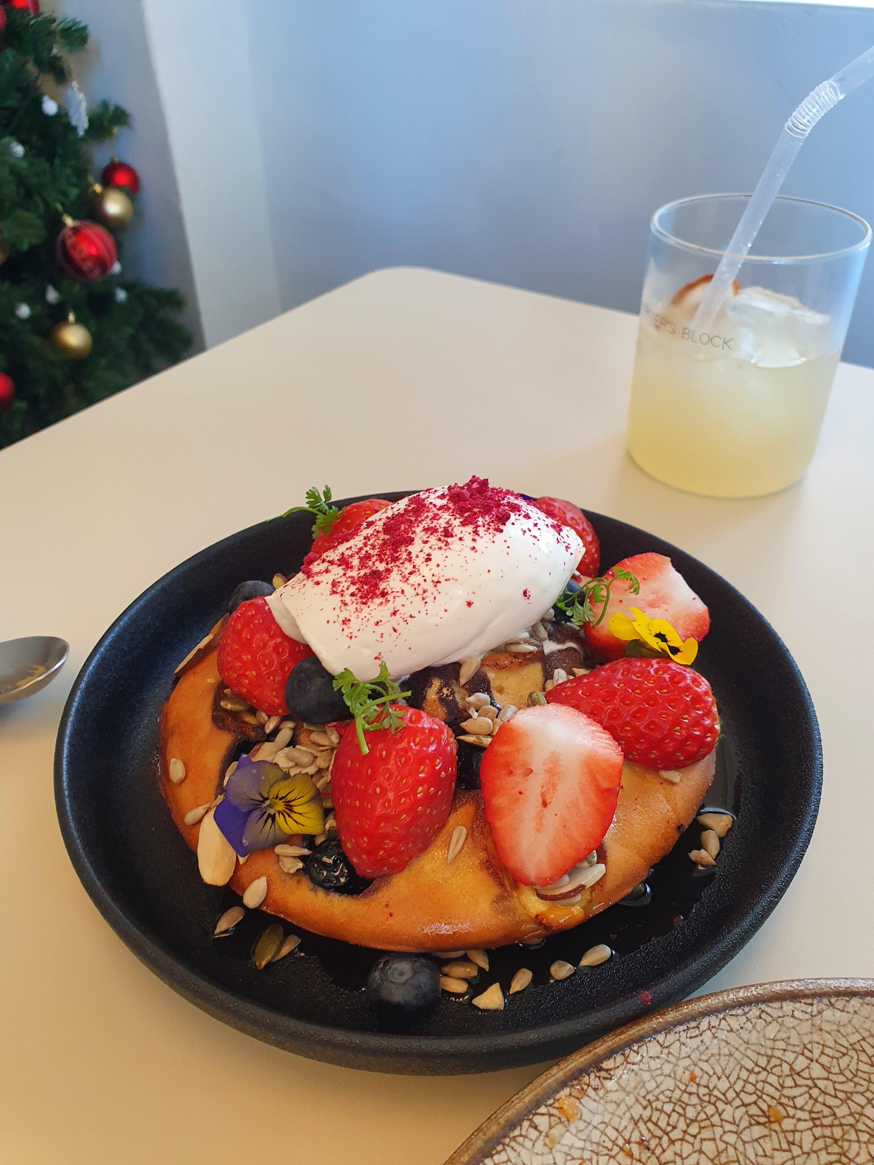 퍽퍽하지 않고 촉촉하고 부드러운 팬케이크였다.