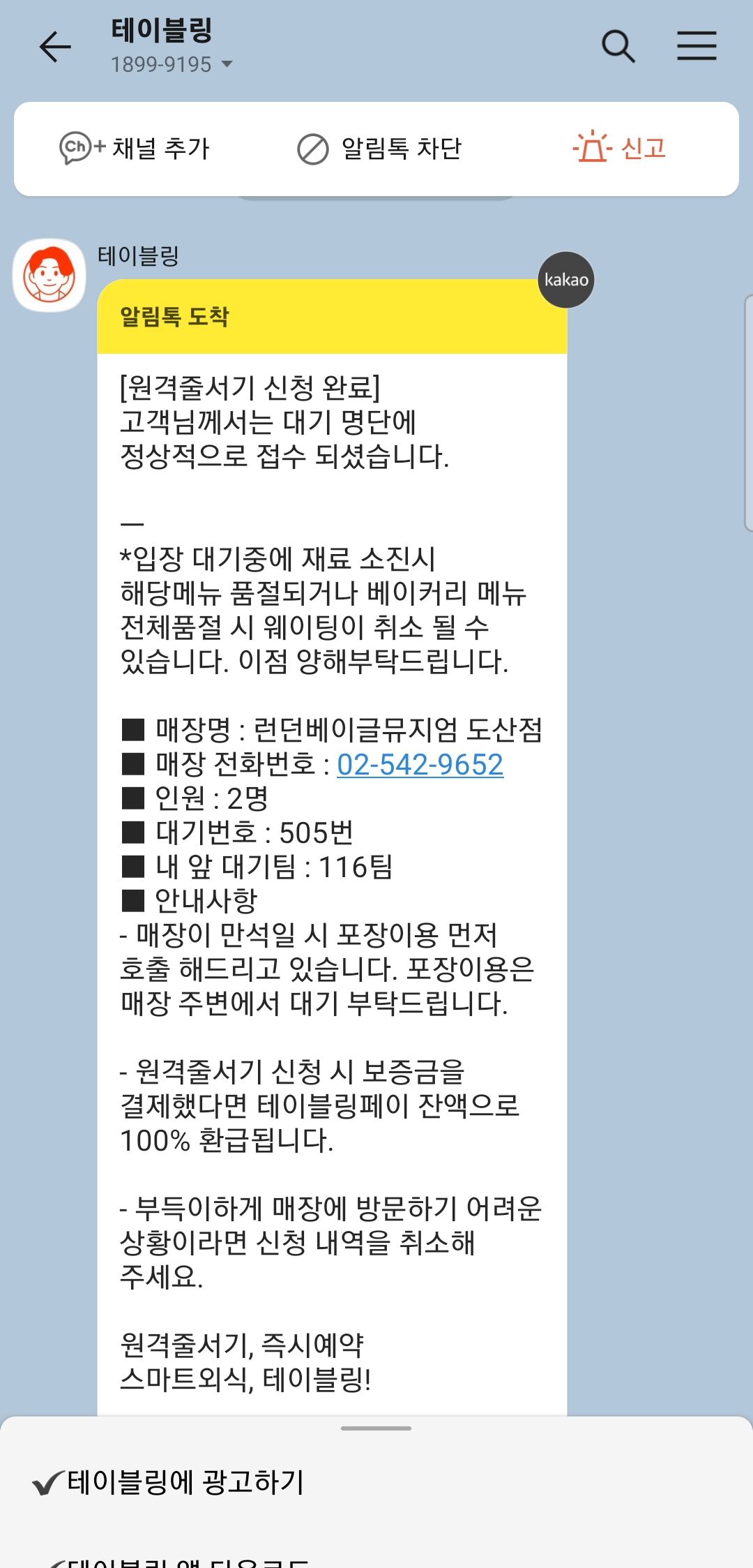 게다가 테이블링 어플로 원격줄서기도 가능!!!!