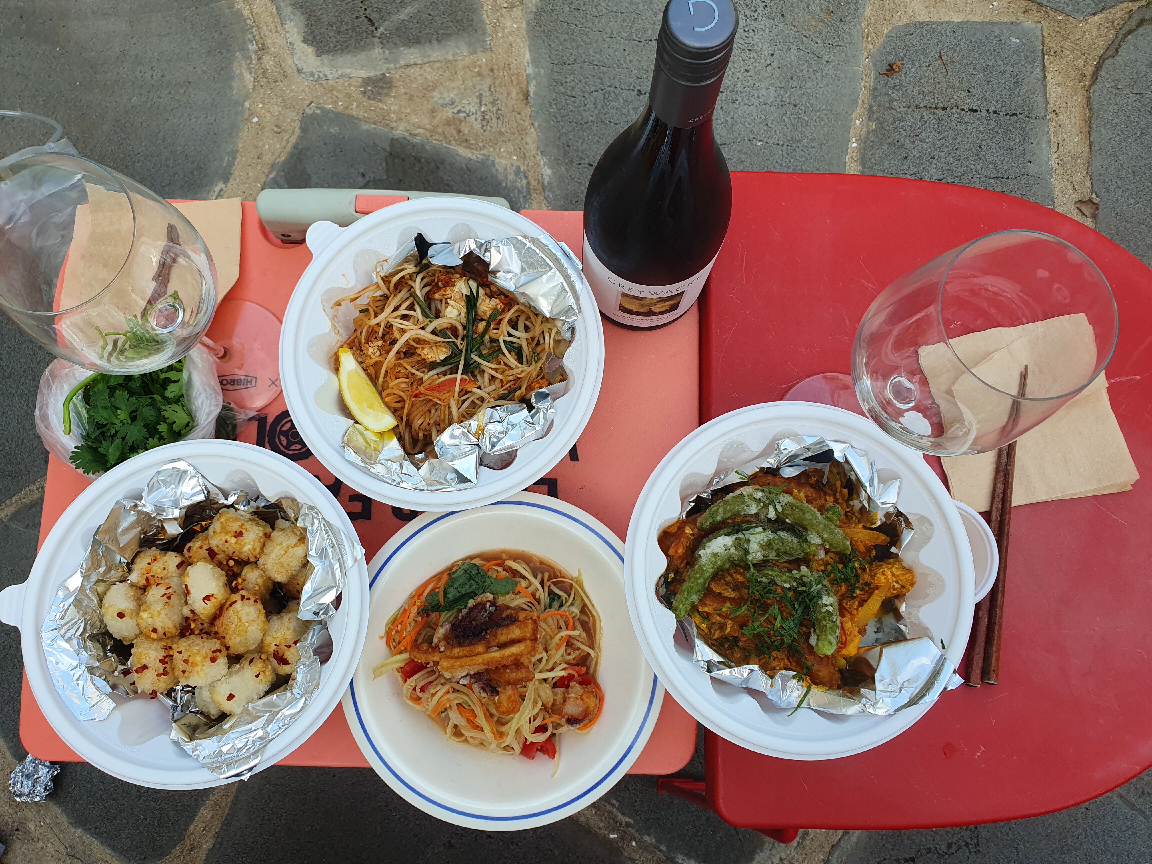 음식을 포장해서 나오는 길