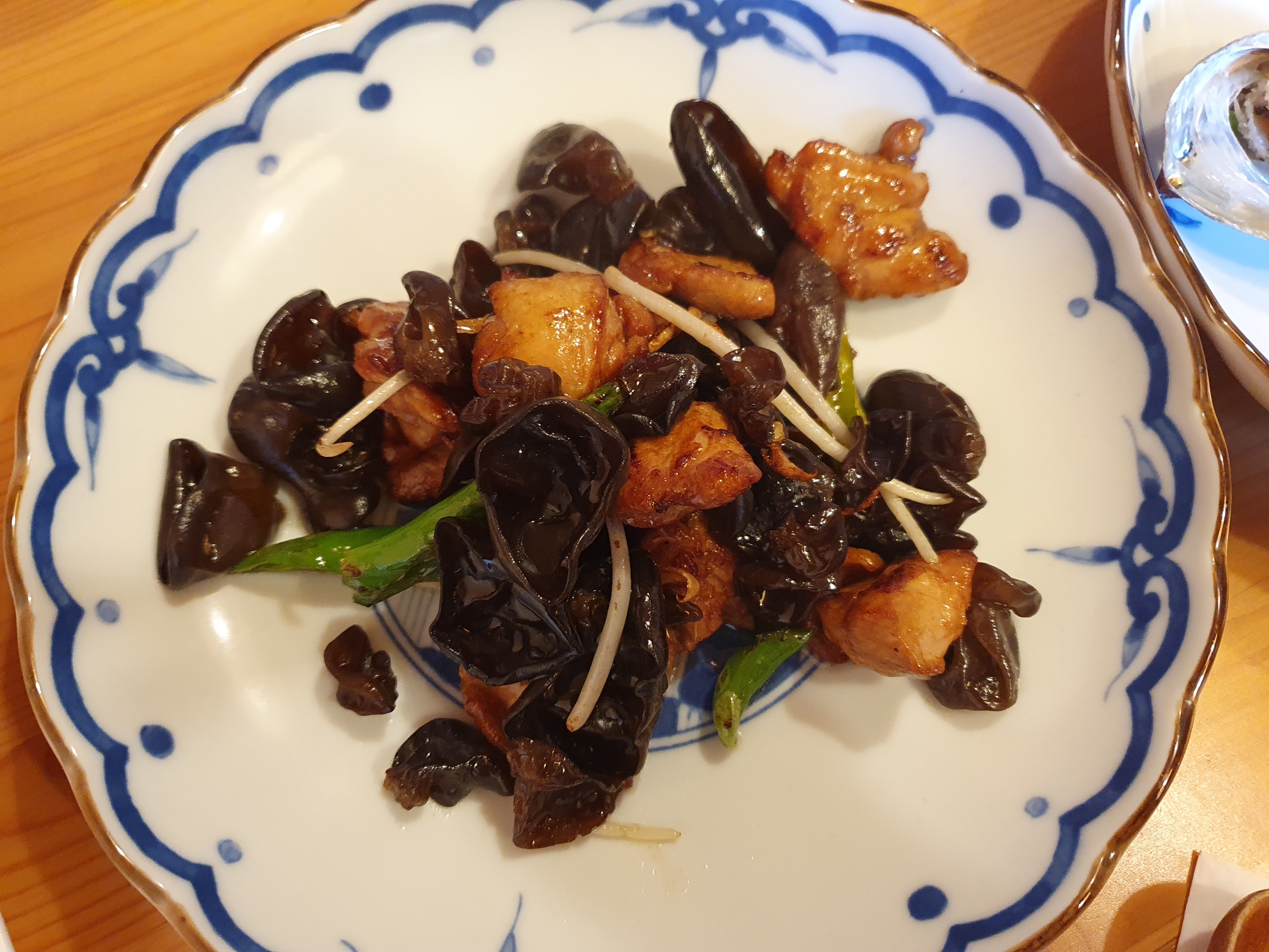 간장 베이스의 닭다리살과 목이버섯 볶음
