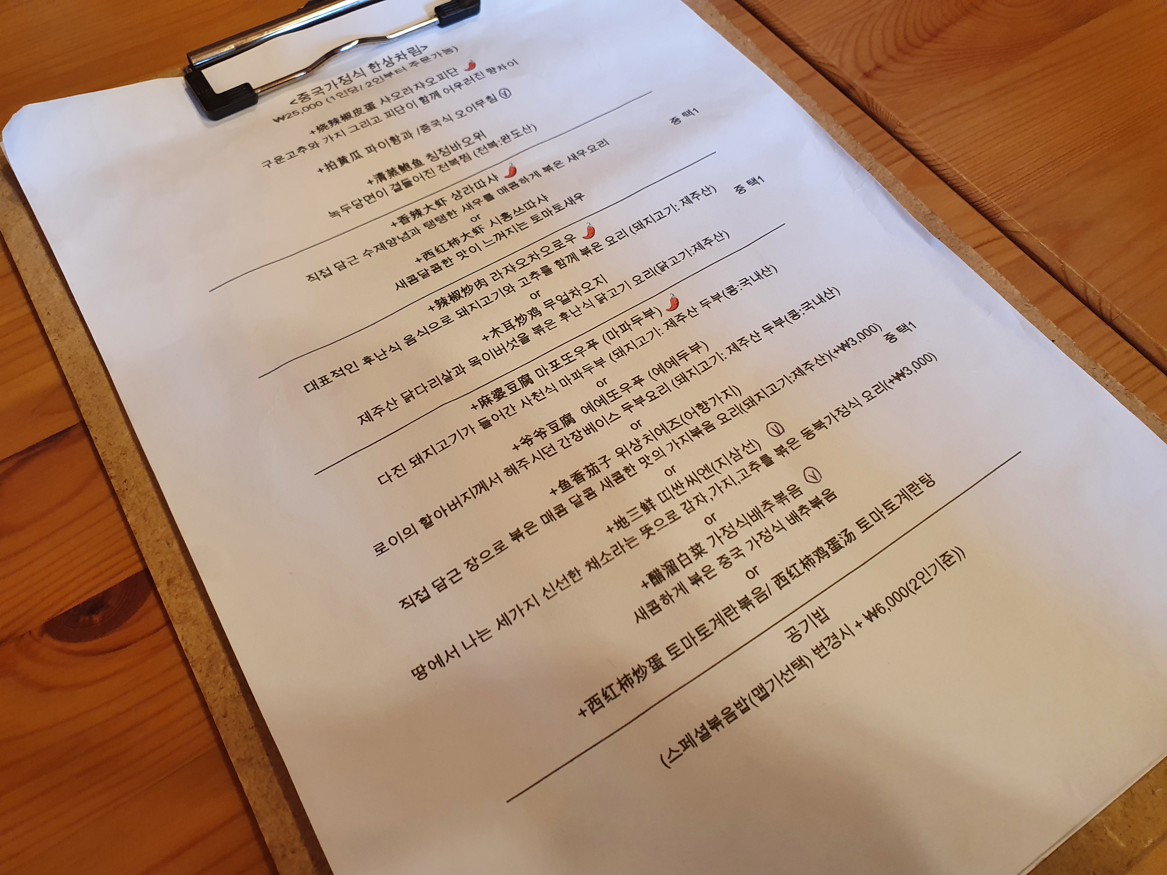 중국 가정식 코스요리를 선택했고