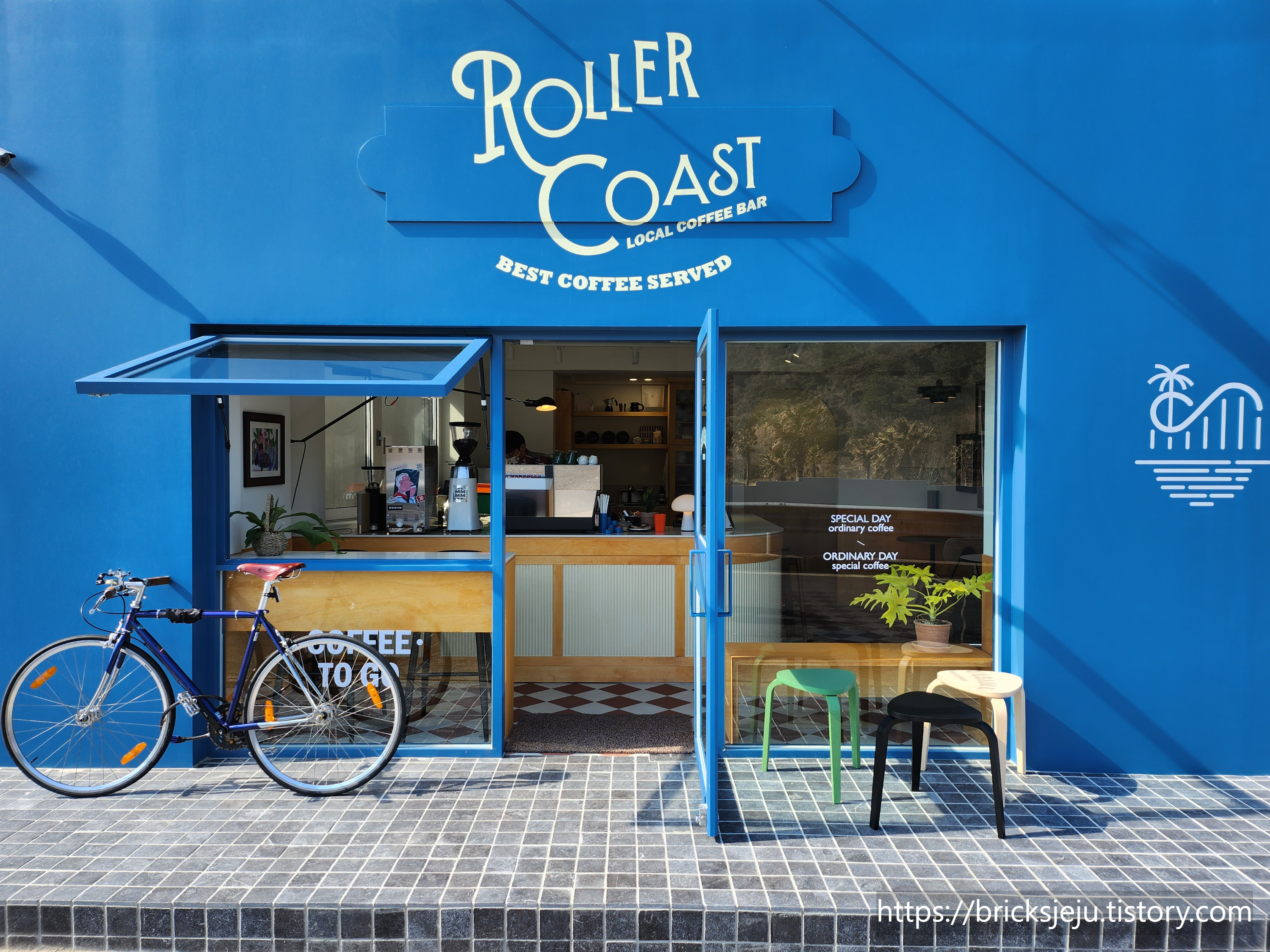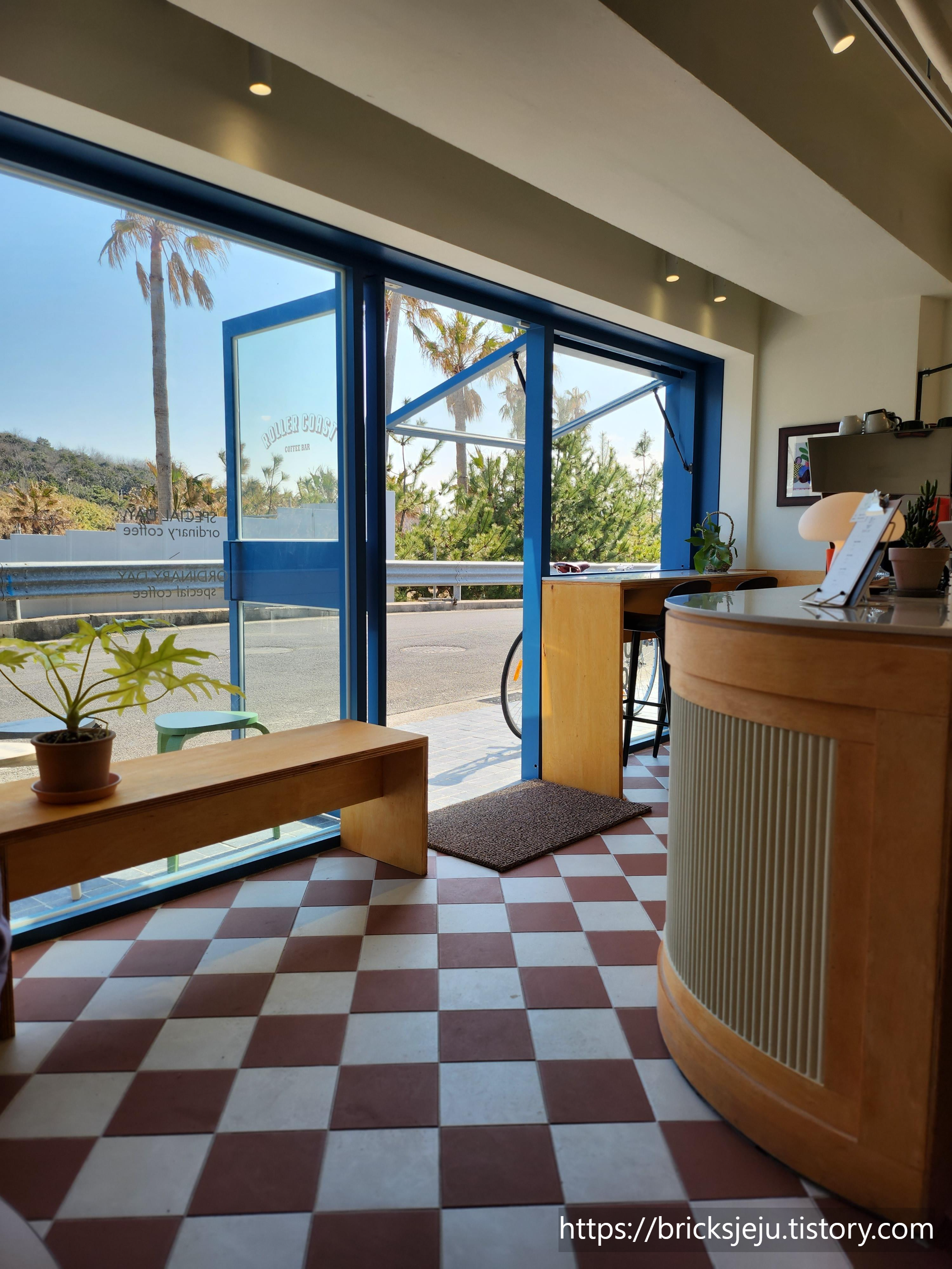 커피가 준비되는 동안 매장 인테리어를 구경했다. 아치형의 입구도 그렇고, 요즘 카페 인테리어 바닥은 이런 모양이 유행인지 최근에 다녀온 신상 가게의 바닥도 롤러코스트의 인테리어와 동일했었다.