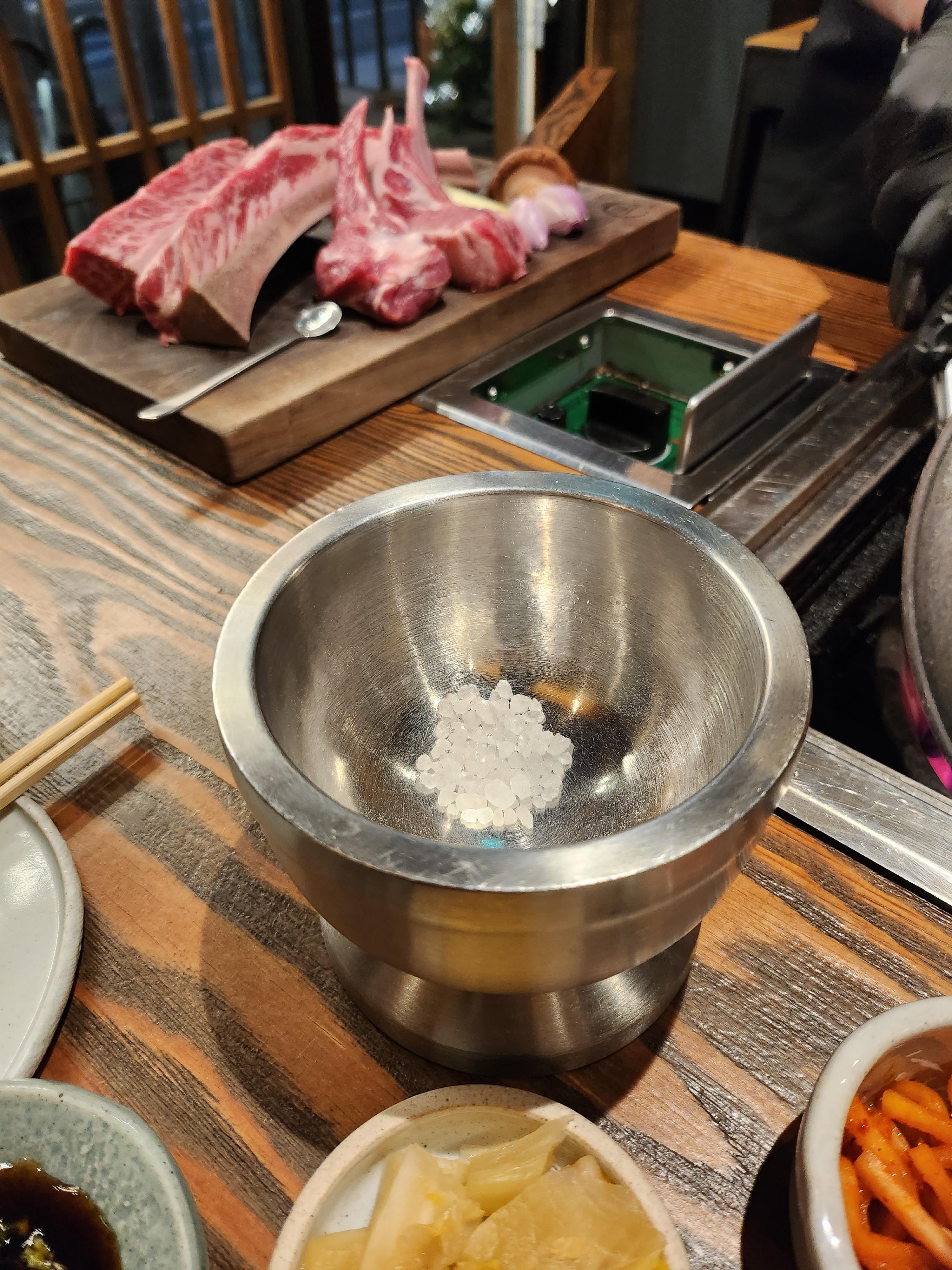 눈 앞에서 소금을 갈아 그릇에 셋팅해주셨다.