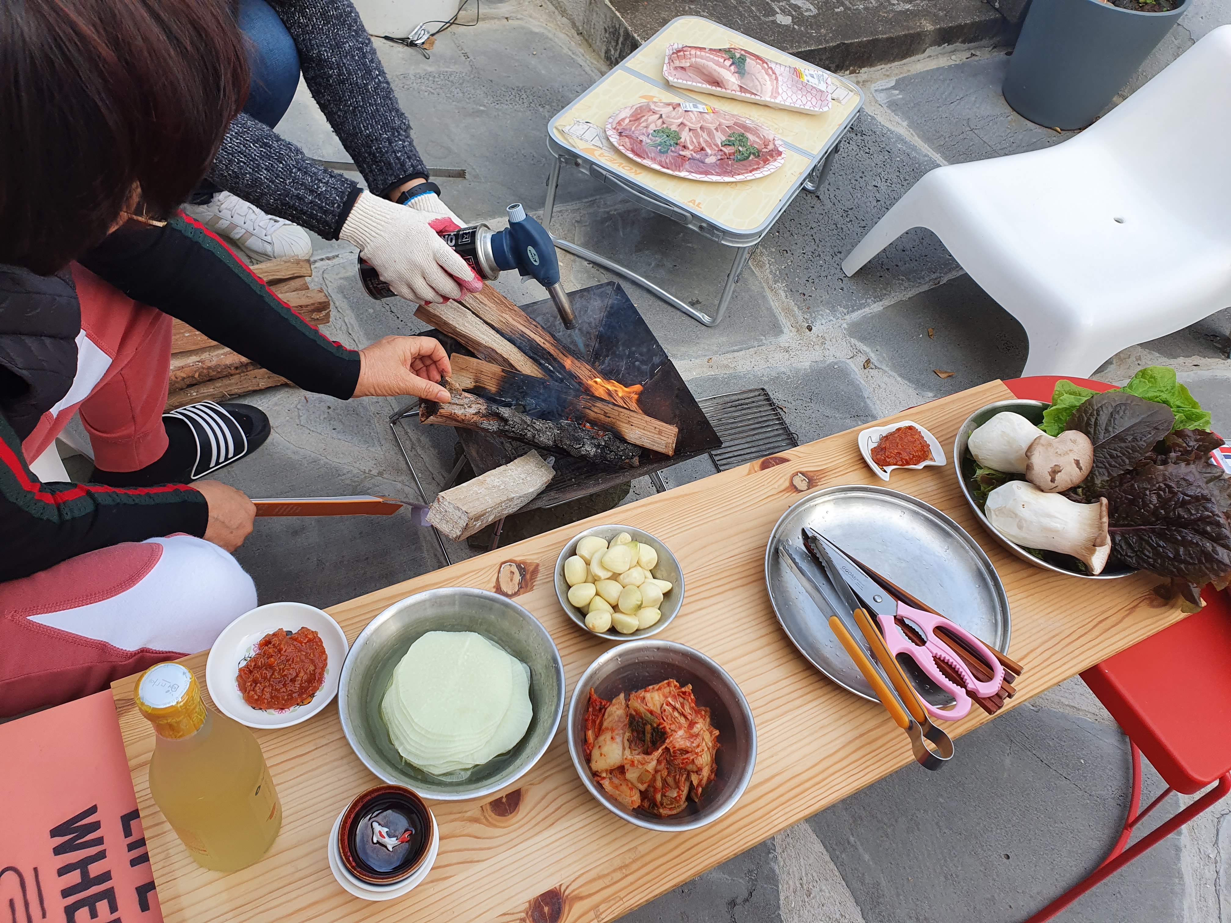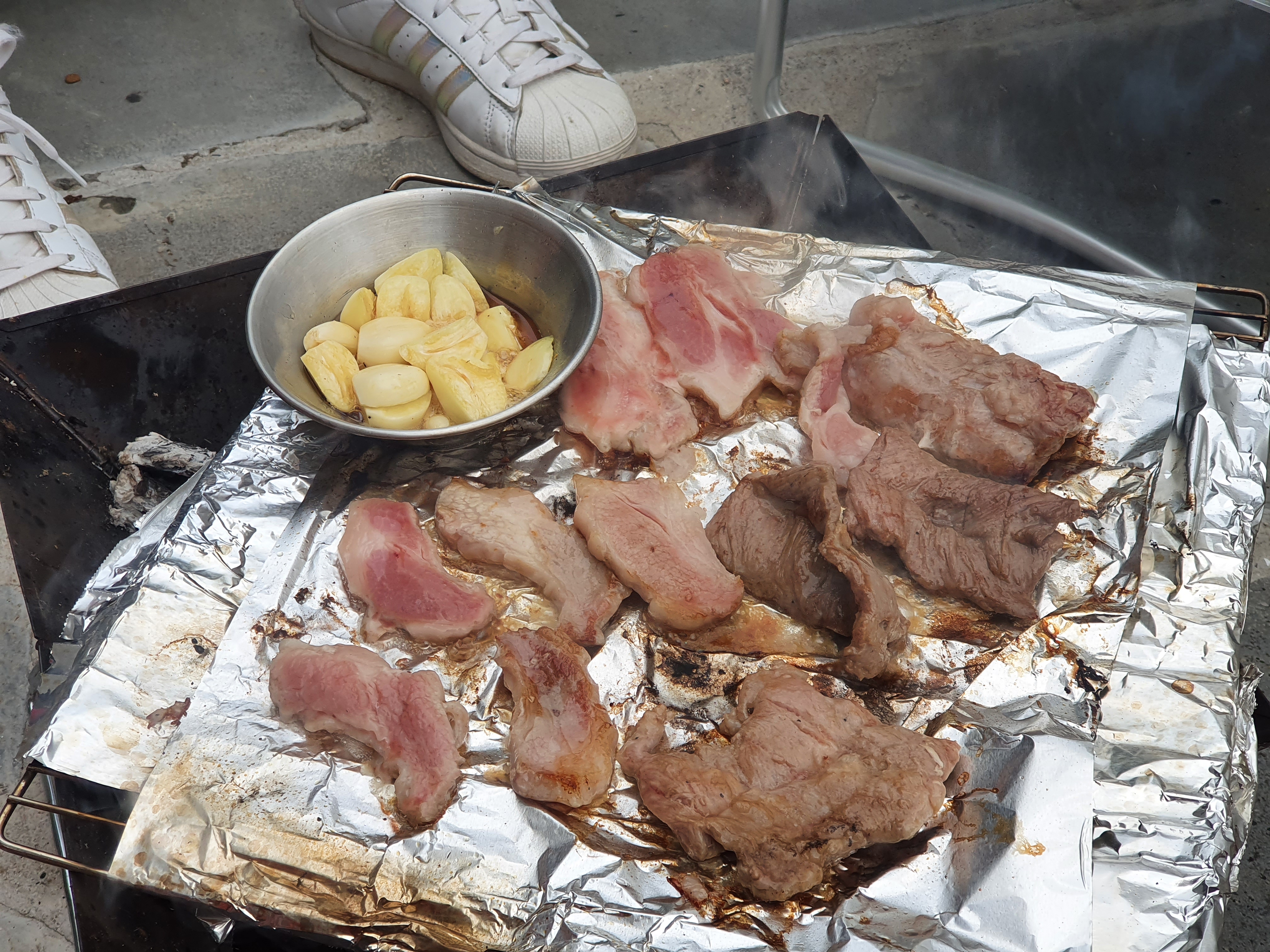 불안하고, 해서 마당에서 바베큐를 하기로 했다