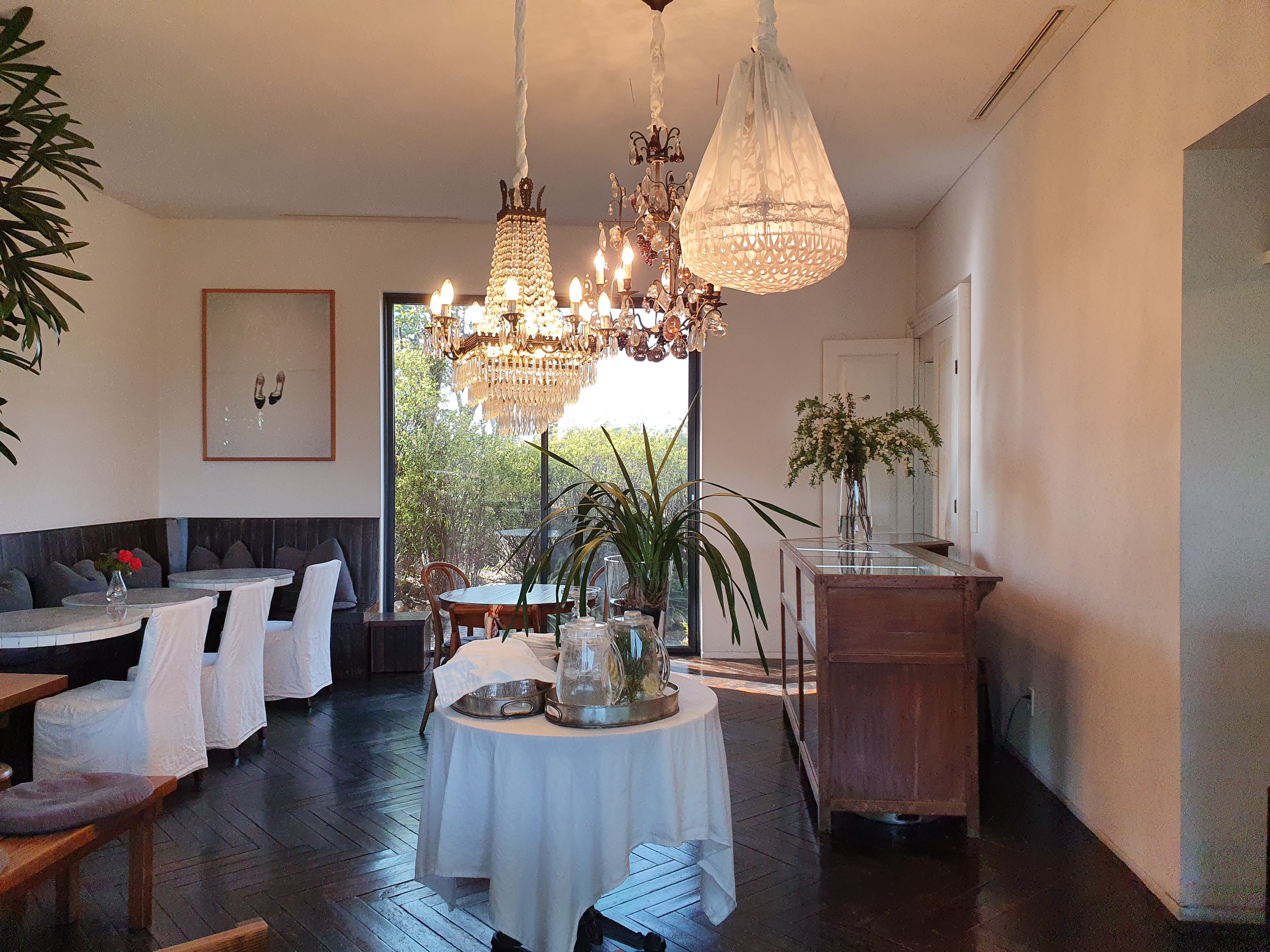 나무 테이블과 곳곳에 놓여진