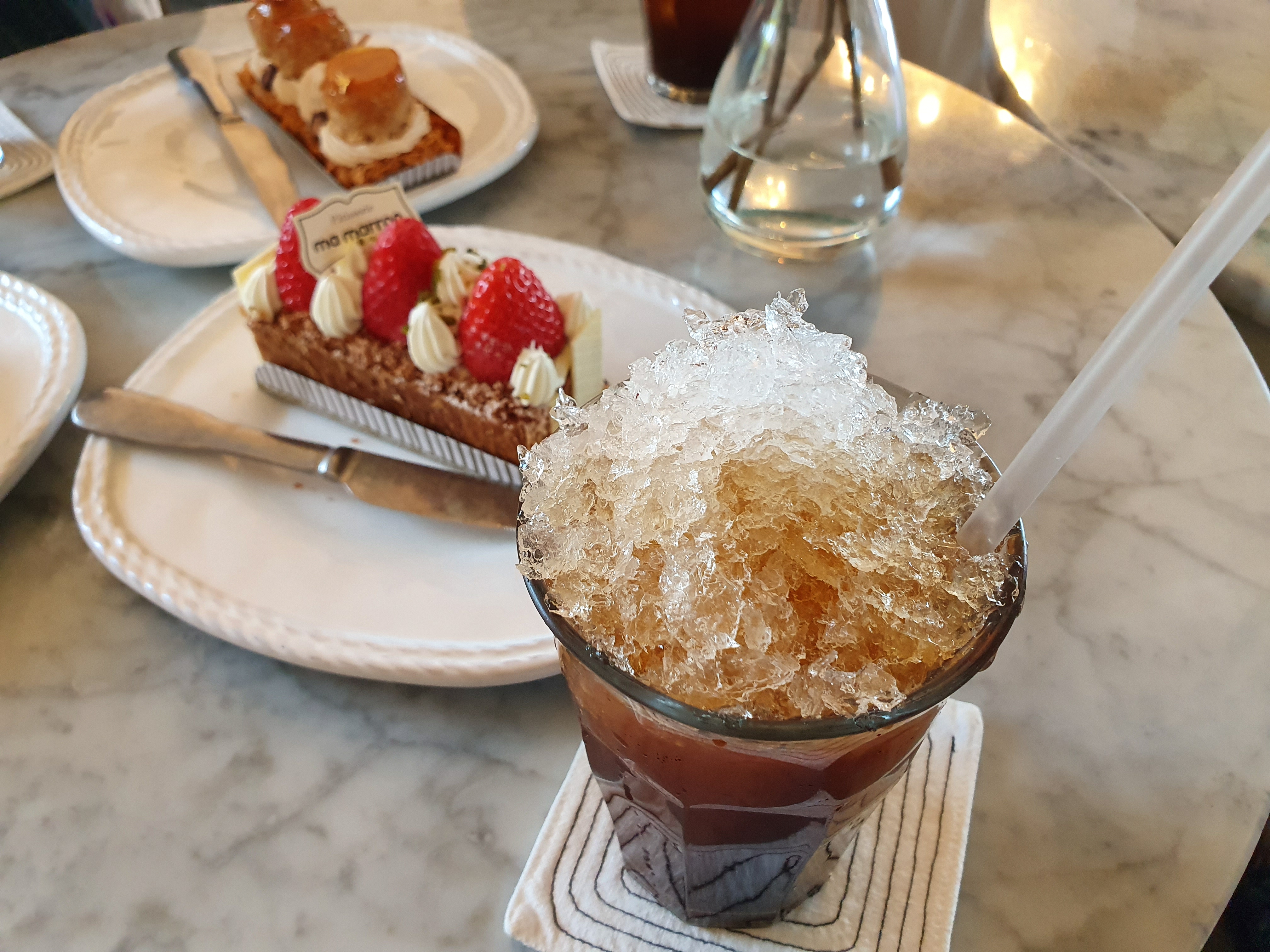 음료는 보숭보숭 얼음이 가득 올라간