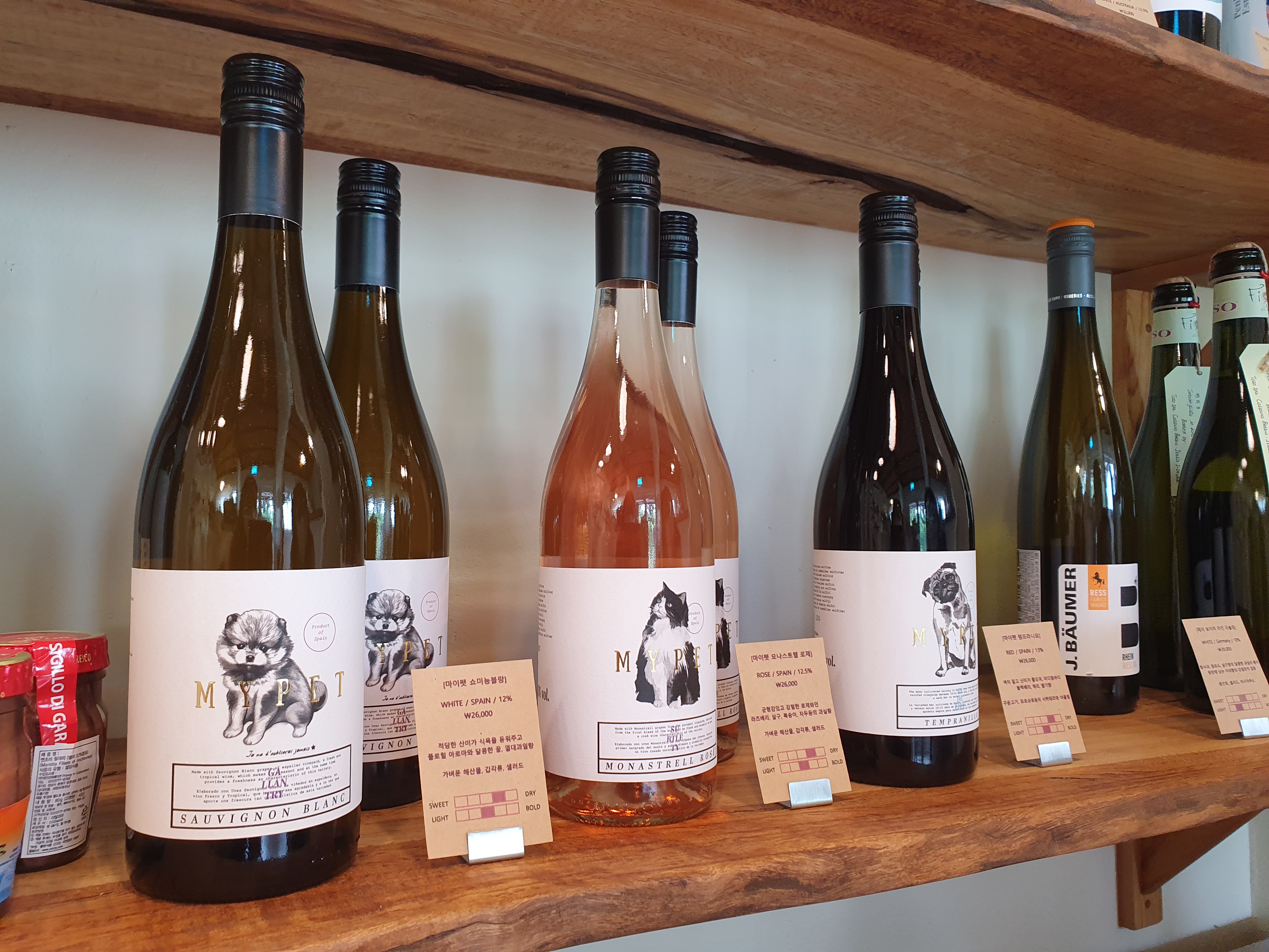 귀여운 고양이그림이 그려진 와인을 한병 구매했다