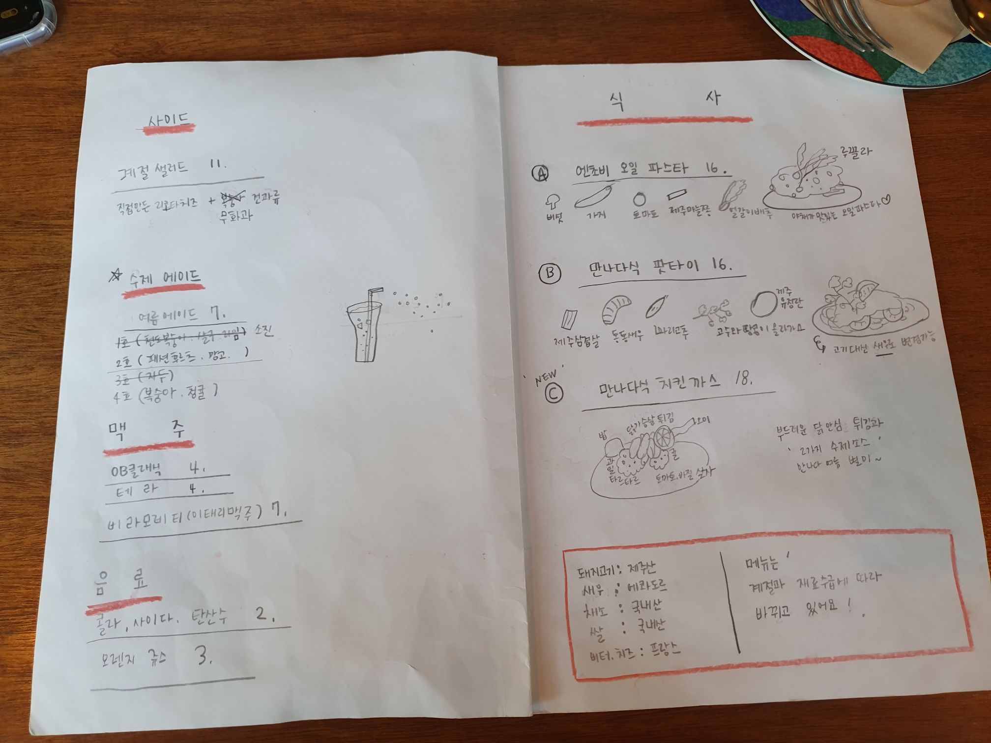 치킨까스와 엔쵸비파스타 등을 판매하는 식당이었다