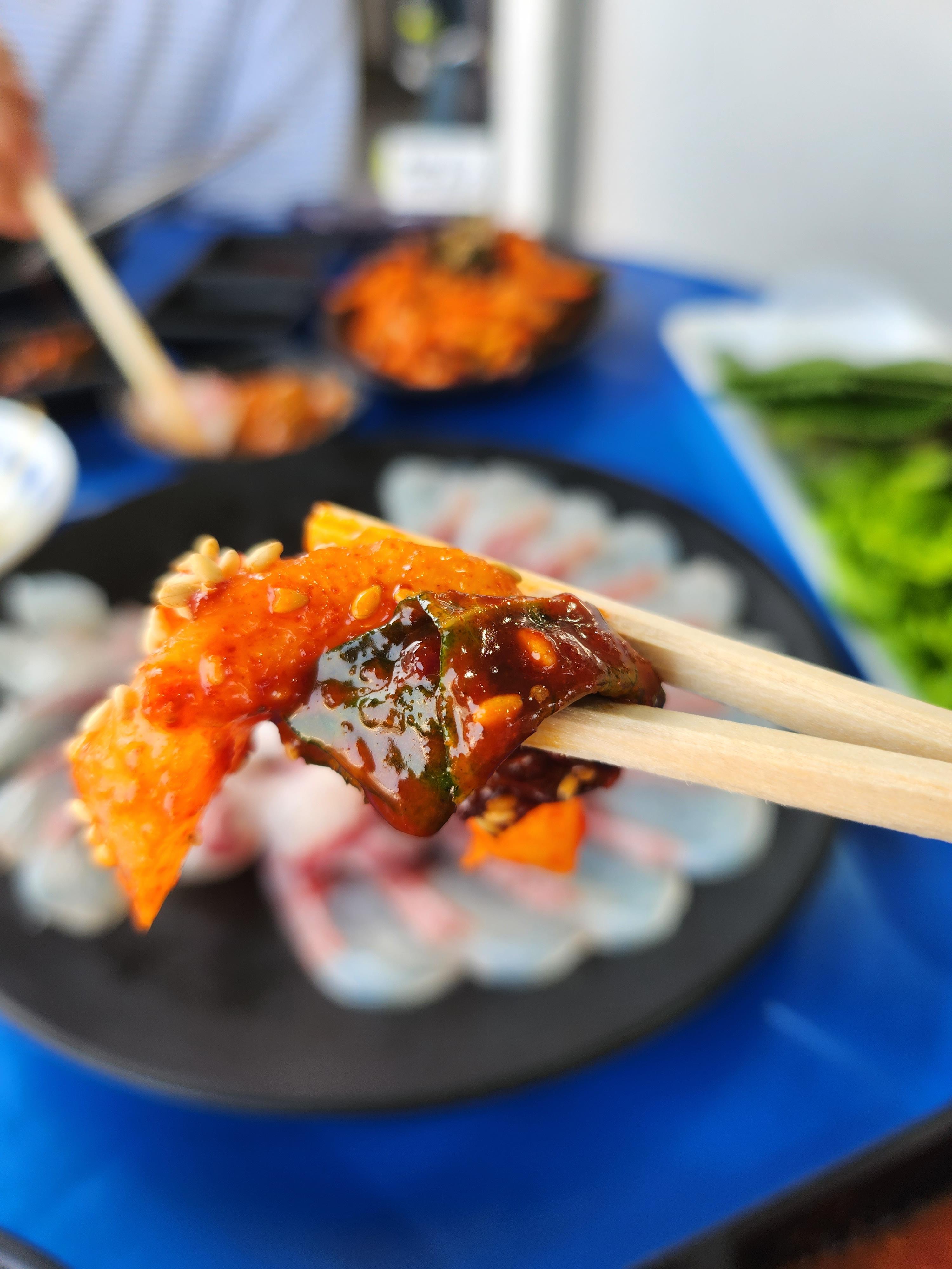 그리고 이 곳의 킥은 회무침입니다. 주방 이모님 손맛이 정말 뛰어나셔서 양념을 기가막히게 하시더라고요. 이 글을 가을에 보신다면, 가을 전어 회무침 꼭 드시기를 바라고요!