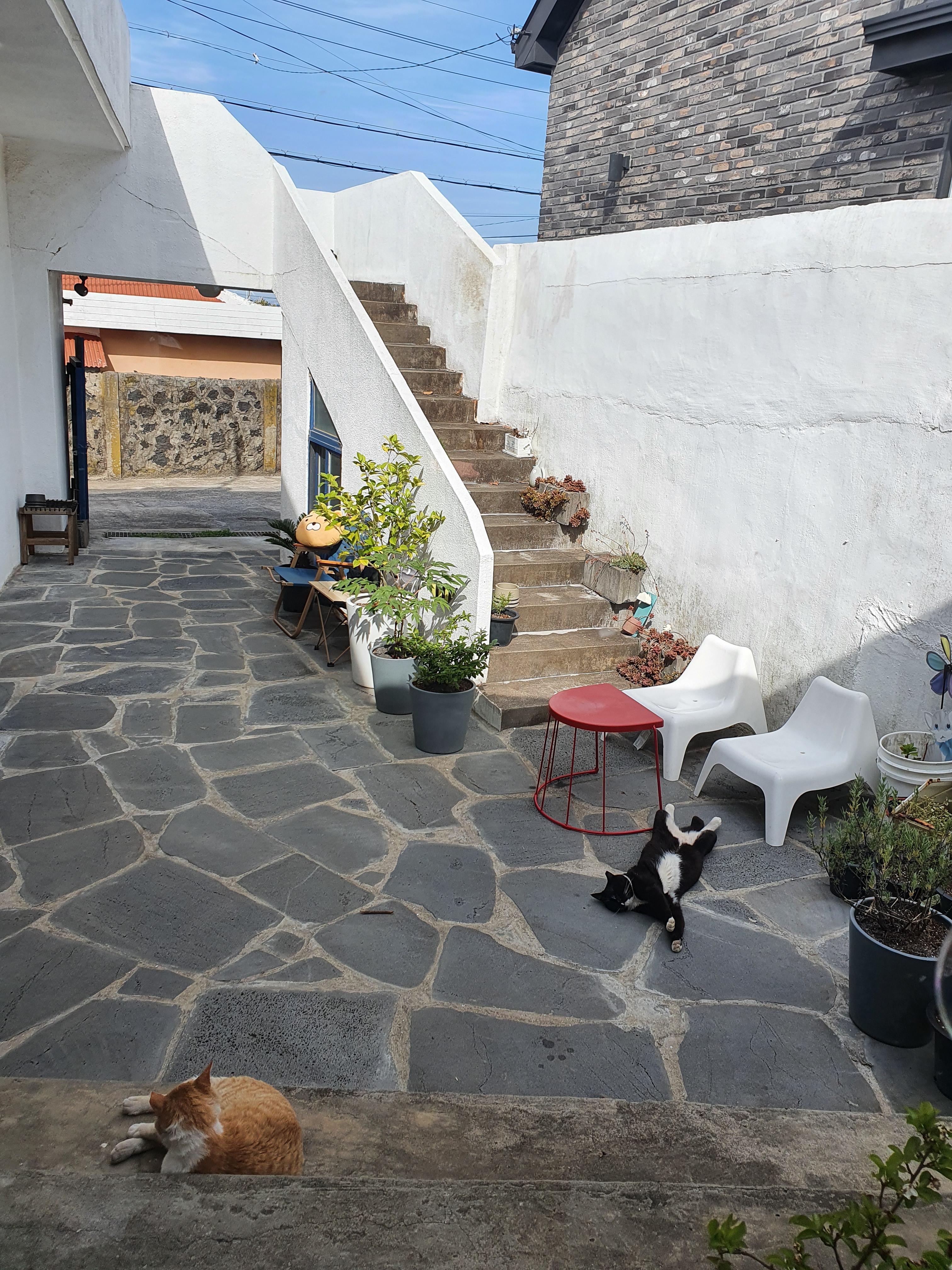 브릭스제주 카페 입구에서 늘어져 있는 사진을