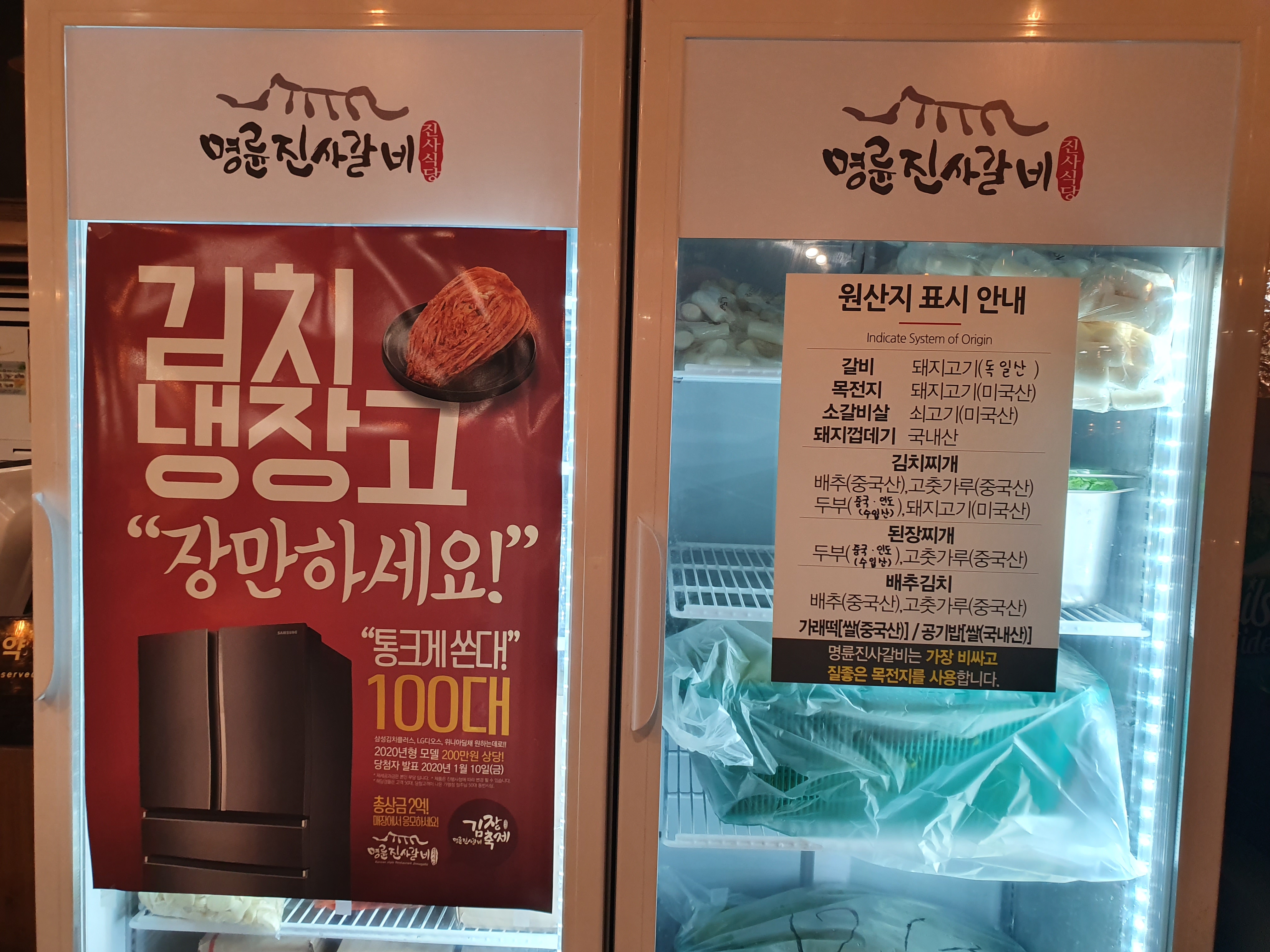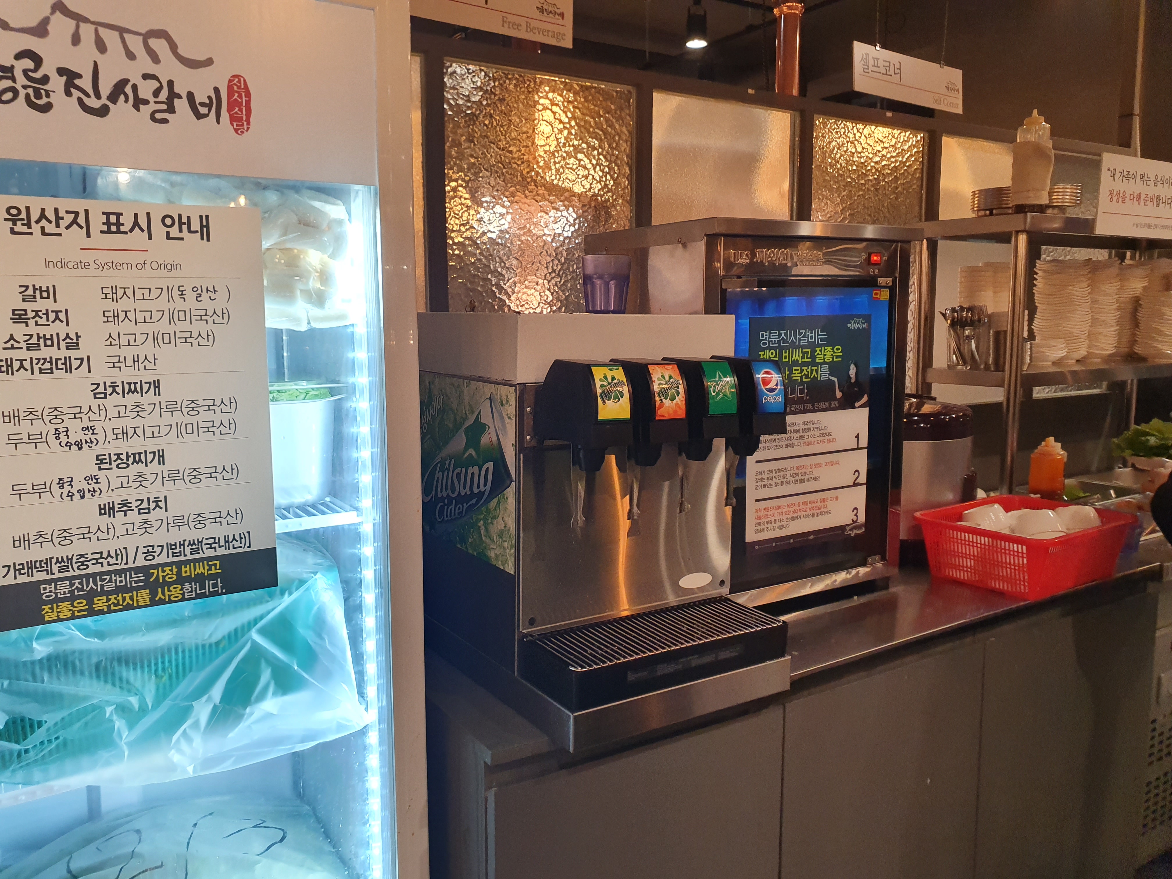 명륜 진사갈비의 원산지 표시 안내사항