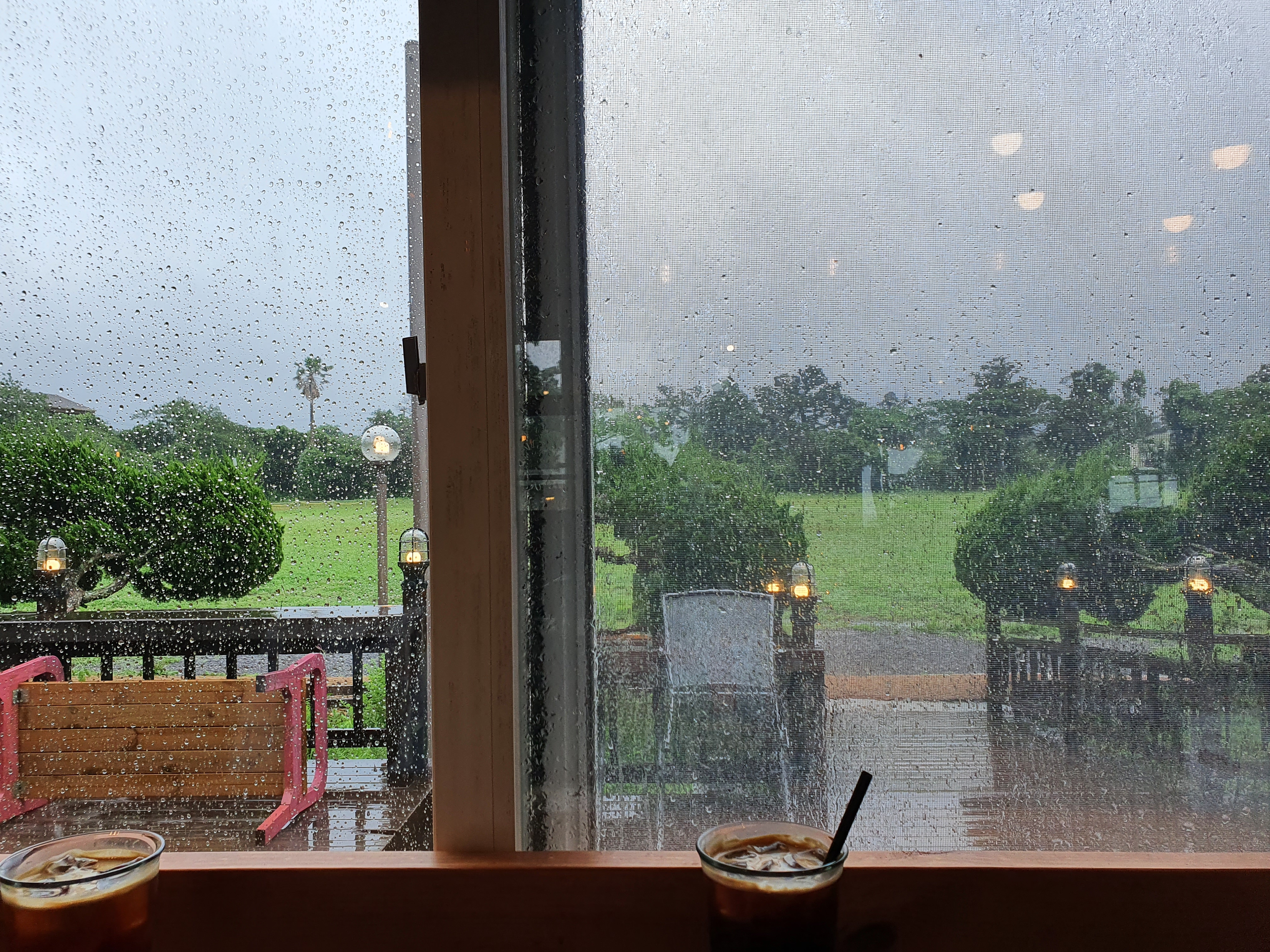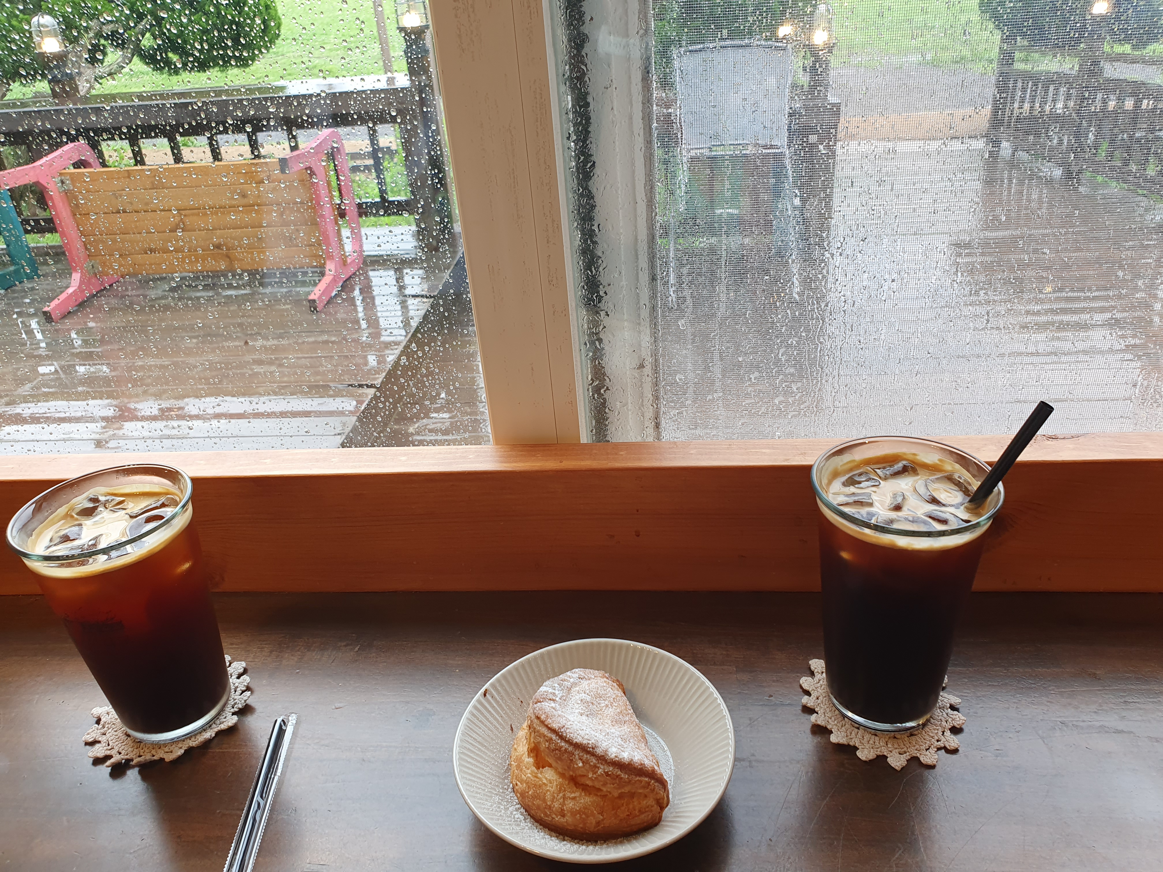 내리는 비를 보며 차를 마시기 좋았다