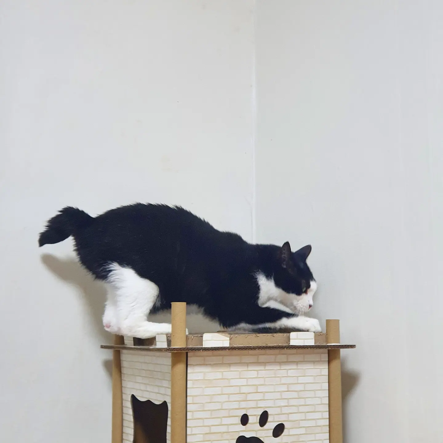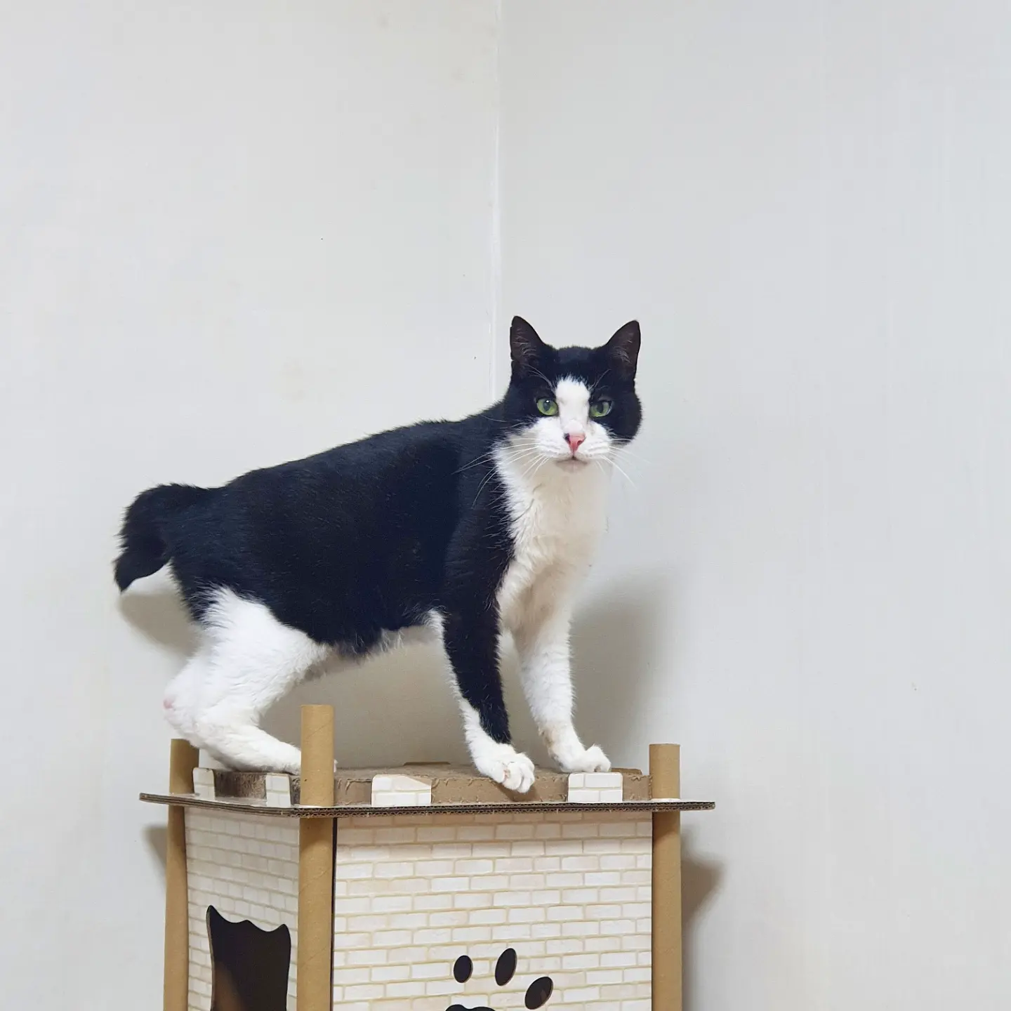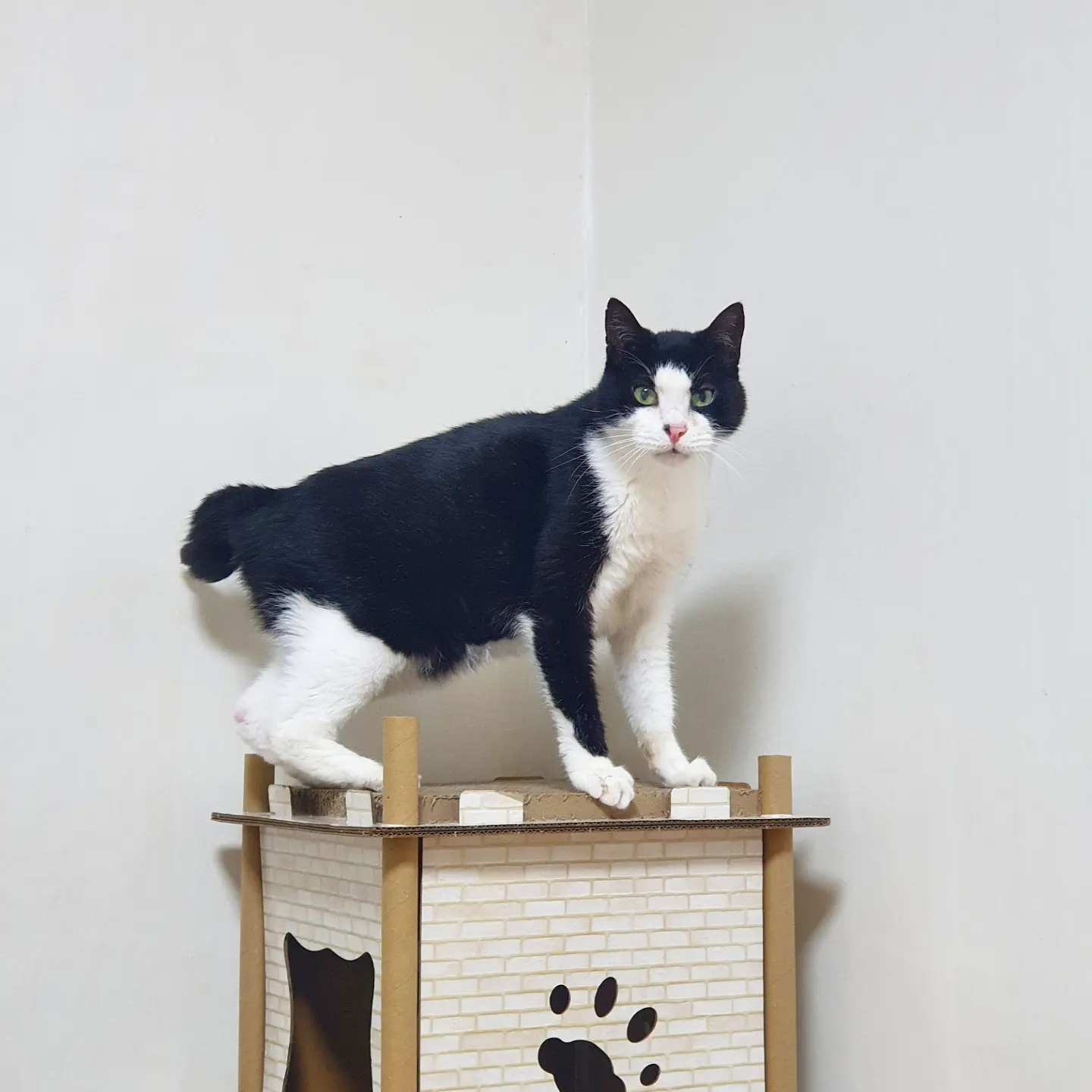 캣타워 꼭대기까지 단숨에 뛰어올랐다.