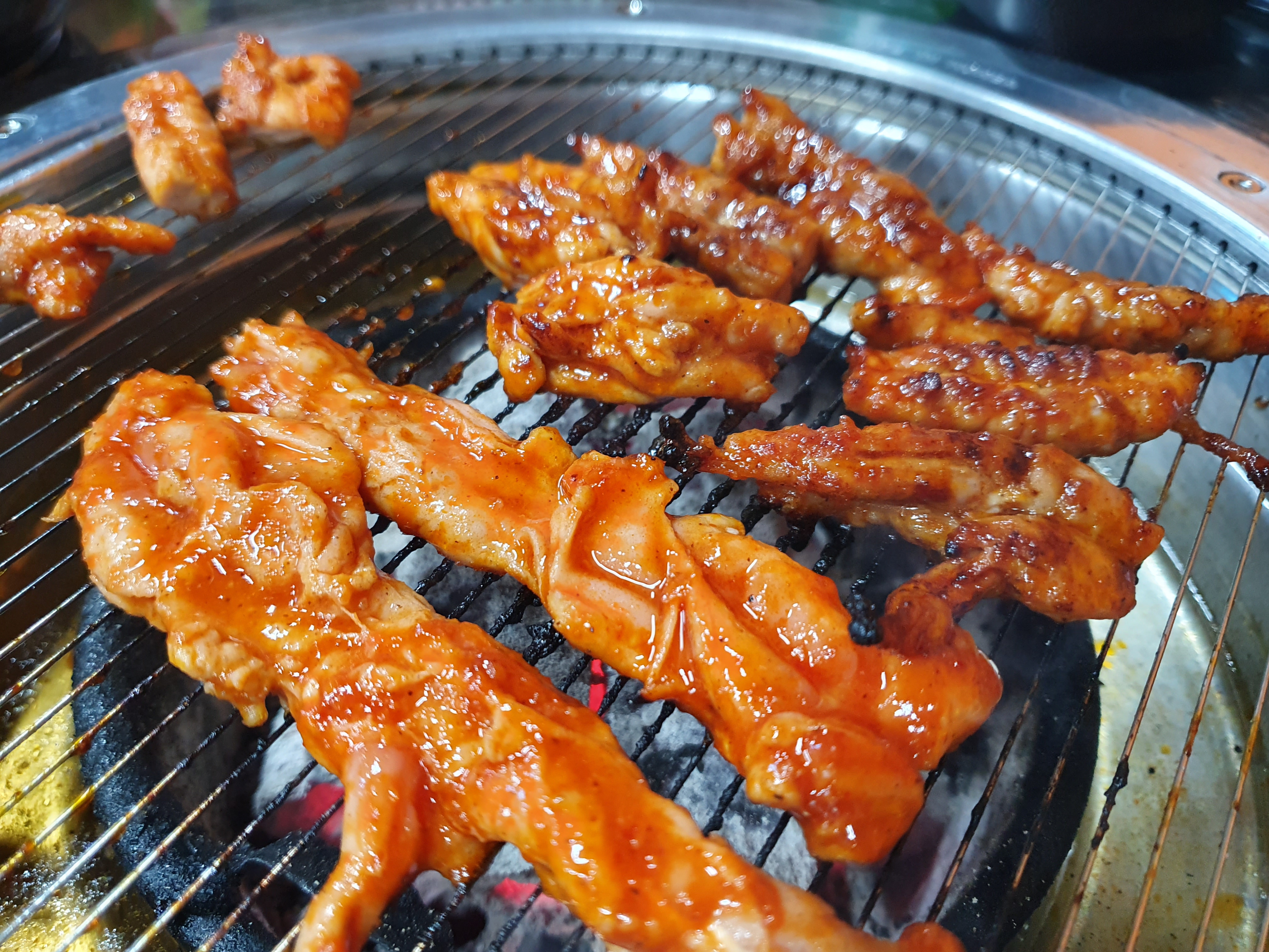 숯불에 구워먹는 양념닭목살